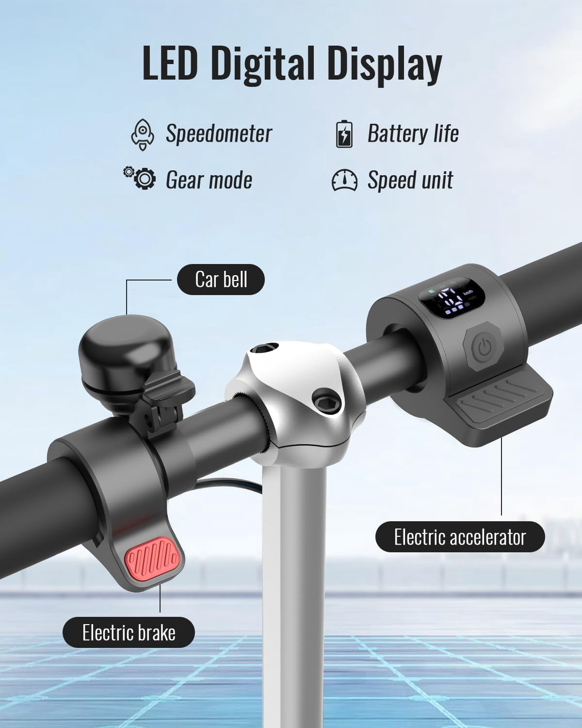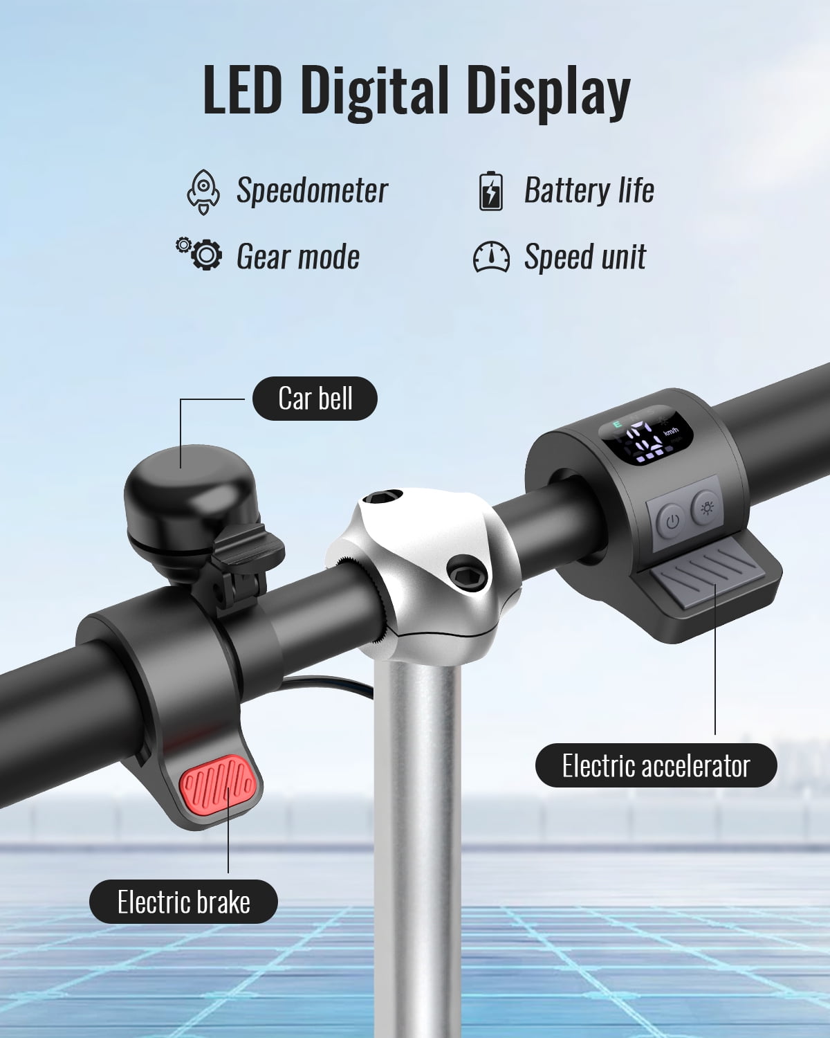 Gyroor H40 electric scooter for kids with 180W powerful motor and 21.6V 2600mAh rechargeable lithium-ion battery, max 10 miles range and 10mph speed. The LED visible display can accuratly show riding speed, speed gear and battery capacity, perfect suitable for kids ages 6+ to drive at a safe speed! The kids electric scooter’s pedal built-in color gradient neon lights, beautiful and dynamic light strips can catch eyes of the crowd, also adjust the atmosphere. Bright front lights can keep the line of sight clear, and reflective sticker can remind vehicles behind to keep their distance, it’s more safer to ride at night! Fun motorized scooter for kids ages 6-12. Our electric scooter kids with 3-level height-adjustable handlebar from 35.4 to 39.4 inch, suitable for most kids and teens. Equipped with 6.5 inch front and rear quality rubber wheels, durable and wear-resistant, can bring a smooth riding experience to your child, maximum load of 143 lbs. Electric scooter for kids ages 10-14 with the foot support can let you stop at any time. Special design for child safety, our electric scooter for kids ages 8-12 equipped with two brake modes: electronic brake and mechanical brake. When the speed is faster, the high-performance anti-locking electronic brake can easily achieve full stop within a short safe distance. Besides, the mudguard brake can prevent rain and mud from splashing during driving. Easy to assemble, just quickly install the few screws and your scooter is ready to go! Best electric scooter for kids, ideal electric scooter for boys, girls and teens. What’s more, we provide a 30-day package return, one-year mechanical warranty and half-year battery warranty! If you have any questions, please feel free to contact us! Unisex