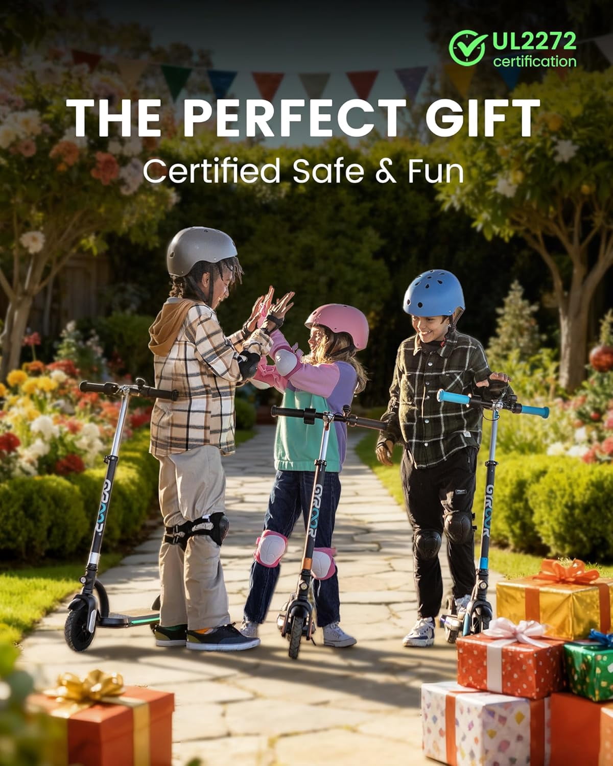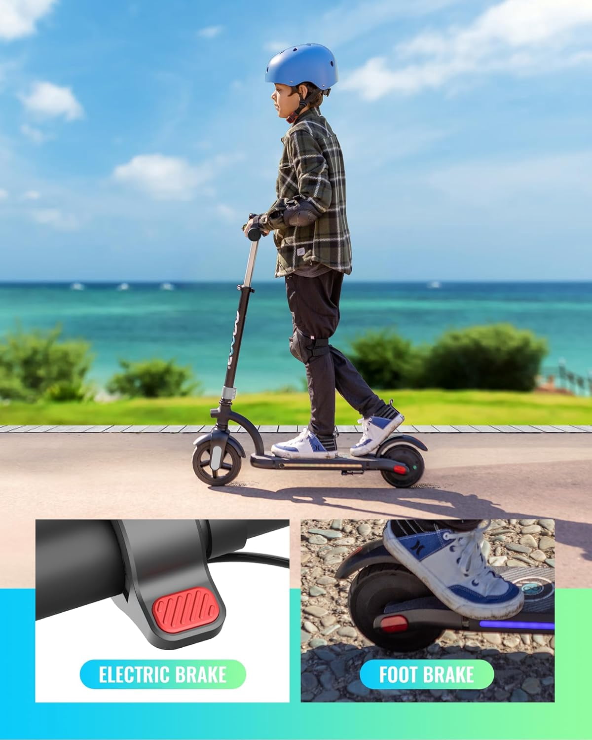 Gyroor H40 Kids Electric Scooter, 180W Motor, Up to 10 MPH, LED Display & Colorful Lights, Adjustable Height, for Boys & Girls Ages 8-12, Great Birthday Gift