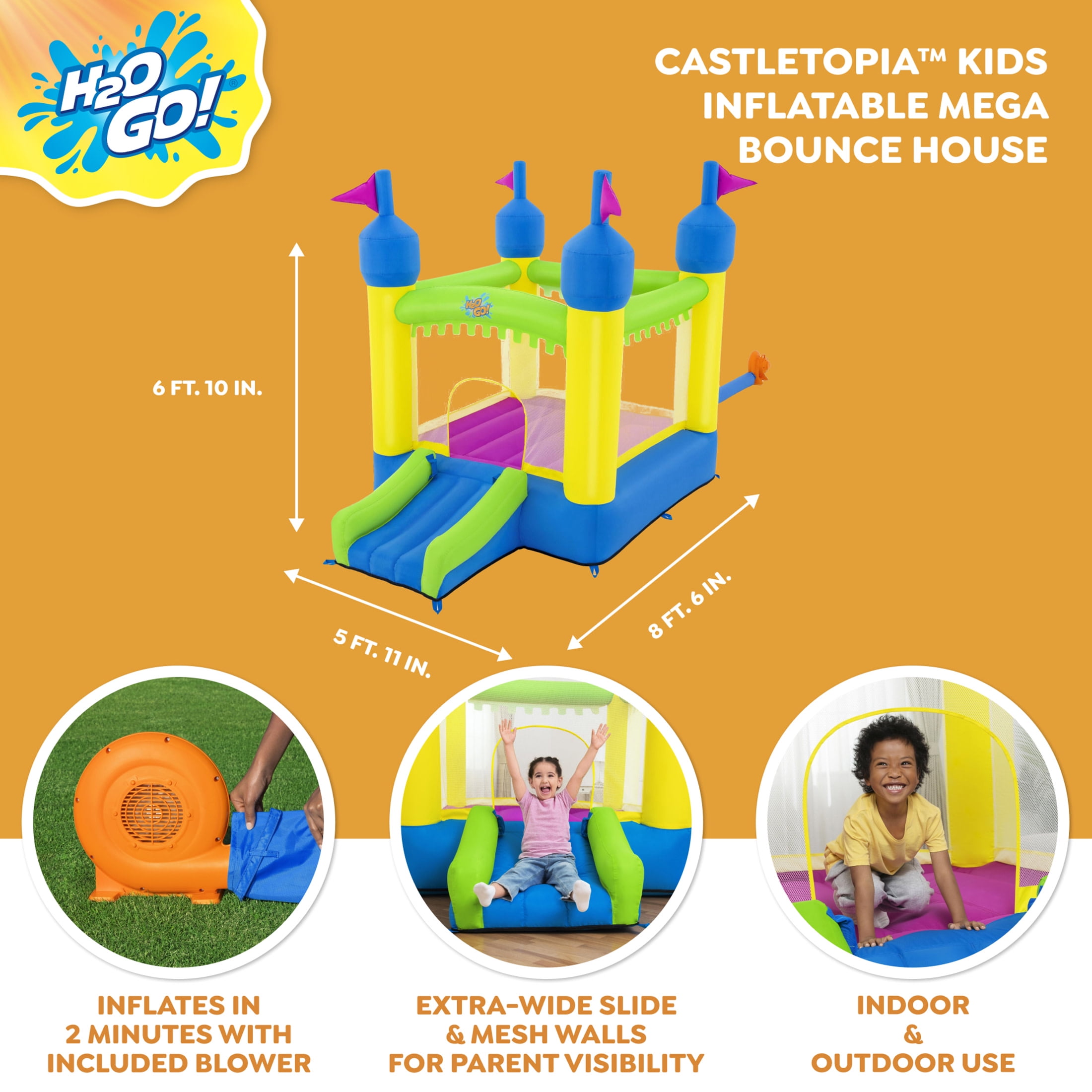 H2OGO! Castletopia Bounce House with Extra-Wide Slide and Blower, Indoor/Outdoor, Ages 3+