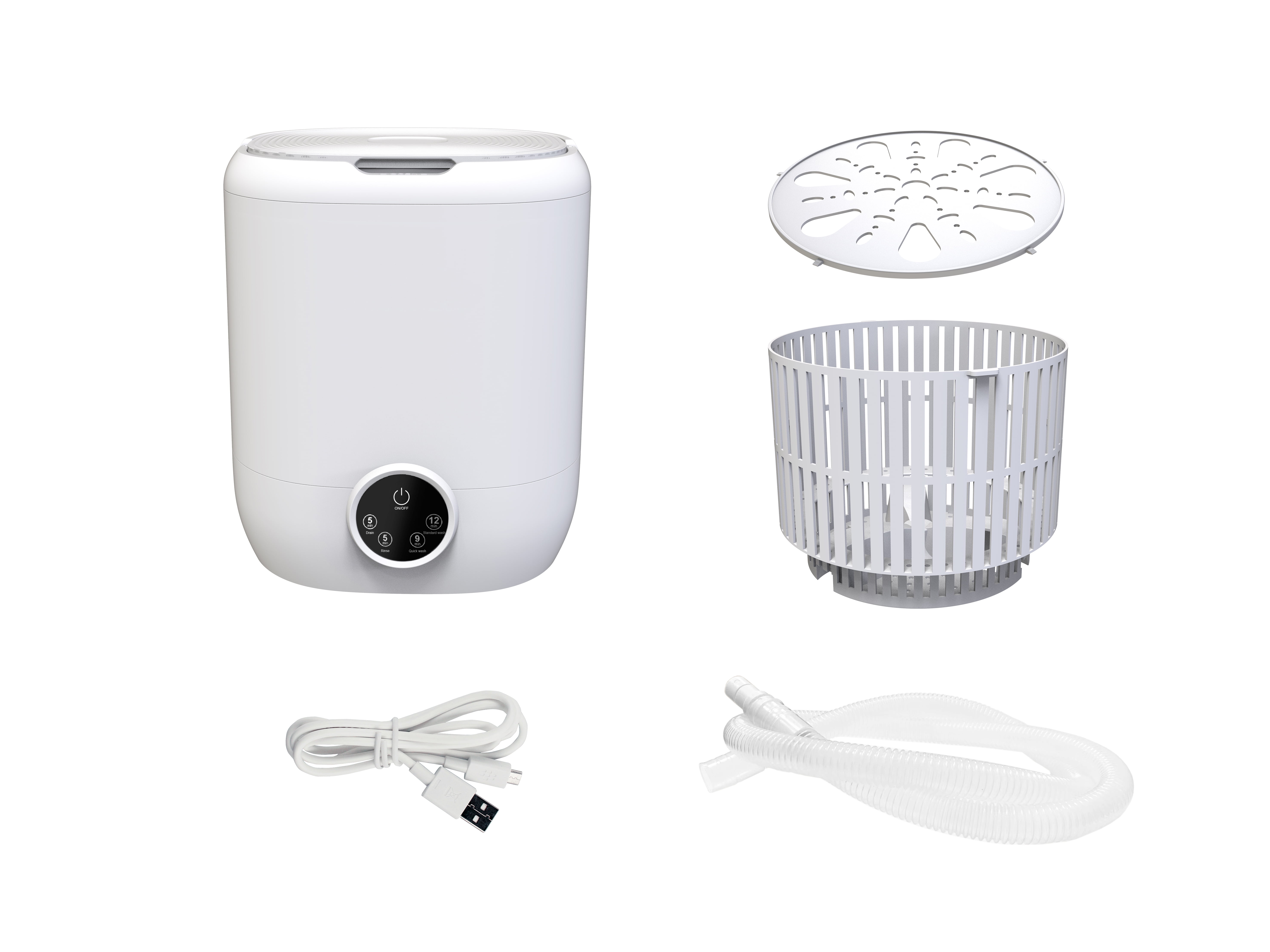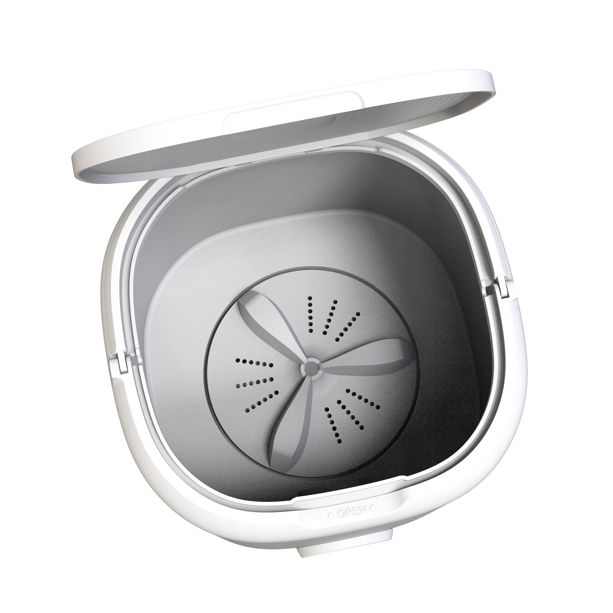 Keep your laundry routine efficient and compact with the HadinEEon Mini Washing Machine. Its stylish design and user-friendly handle make it easy to use and perfect for storage in any home, dormitory, or during your travels. This intelligent mini washing machine, with a top load access location, offers a maximum washing capacity of 7L and an ideal capacity of 4.5L. Operating on a wave wheel type working mode and an automatic operation mode, it consumes only 15W of rated power. Install and set up effortlessly with the provided USB cable and draining basket, ensuring a quick and convenient laundry solution. After use, simply wipe the machine clean and store the power adapter for the next use.