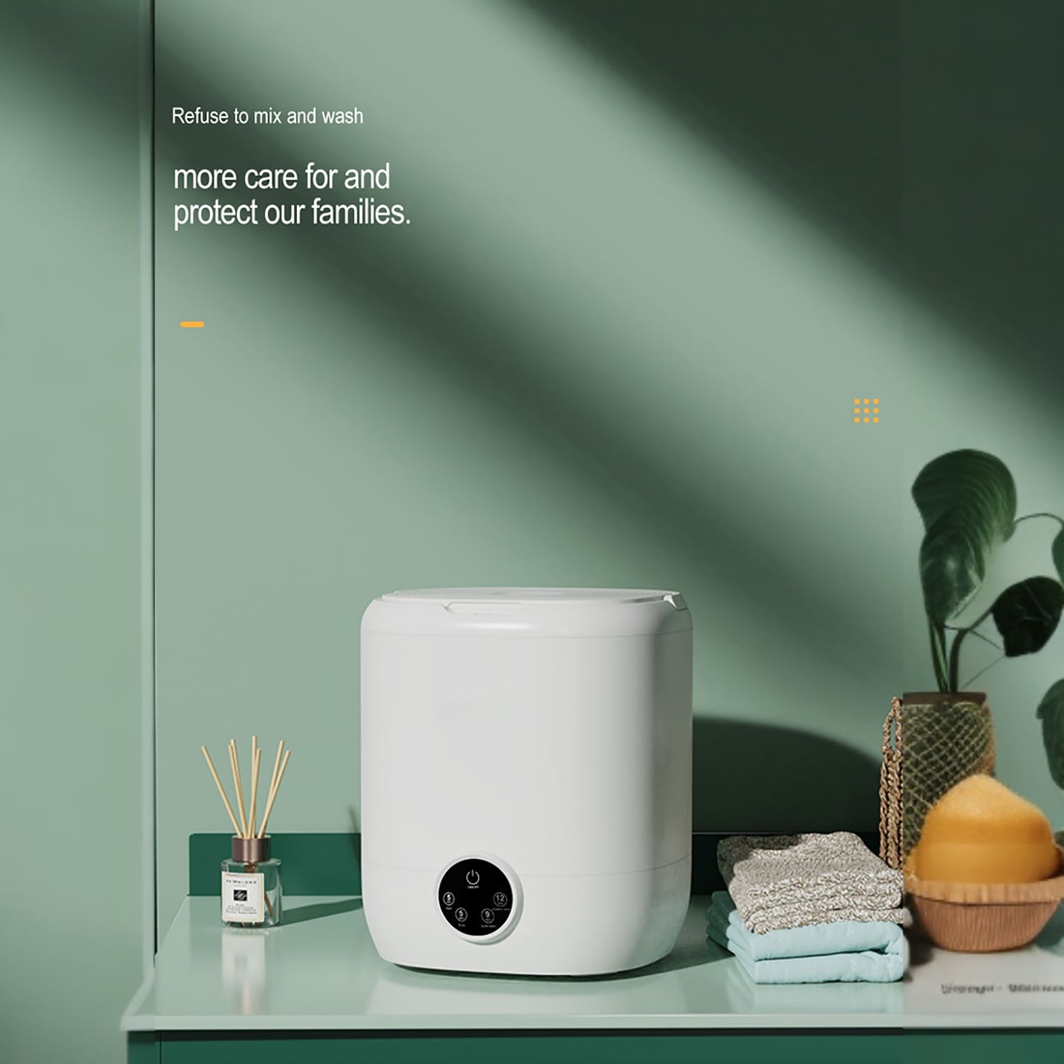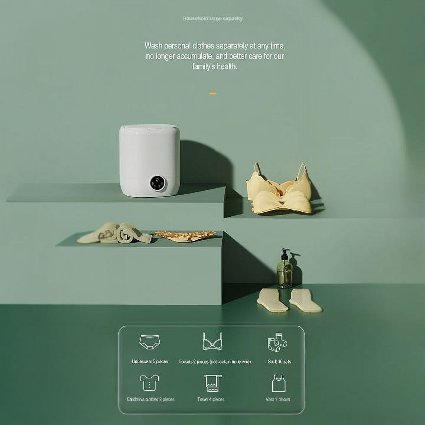 HadinEEon Mini Washing Machine features a stylish and compact design with an easy-to-use handle, making it convenient for storage at home, in dorms, or while traveling. Product Weight: 4.4lb Access Location: Top Load Washing Max Capacity: 7L Washing Ideal Capacity: 4.5L Working Mode: Wave Wheel Type Operation Mode: Automatic Rated Power: 15W How to Install and Setup: Install a drainpipe, and inject water that does not exceed the drainpipe maximum. Put in lightweight clothing e.g.underwear,socks or lightweight garments. Put the water in the machine body does not exceed the maximum limit, put in the detergent, and replace the cover plate; Plug in the power supply, touch the panel, and select the washing model.