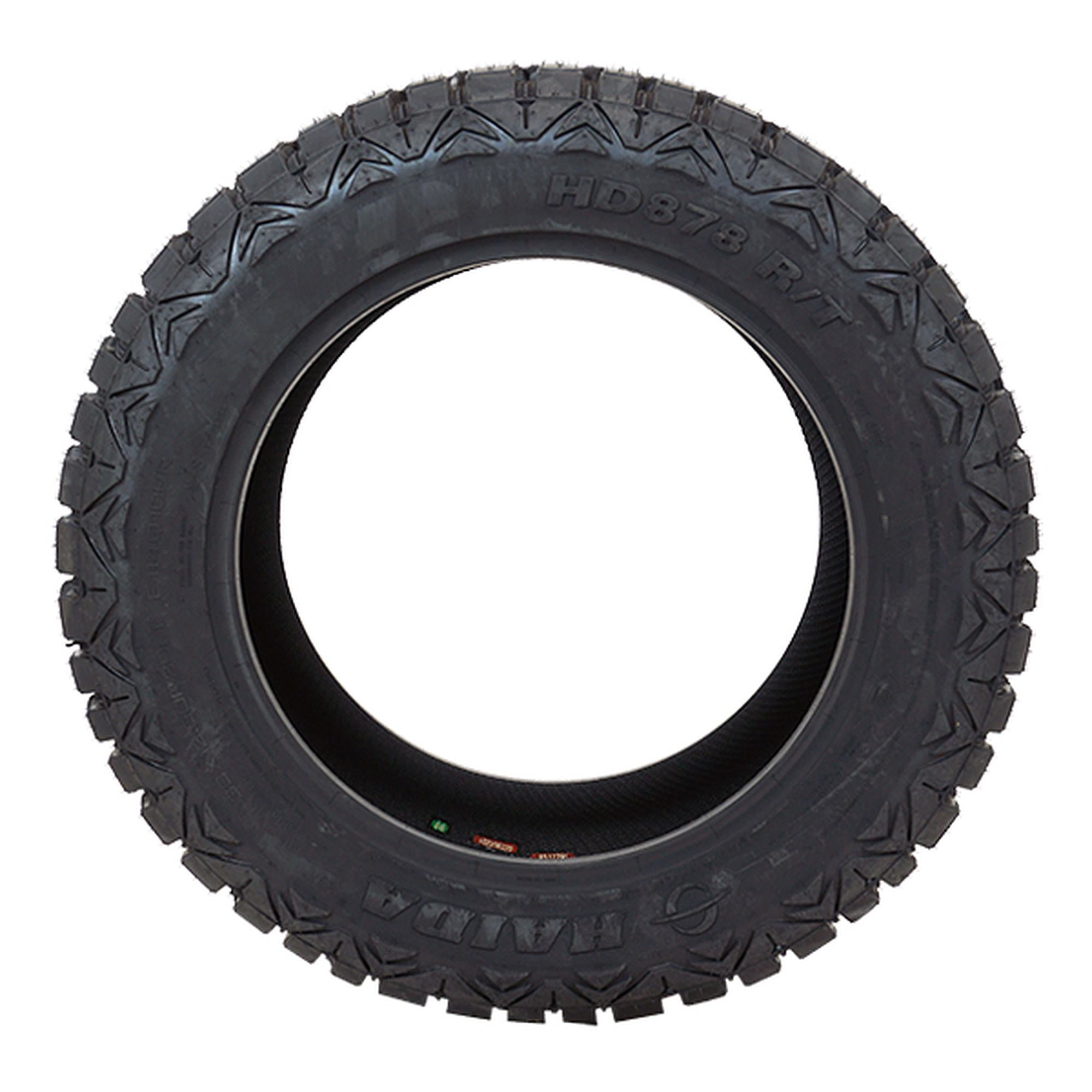 Haida HD878 R/T LT33X14.50R24 110Q E OVERVIEW A rugged terrain tire, the HD878 R/T from Haida is built for use on light trucks and SUVs. A tough and self-cleaning tread pattern allows for solid traction and performance on- and off-road, and the HD878 R/T’s angled tread blocks and deep grooves help reduce uneven wear to ensure a longer tread life by reducing uneven tread wear.