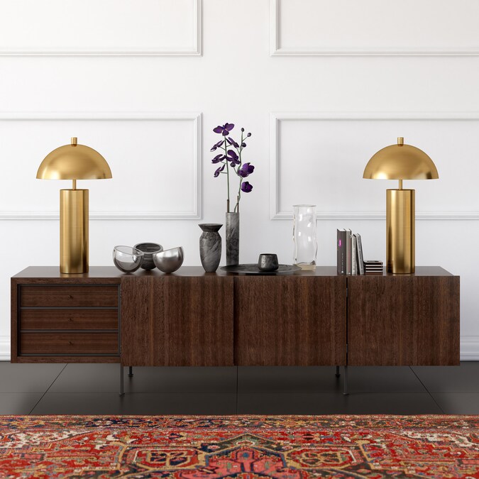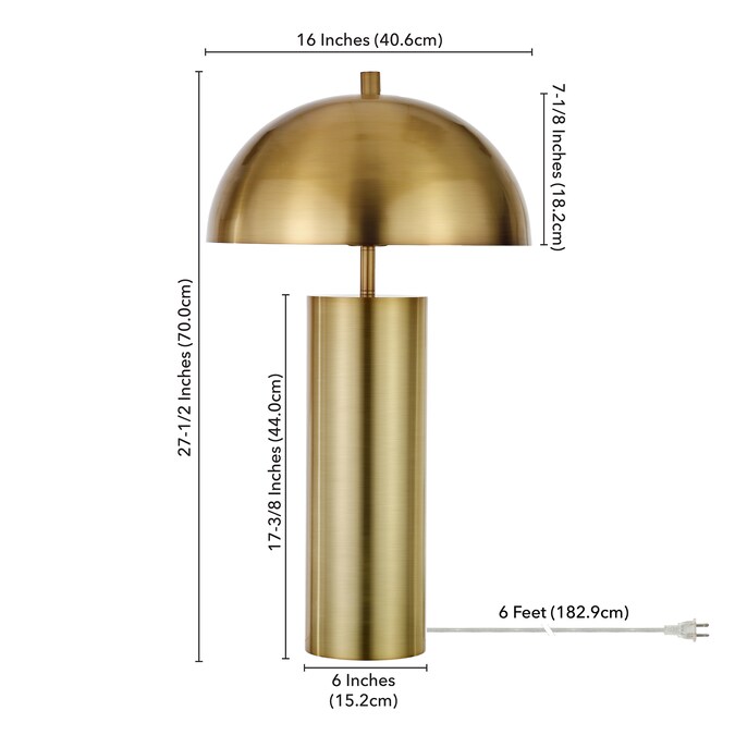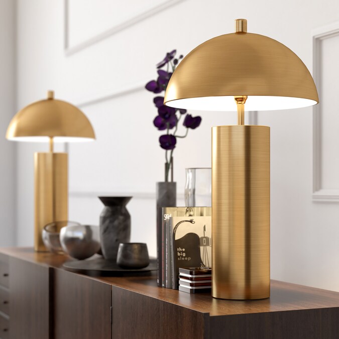 An ultra-modern take on a mid-century design, this table lamp offers timeless sophistication. The metal dome shade sits atop a sleek column base, creating a harmonious play of classic shapes. Simple yet eye-catching, its streamlined look and warm golden brass finish will illuminate your bedside, reading nook, or living room in style.