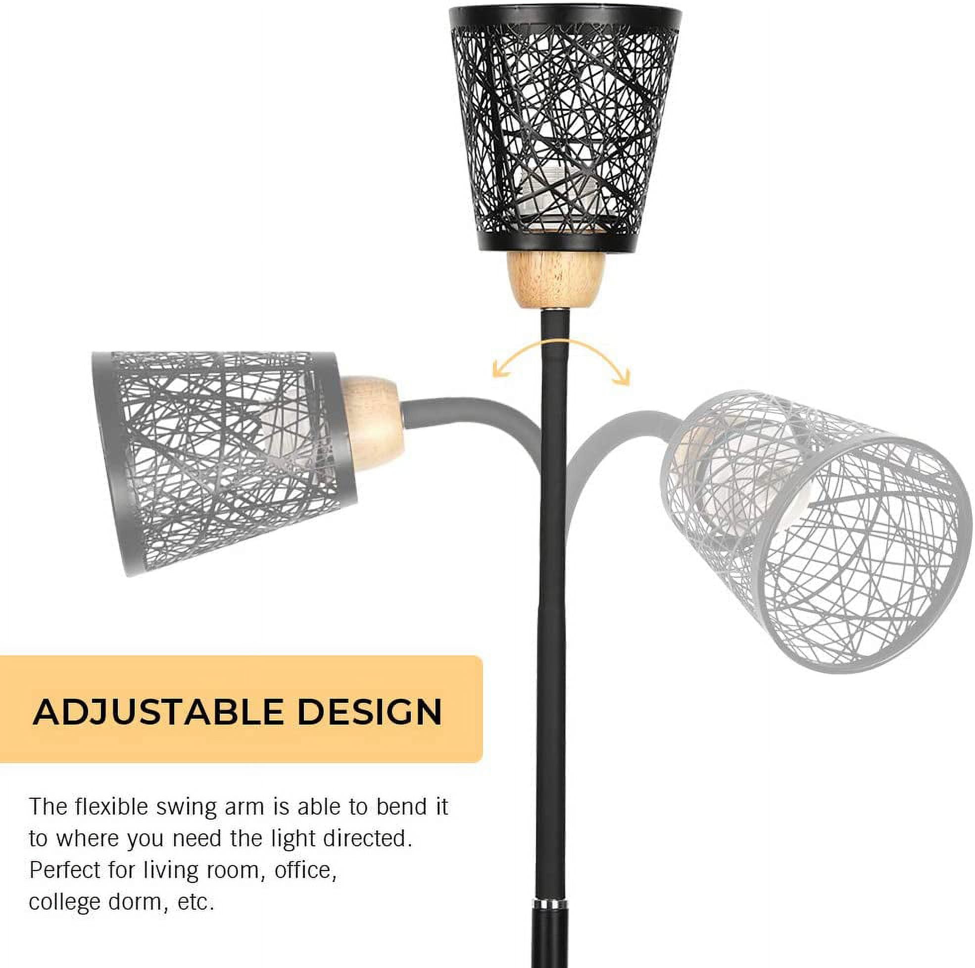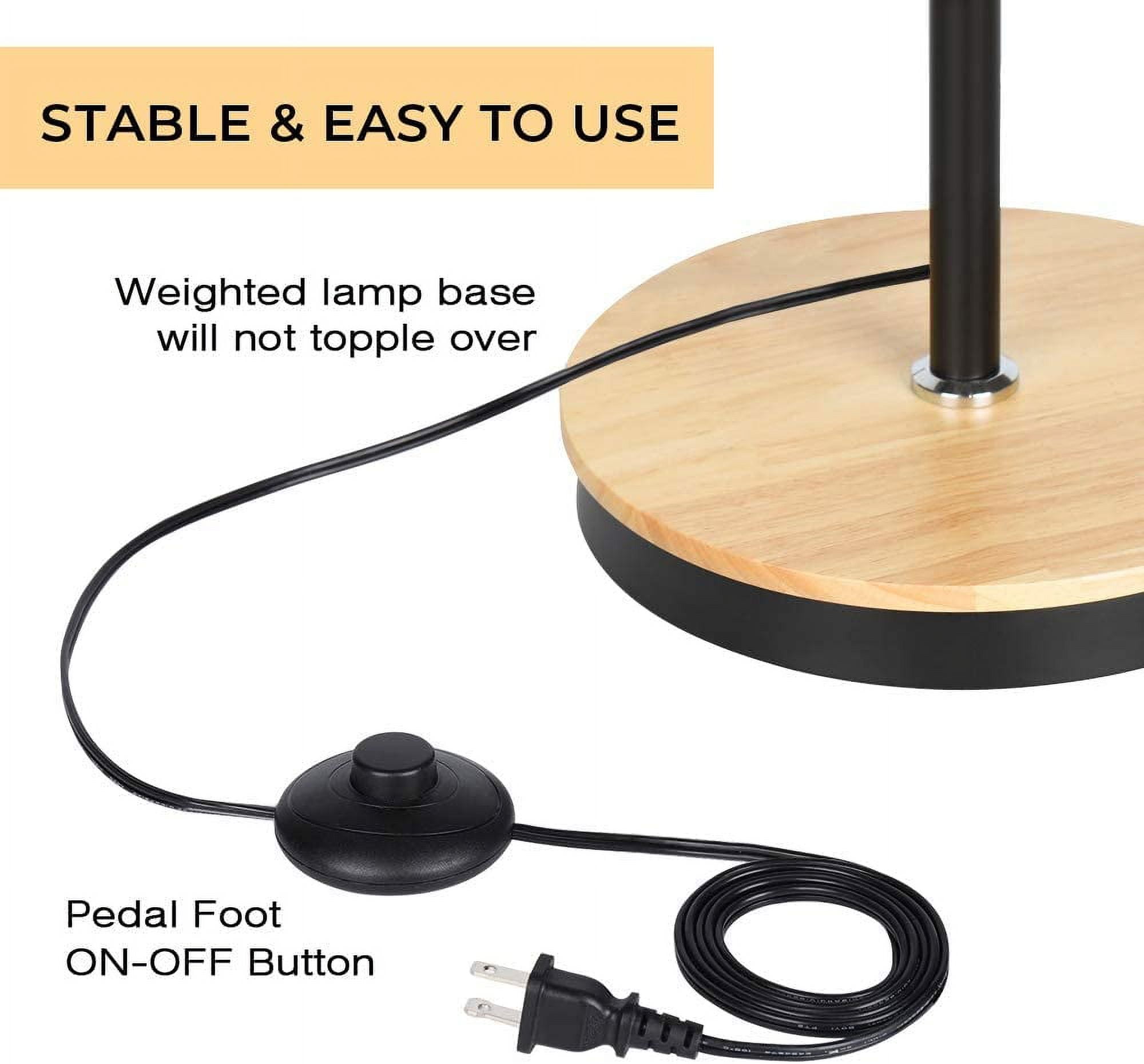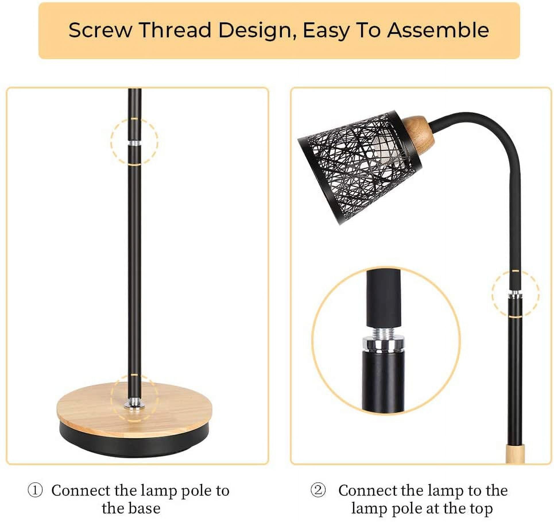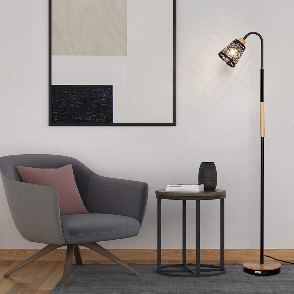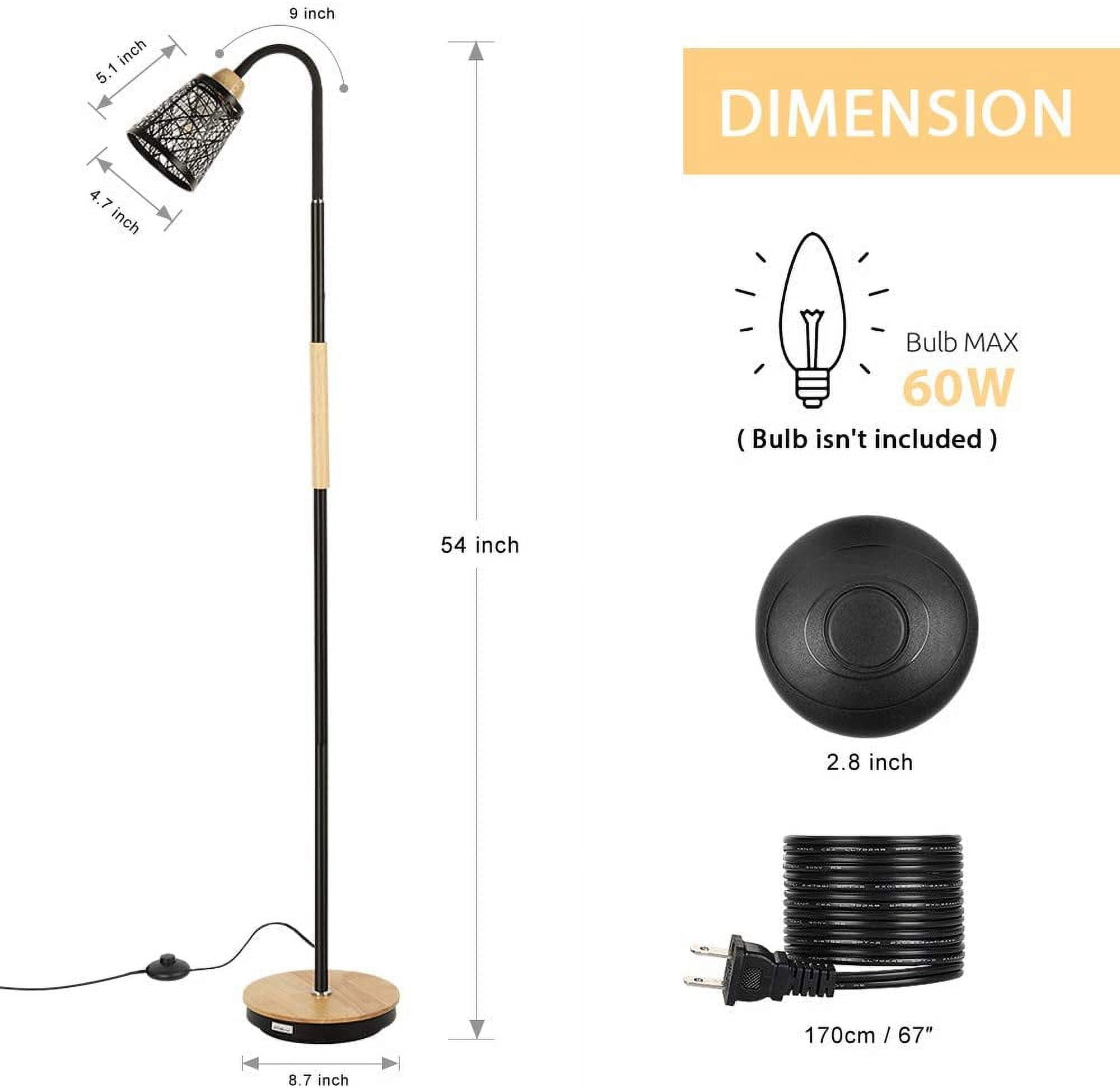 [MODERN & ELEGANT DESIGN] Total height 54 inches, with wooden stable base, metal frame and elegant hollow-carved design metal shade, the standing lamp looks great with any decor. It will add a layer of unique style and decoration to any room. [FLEXIBLE & DURABLE] Haitral tall standing lamp built with a 360° adjustable gooseneck, hose design, it can be adjusted any angle you want, offering a wide range of flexibility to rotate. Easy to find the most comfortable lighting to your reading, working, illuminating. [E26 STANDARD BASE SOCKET] The modern floor lamp required E26 light bulb, MAX 60 watts, 110V (bulb not included). The Industrial floor lamp is compatible with various types of E26 bulbs, such as incandescent, LED, CFL, halogen or Edison bulbs. The tall lamp comes with a Pedal-foot ON/OFF switch located on cord, convenient to use. STABLE & EASY TO USE] Whether you read books in a sofa, work at a desk, the lamp fits easily beside your furniture. Its slender design allows it to position well near armchairs, office desk, sofa, and bedside. The tall standing lamp is designed with a weighted base that ensures stability! It’s perfect in bedroom, college dorm, office, nursery, guest room, hotel, etc. Specification: Color: Cream Lamp Shade, Black Frame Voltage: 110V Base Type: E26 Max Power: 60W Material: Wooden/Metal Bulb Source: E26 bulb (bulb not included) Lamp Size: 54 (H) x 8.7 (W) inches Package Content: 1 x Table Lamp (Bulbs not included)