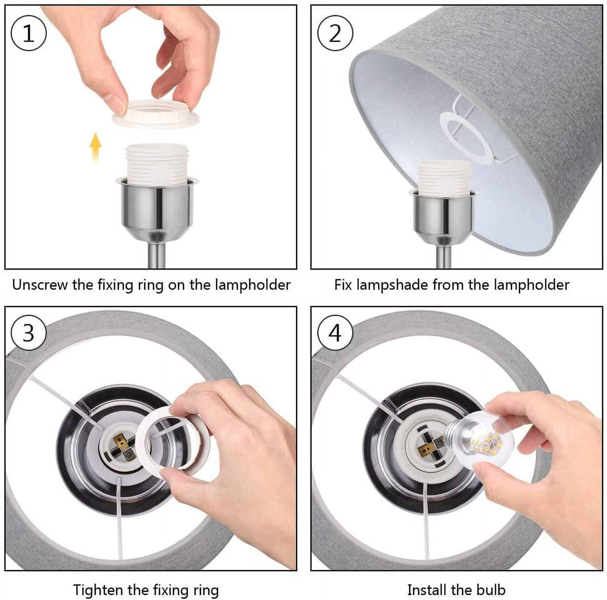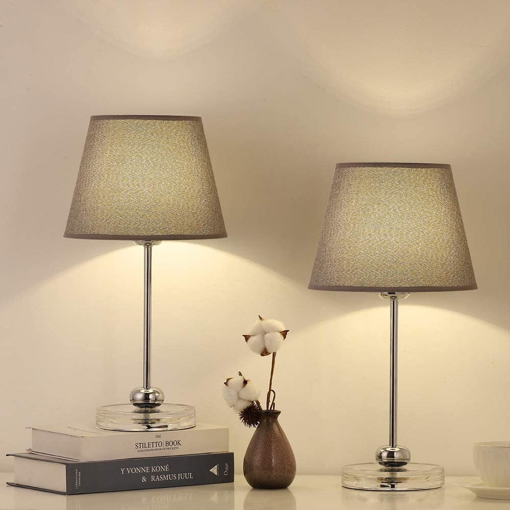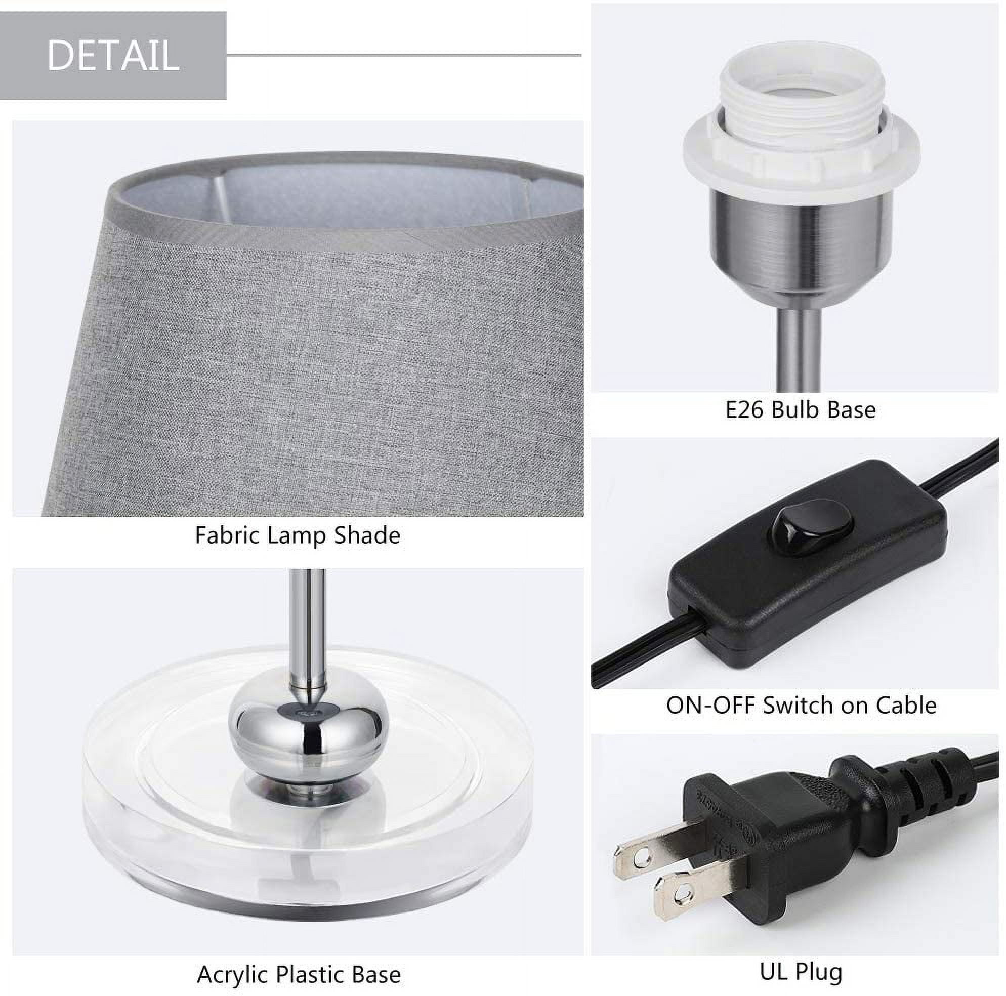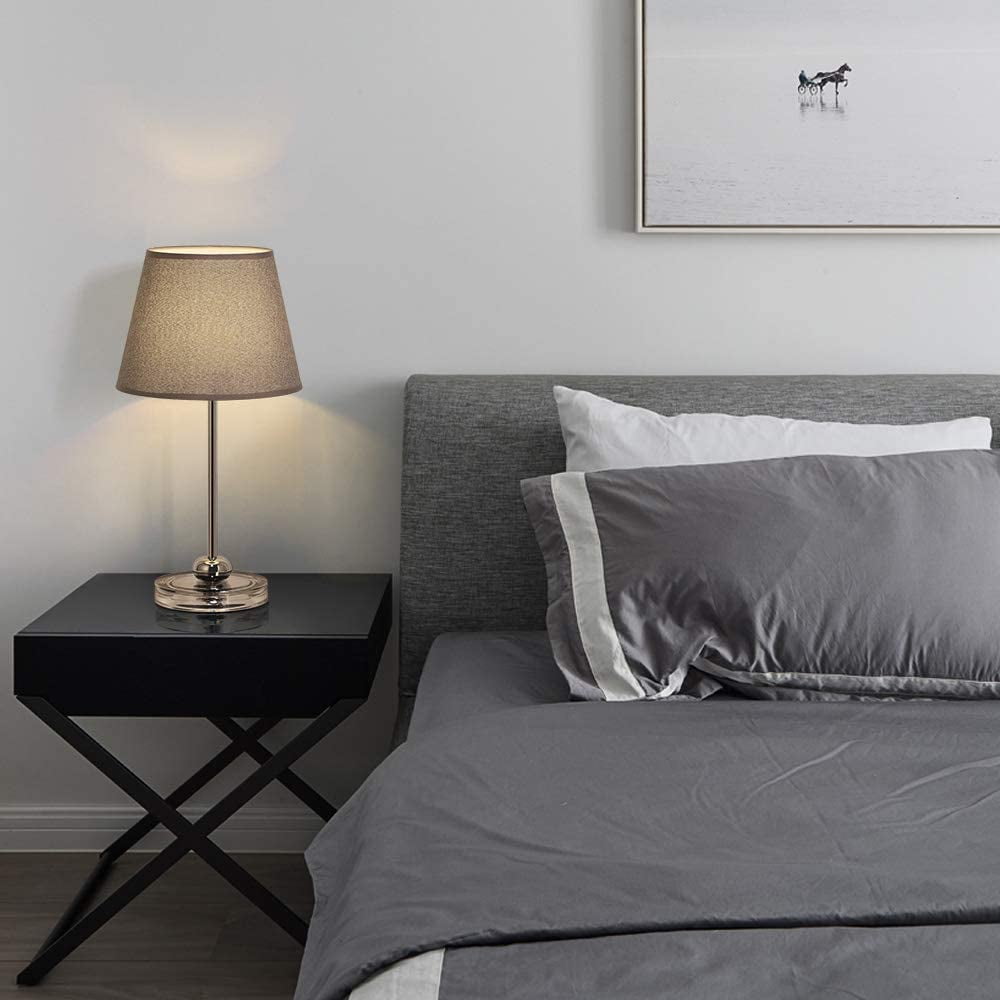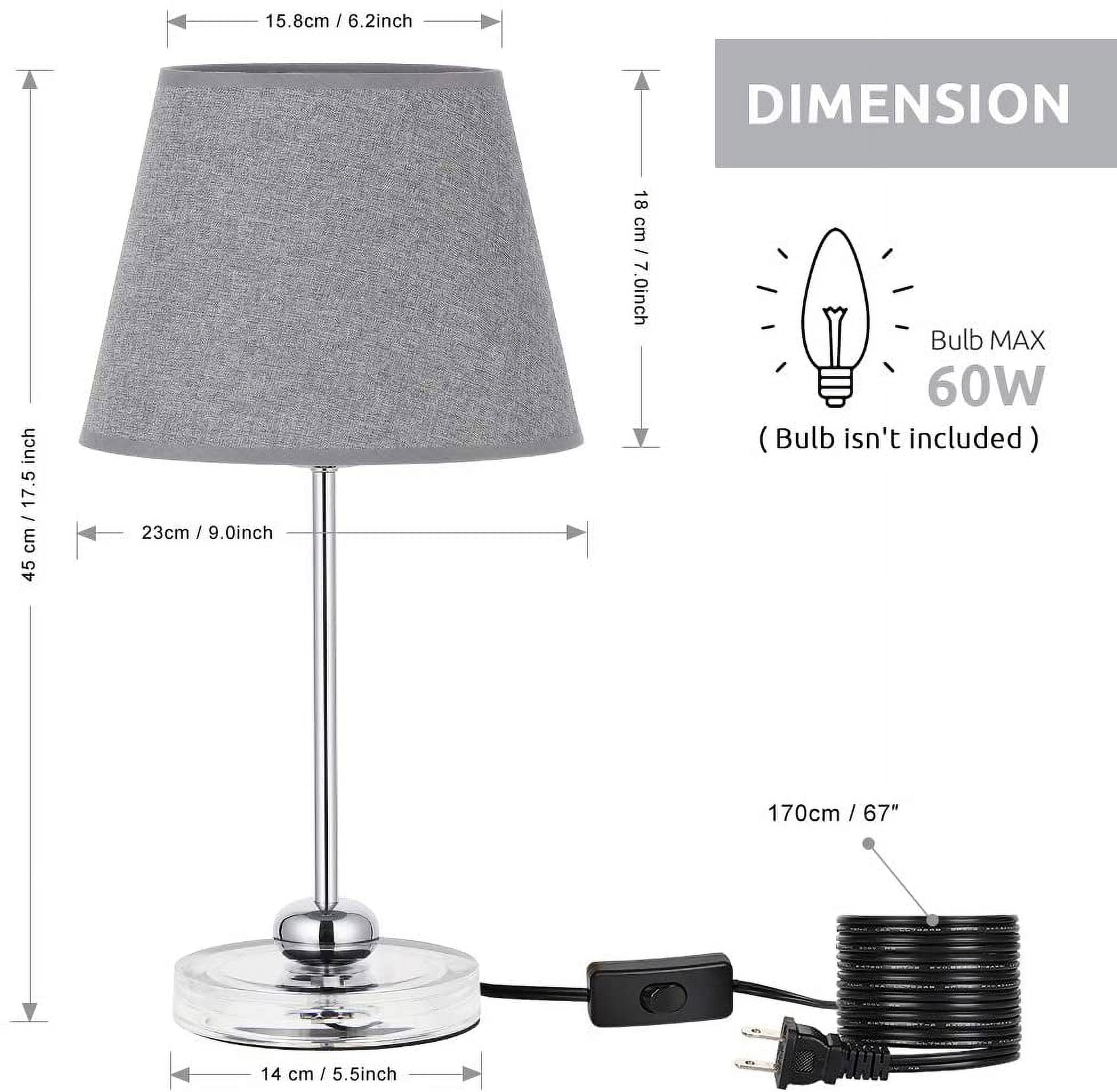 [Small Table Lamp with Non-slip]- Lamp dimension – 17.5 x 6.2 x 5.5 inches, it’s small table lamp with contemporary look that punches a lot of light, providing you with anti-slip pads that you can install as needed. The compact base is suitable for any desk, whether it is a big table or a small table. It is a perfect size for your desk! [Modern yet Industrial Design]- The bedside table lamps with classic shape of lampshade and holder, match fabric and sliver metal, making a touch of industrial, never out of date. This charming design showcases a tubular metal body with a sliver shade for an added beautiful touch. [Safe & Easy to use]- The cord and plug of bedside table lamp are UL listed. By being UL listed, each lamp is nationally recognized for its standard of safety. It’s a not heavy lamp, easy to move to any place where you have lighting needs and the ON/OFF switch on the cord close lamp is easy to use. [E26 Bulb Requirements]- The Haitral modern nightstand lamps with closed lampshades prevent direct contact with your eyes and creates a peaceful atmosphere in your room or elsewhere. Compatible with variety of E26 bulbs type, such as Edison, incandescent, halogen, LED or CFL, but do not use a bulb exceeding 60W. Specification: Material: Metal Base/Fabric Lamp Shade Voltage: 110 volts Wattage: 60 watts Type of Bulb: E26 MAX 60W Package Content: 2 x Table Lamp (Bulb not included)