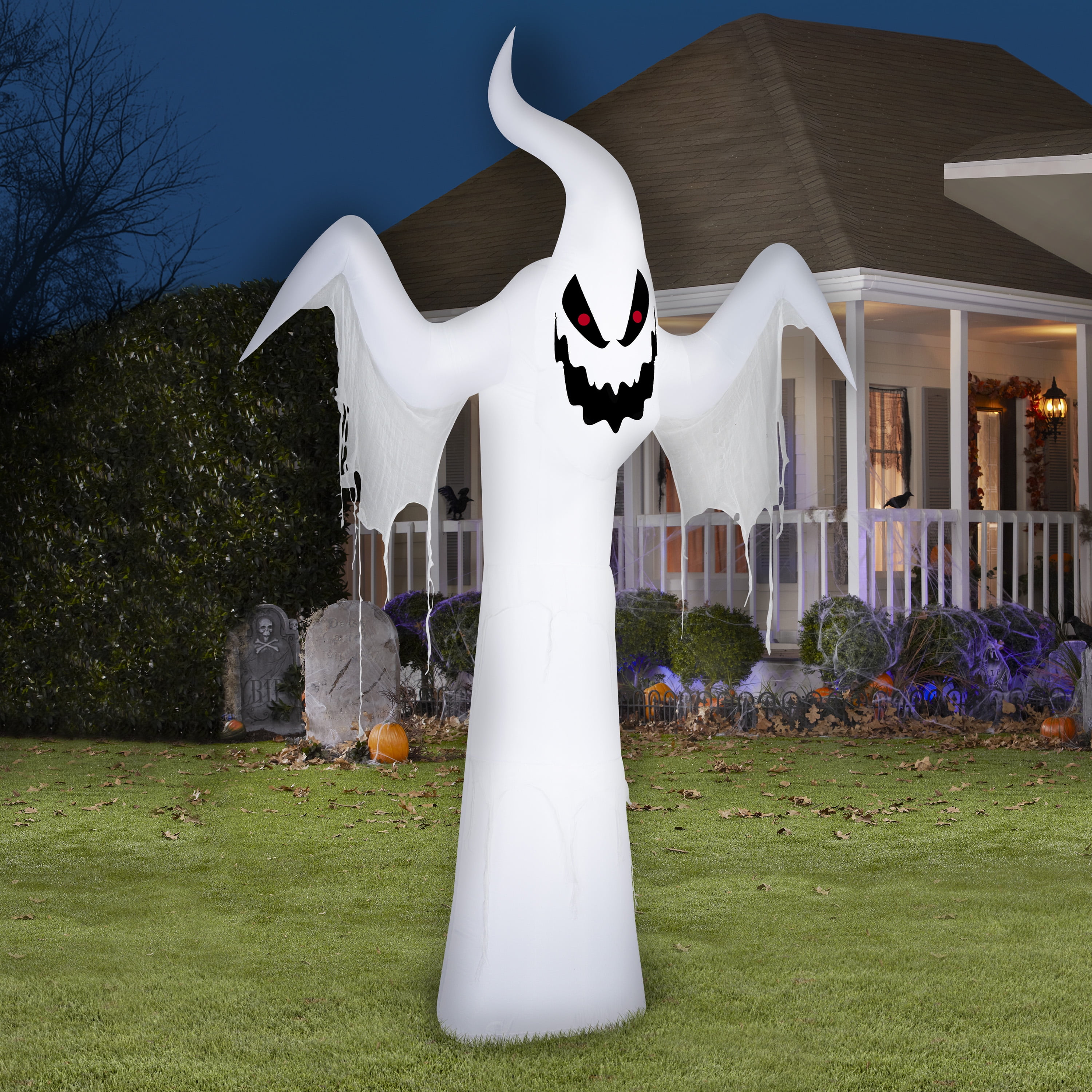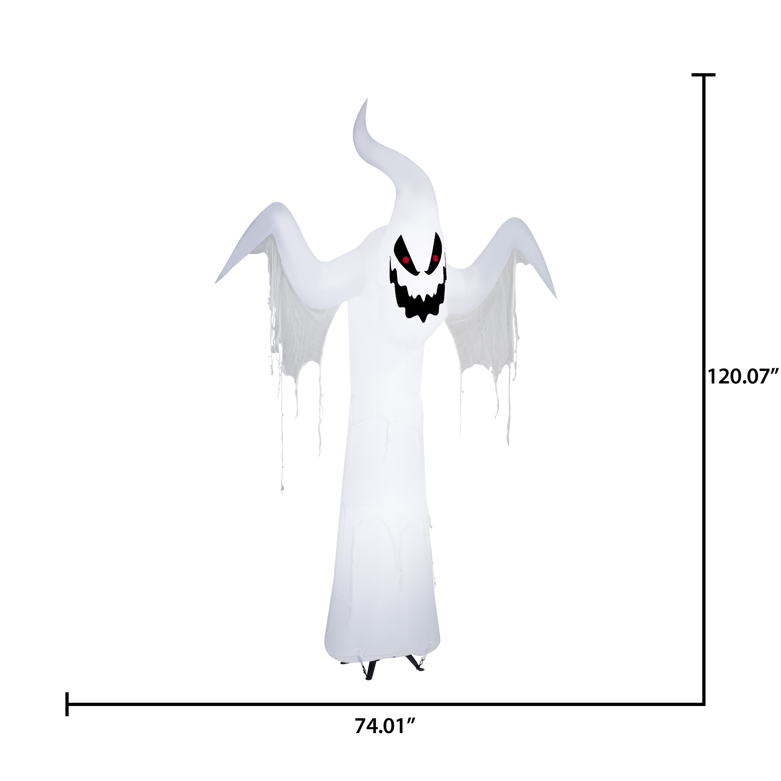 Halloween Giant Spooky Ghost Airblown Yard Inflatable by Way To Celebrate, 10 ft Lights with energy-efficient LED lighting 10 Feet Tall Setup is super simple. Just plug it in, stake it down and watch the magic unfold Self-inflates in seconds and deflates for easy storage Indoor/outdoor use: Display this decoration as a standalone or combine it with other decorations to create a custom scene. It’s also perfect as an indoor decoration at home or for parties and celebrations. Everything included: Includes instructions and everything needed for easy setup. No additional parts required Pairs with other Halloween decorations and accessories for an extra-festive look Halloween Yard Decoration Seasonal and festive Airblown® Inflatable is a registered trademark of Gemmy Industries Corp. Includes Stakes and Tethers