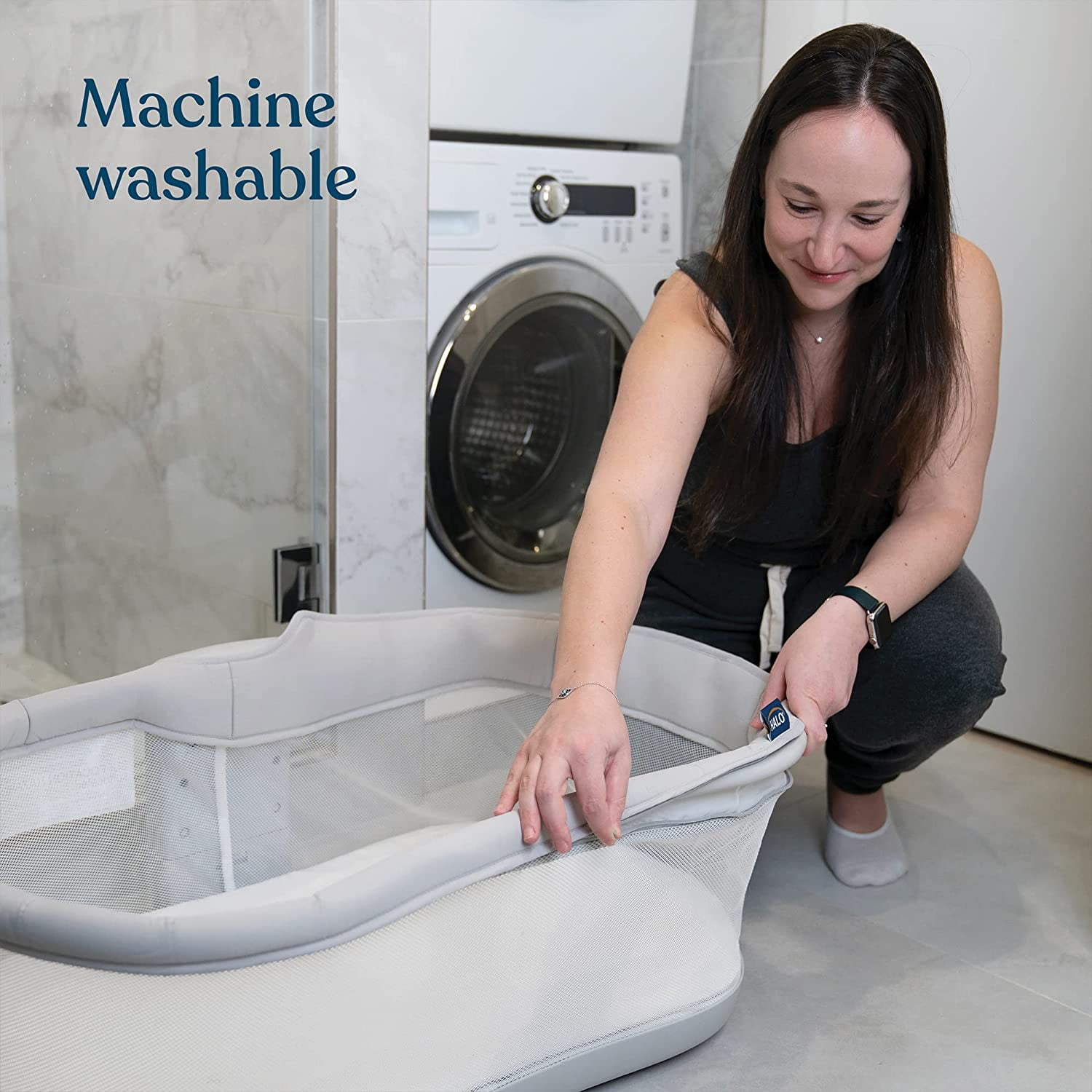 Best-selling HALO® BassiNest® is a game changer when it comes to safe sleep. It’s only bassinet that swivels over your bed, so you can sleep inches away from your baby. Now with built-in vibration and white noise to help them fall asleep faster and stay asleep longer. BassiNest’s lowering wall makes it easy to scoop them up for cuddles or feeds in bed. It also converts to a portable nest for around the house so you can stay close to them during the daytime too. Height-adjustable base fits most standard adult beds. Includes fitted sheet and mattress pad. Compatible with all BassiNest accessories. BassiNest is JPMA certified and independently tested to meet and/or exceed all U.S. Consumer Products Safety Commission safety standards. Details/Key Features: • Sleep safely next to your baby without bedsharing • Swivels over your bed for extra close sleep • 2 vibration levels and 4 calming sounds; with auto-shutoff • Soft amber nightlights to see your babe in the dark • Lowering wall for easy access; no bending or twisting • 2-in-1 design converts to portable nest