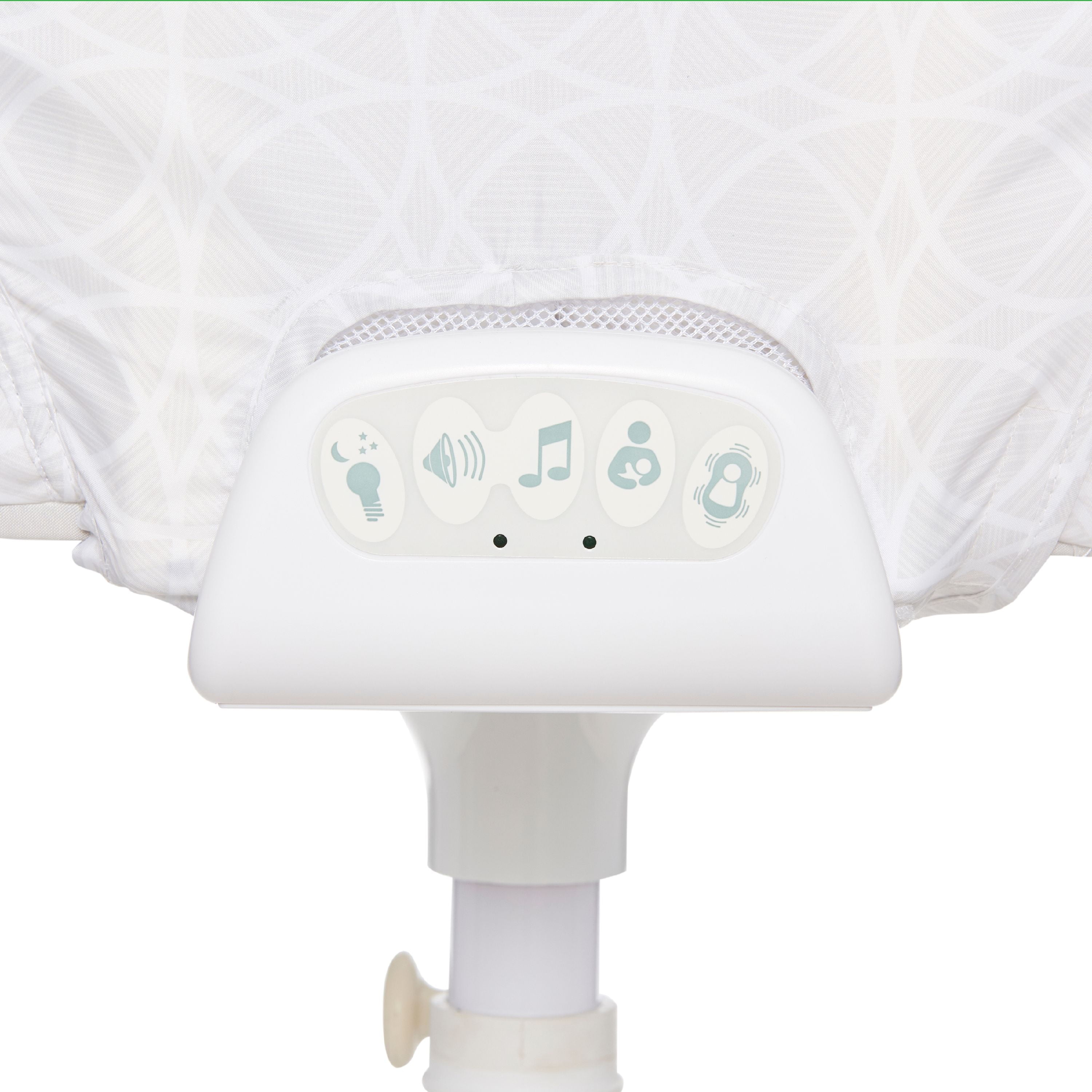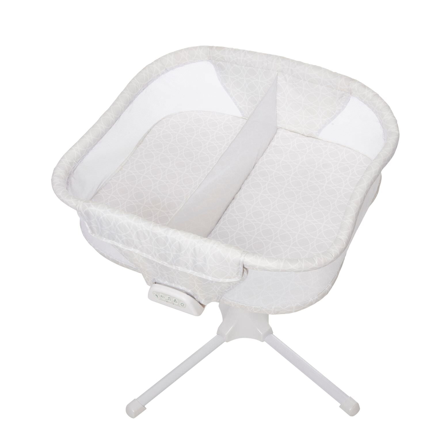 Sleep safely next to your twins, without bedsharing Twins sleep side-by-side, but in their own space Swivels over your bed for extra close sleep Two lowering walls for easy access; no bending or twisting 2 vibration levels and 4 calming sounds; with auto-shutoff Soft amber nightlights to see your babe in the dark Soothing center requires 3 AA batteries. Not included Breathable, mesh walls for airflow Height adjusts from 24” – 34” to fit most beds 2 storage pockets to keep their essentials close Two mattress pads and four fitted sheets included (2 100% polyester, 2 100% cotton) Mattress: 100% polyester cover with 100% polyurethane foam core For babies up to 5 months or 20 lbs Imported