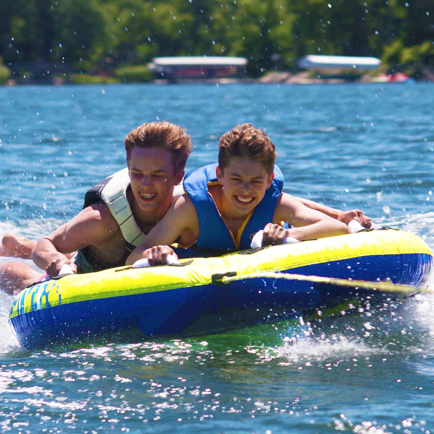 After a Storm comes a Halo. Our updated best selling Storm tube still holds all the high quality 24 gauge PVC Bladder and 420D Nylon cover to avoid tears and keep your riders on the water all summer long. Made from quality construction, four handles with neoprene knuckle guards to give riders a comfortable grip, and the low profile deck makes it easy to board in any water depth.