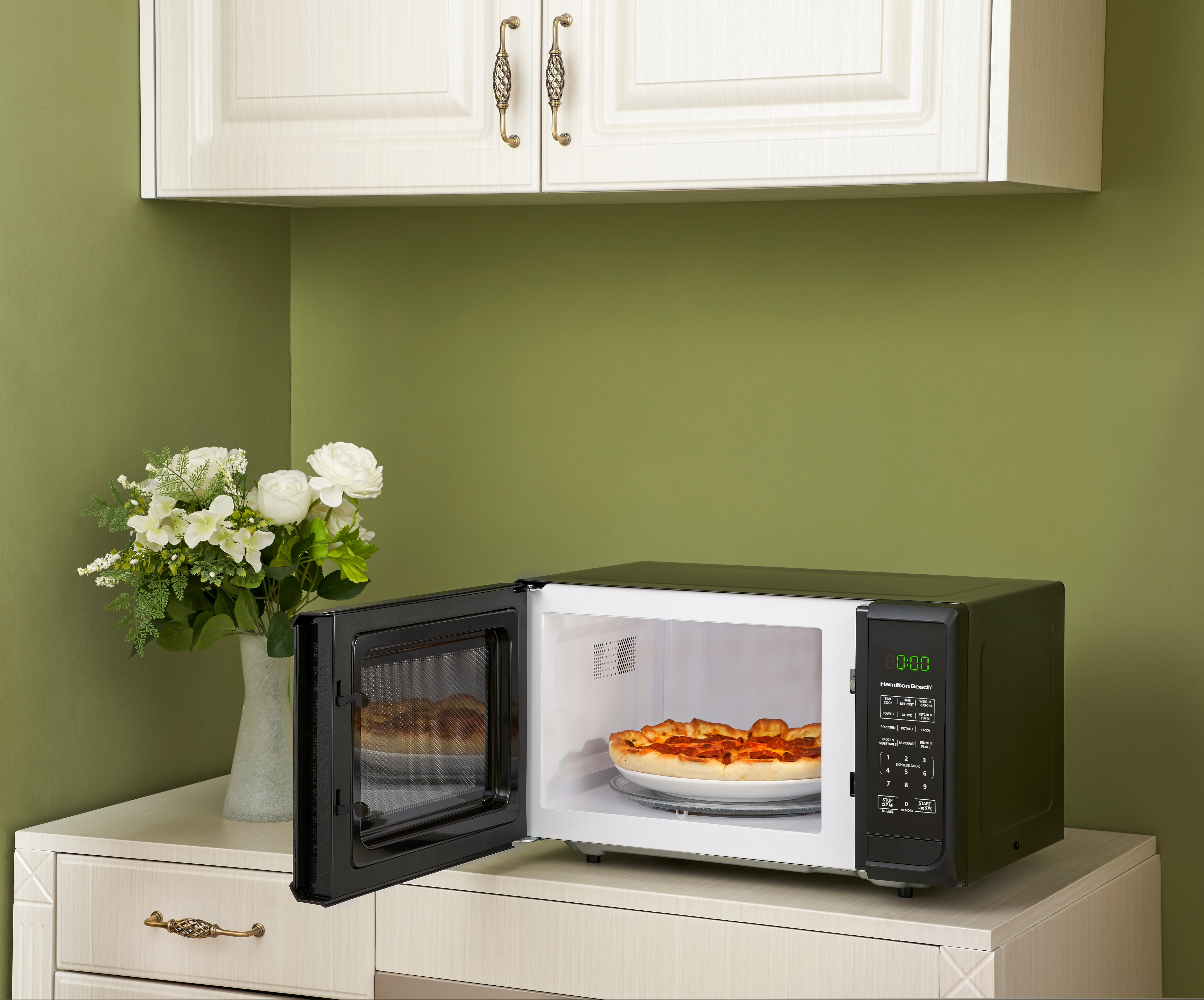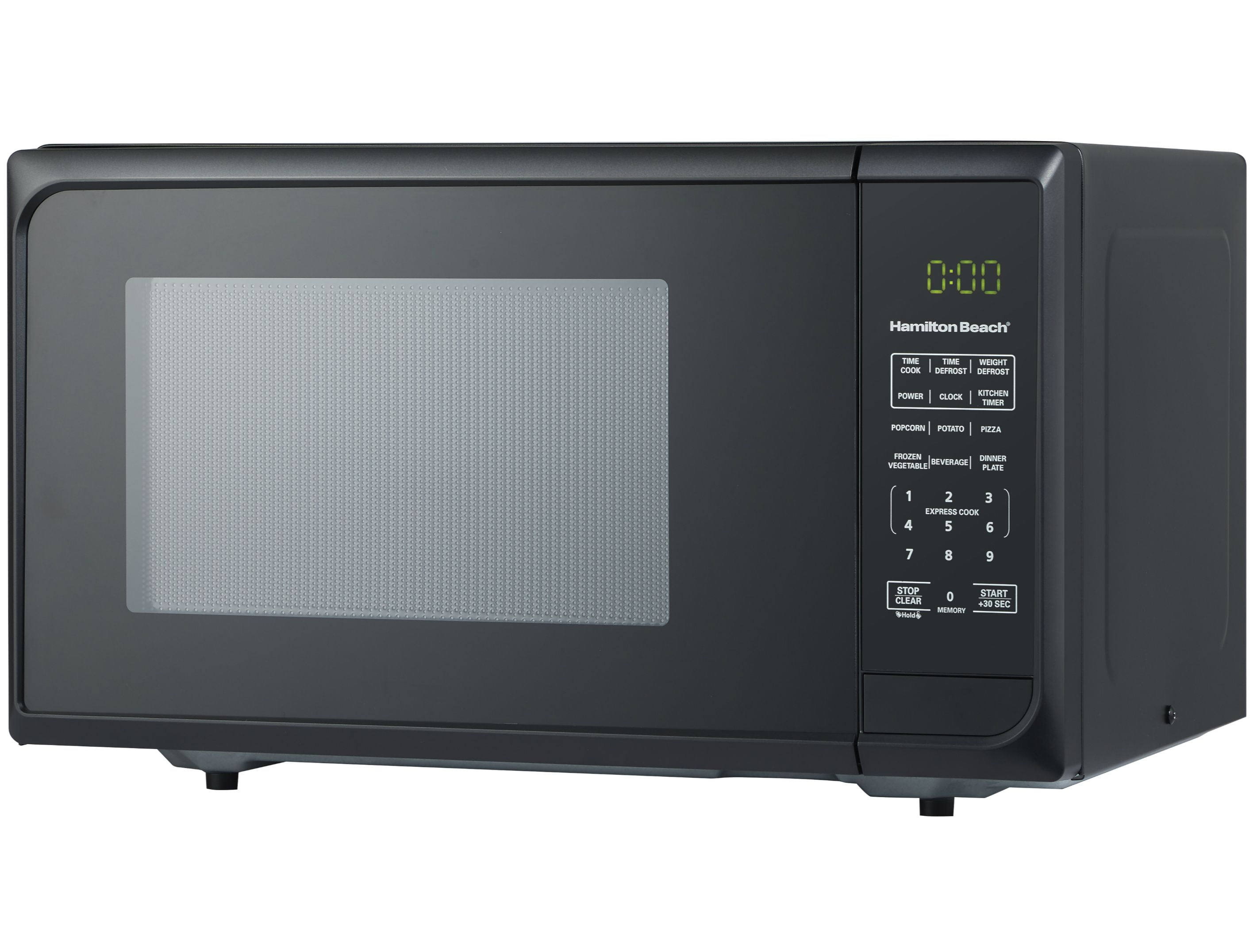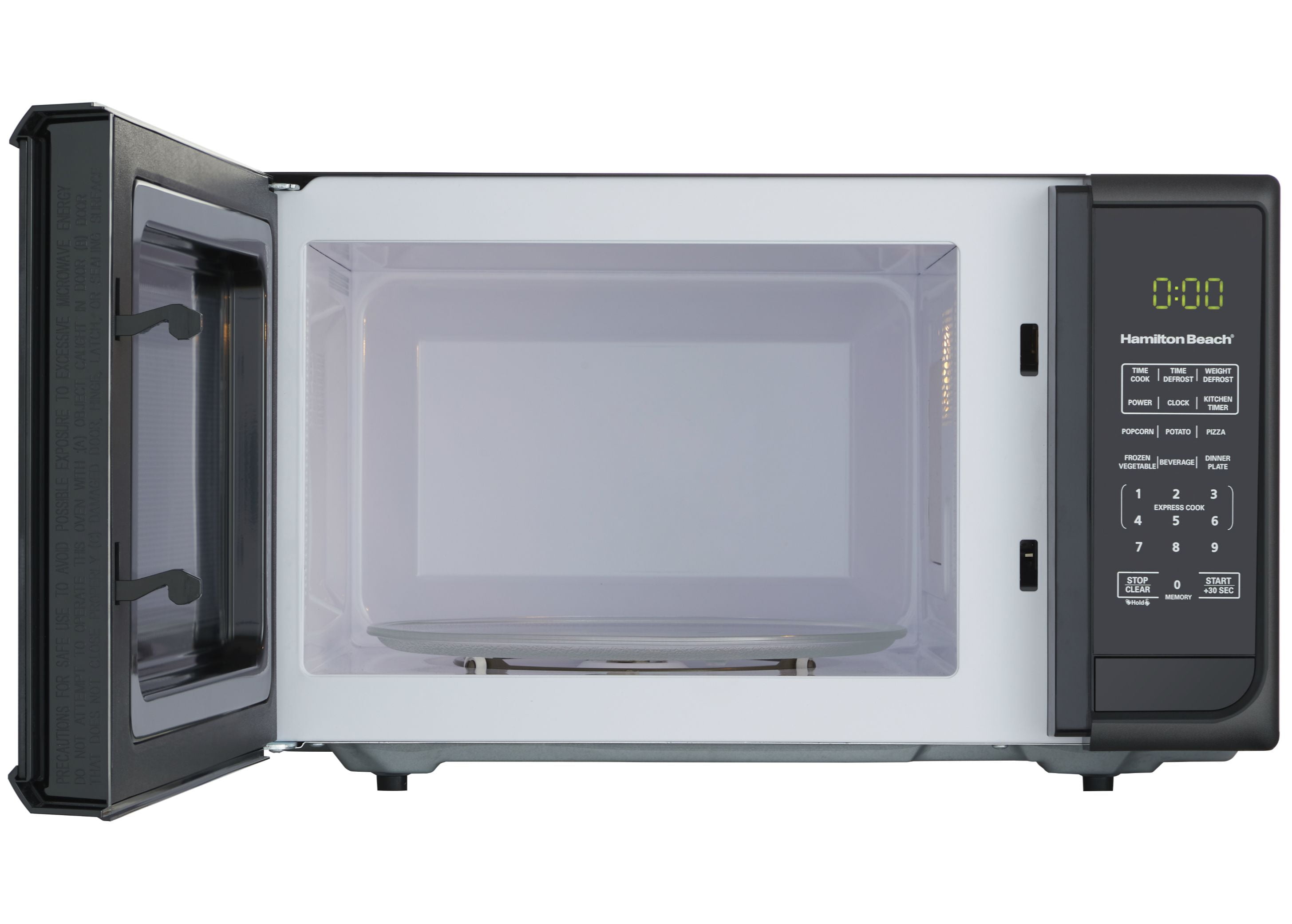 NEW EM925A2CE-P1 Hamilton Beach 0.9 cu ft, 900 Watt microwave oven with Matte Black finish has a timeless look that will fit in with any kitchen style, no matter if it’s a home, a dorm or an office area. Six quick-set menu options featuring popcorn, potato, pizza, frozen vegetable, beverage and dinner plate provide a great cooking versatility. The adjustable 10 power levels allow for optimal cooking and reheating results. Defrost by time and weight thaw ingredients evenly. Digital clock and timer are lit up on easy-to-read LED display. It also comes with a lock feature for child safety. This microwave is a wonderful gift for your family and friends, as an ideal cooking assistant in the kitchen.