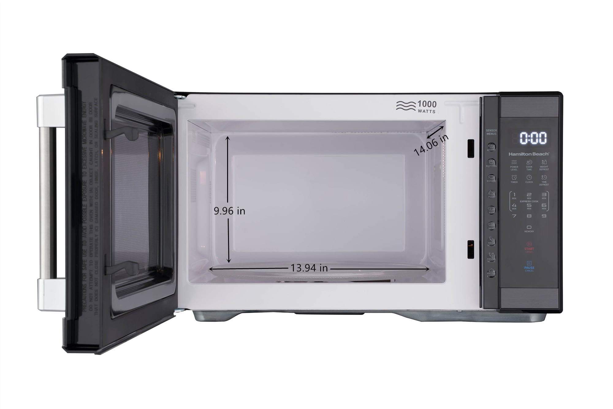 Hamilton Beach 1.1 Cu. Ft. Countertop Microwave Oven 1.1 cu. ft. capacity, perfect for a variety of cooking needs Stylish black stainless-steel design enhances modern kitchen aesthetics Powerful 1000W output with 10 adjustable power levels for versatile cooking. User-friendly touch pad control for easy operation Convenience cooking controls for quick access to popular settings. 8 Smart Sensor auto cooking menus for optimal results Time and weight defrost functions for efficient meal preparation. Clear LED display with kitchen timer for easy monitoring Cooking complete reminder alerts you when your food is ready