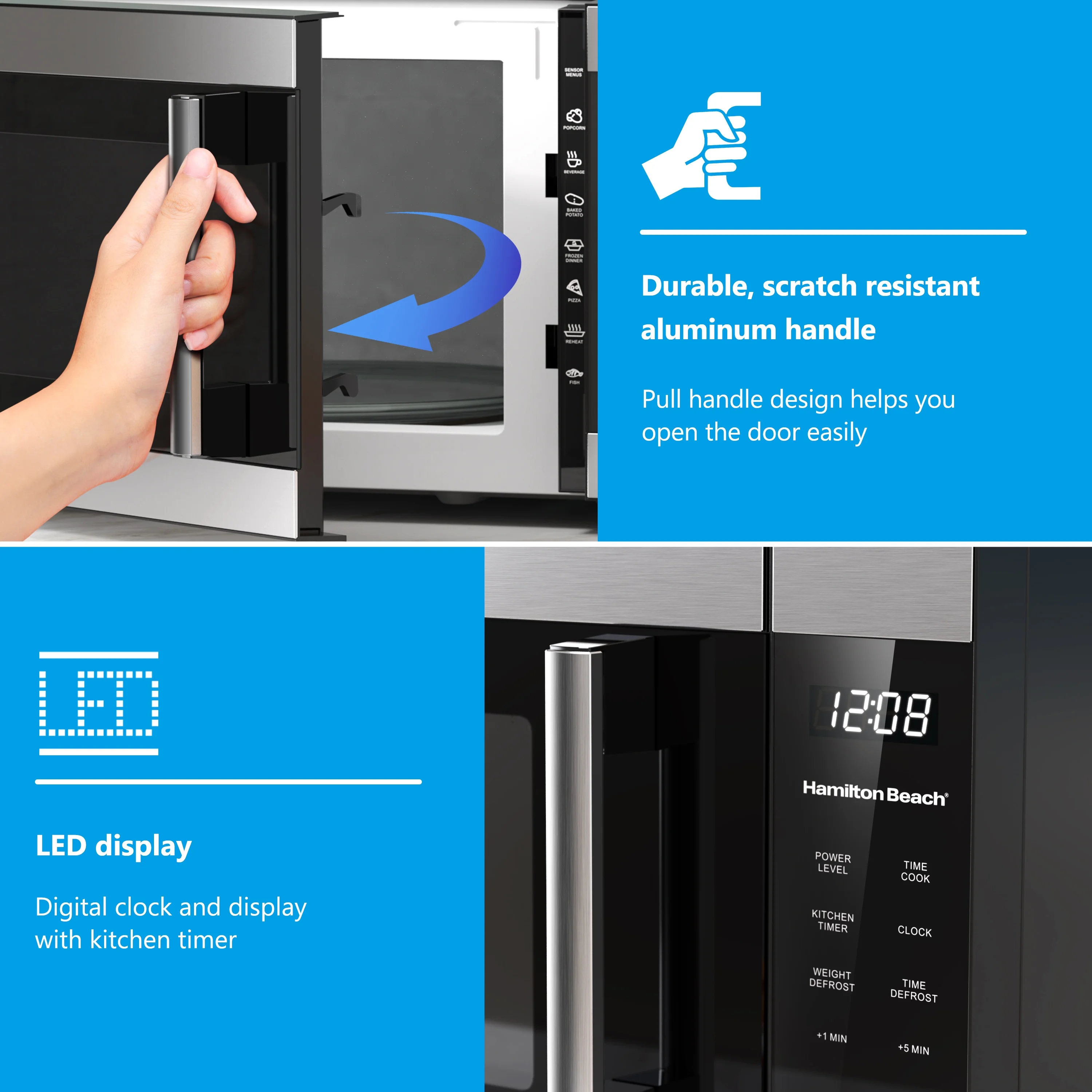 Hamilton Beach 1.6 Cu ft Sensor Cook Countertop Microwave Oven in Stainless Steel 1100 Watts of Power 7 preset sensor cook options Large 12.4 in glass turntable LED display Kitchen timer Capacity: 1.6 Cu ft Dimensions: 21.8 in L x 19.8 in W x 12.2 in H Condition: New Stock Number: HB8436127995-03