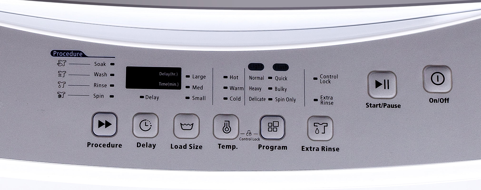 2.0 cu. ft. DOE stainless steel basket handles your small loads to let you enjoy more time in the living room instead of the laundry room Stainless steel tub wont chip, rust or snag clothing 6 fully automatic wash cycles including Normal, quick, cotton, jeans, anti-wrinkle and air dry allows you to choose the right cycle for your clothes ensuring they get the special attention they deserve Electronic controls for easy, 1-touch operation and cycle remaining display time makes this washer easy to use Three water level options reduce waste Delay start feature begins operation when it’s most convenient for your schedule Cycle end signal tells you when your wash is complete and automatically shuts itself off reducing power consumption Connect the washer directly to your faucet with the included quick connect adapter kit and hoses for easy and convenient installation The water pump filter easily captures debris, such as coins and buttons, as the pump assembly expels water from the unit preventing damage to the washer Portable design with front leveling legs that stabilize and built-in rear wheels lets you wash your clothes anywhere and at anytime Operating quietly with a noise level below 72 dBA so you can do laundry at any time even when you have guests