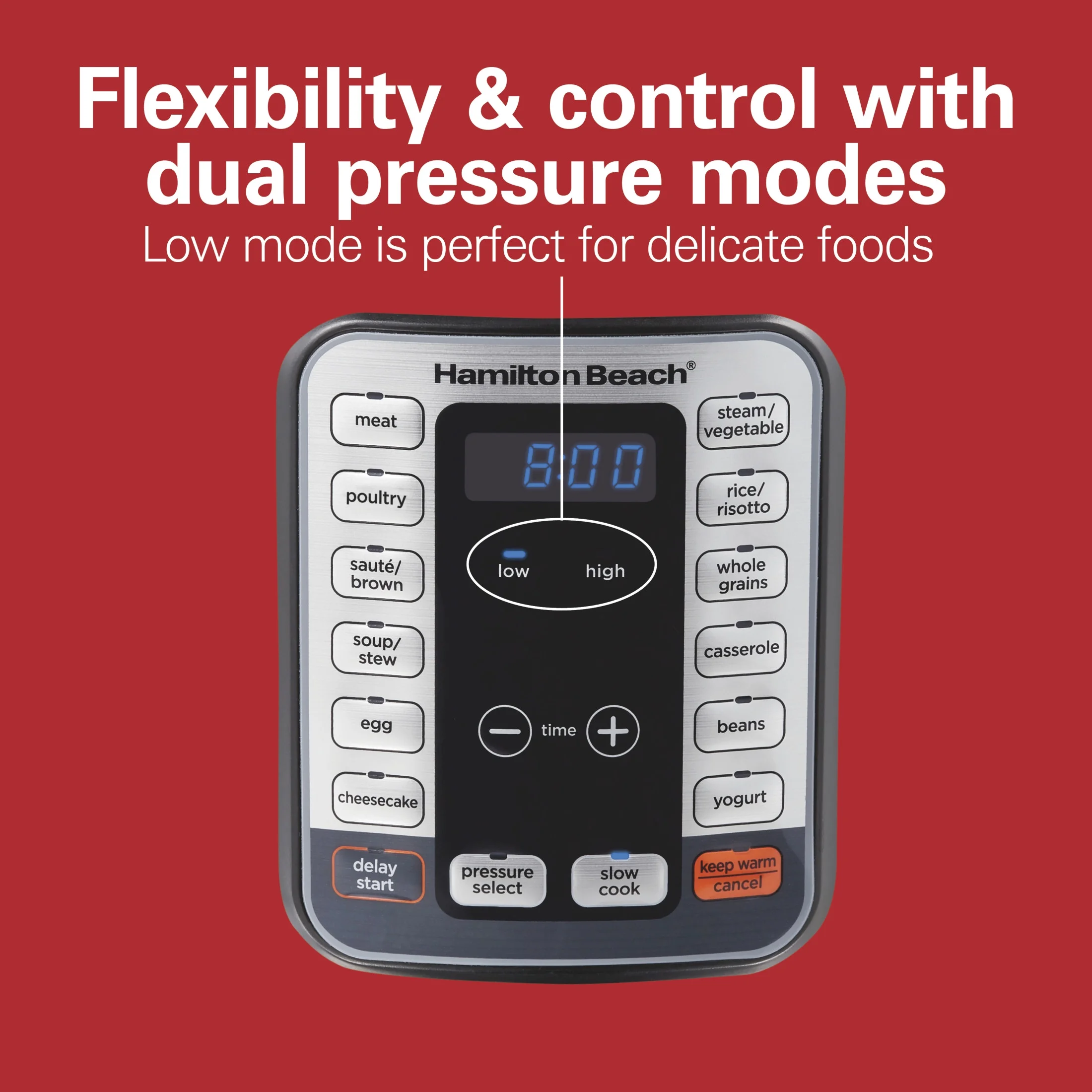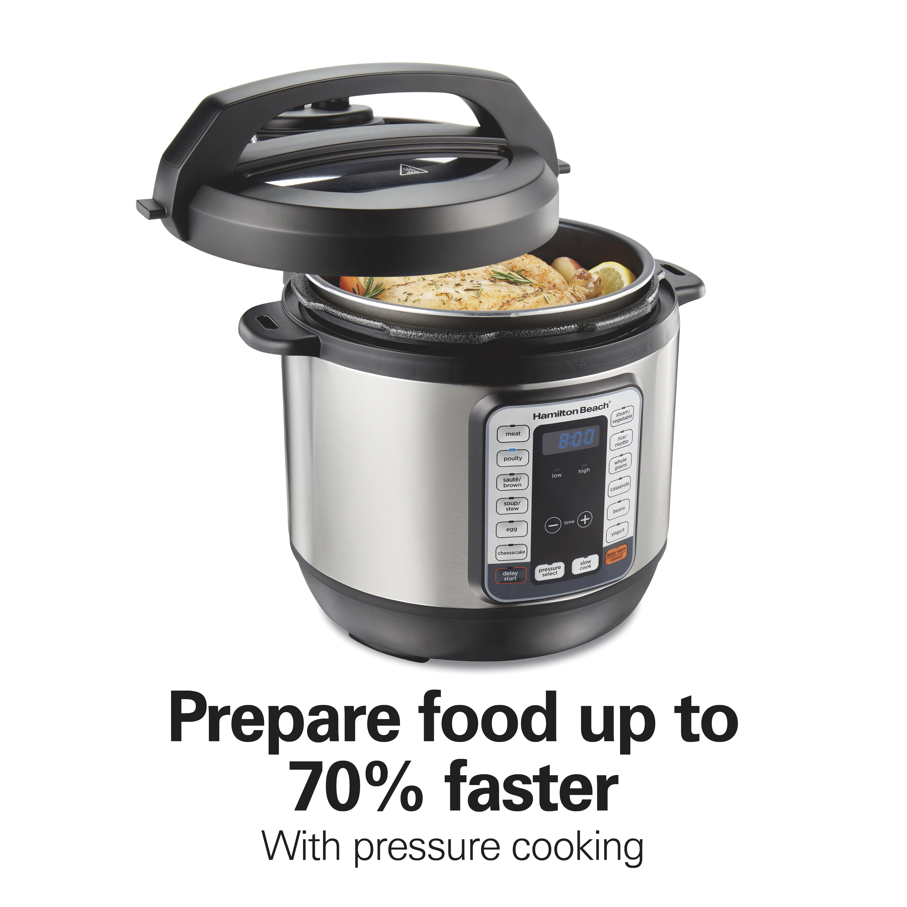 Hamilton Beach 8 Quart 12-in-1 Pressure Cooker, Multi-Cooker, Slow Cooker, Steamer, Sauté, Rice Cooker, & More