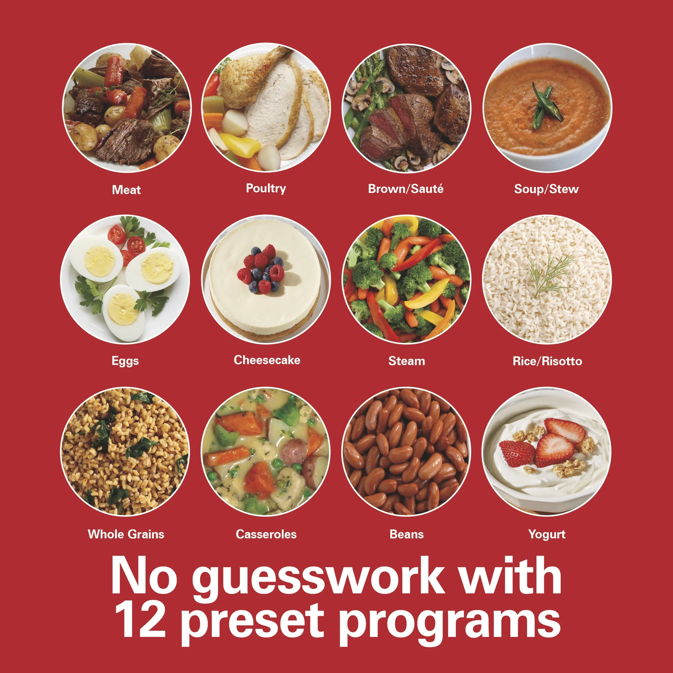 PREPARE FOOD UP TO 70% FASTER: With pressure cooking, you’ll get dinner on the table faster than you ever thought possible. Prepare food up to 70% faster with pressure cooking in this 8 quart pressure cooker. FLEXIBILITY & CONTROL: This multi cooker has dual pressure modes so you have more flexibility and control. The low pressure mode is perfect for cooking delicate foods like cheesecake and flan, while the high pressure mode is great for meats. FOODS WON’T OVERCOOK: True Slow™ technology with 2 heat settings ensures a gradual rise in temperature, for classic slow cooking results. Food doesn’t overcook and slow cooker meals come out just the way you expect. TAKE THE GUESSWORK OUT OF COOKING: We make pressure cooking easy with 12 preset cooking programs for: meat, poultry, rice, steamed vegetables, beans, whole grains, casseroles, eggs, soup, yogurt and cheesecake. EASY TO CLEAN: The removable 8 quart nonstick pot is dishwasher safe. The stainless steel exterior is also easy to clean.