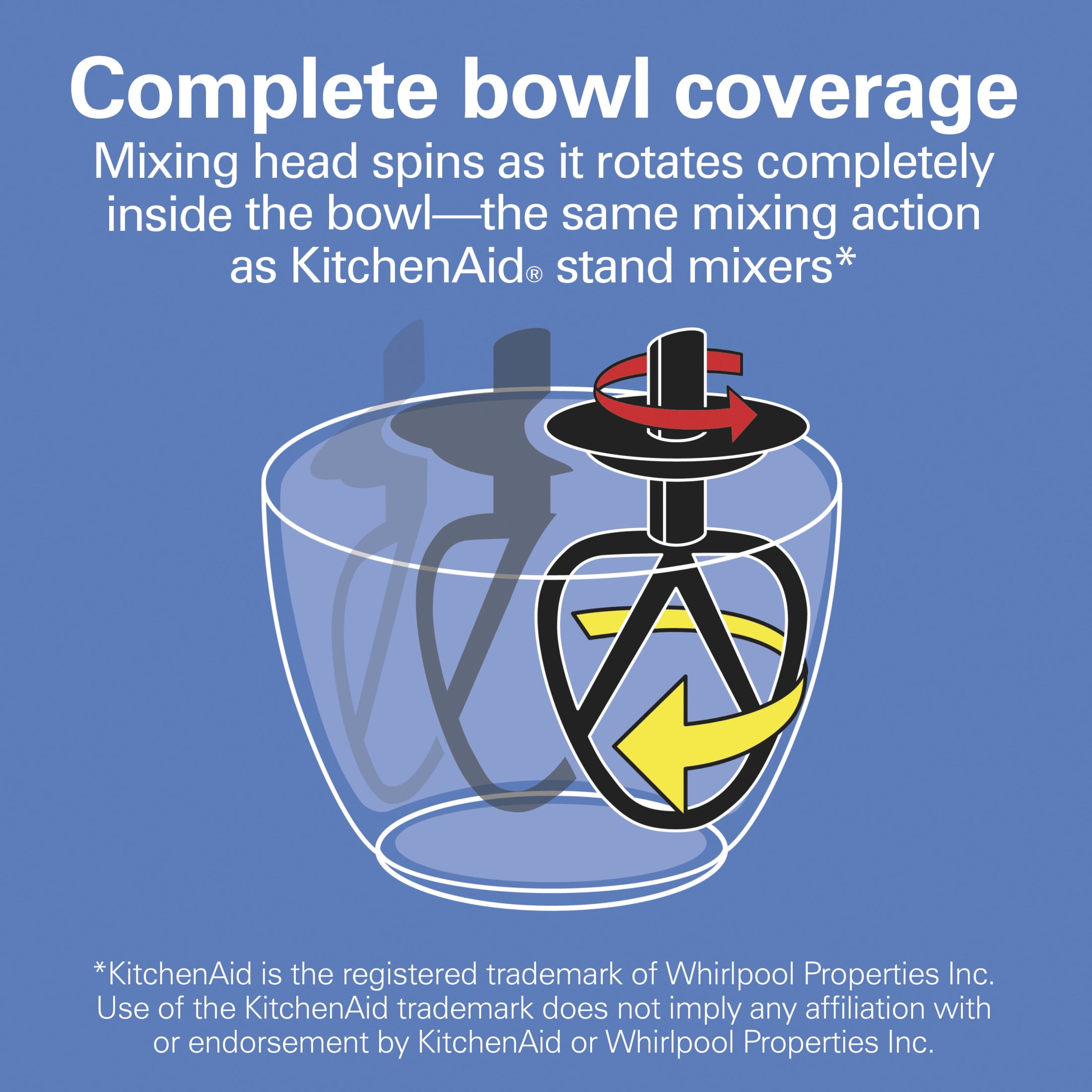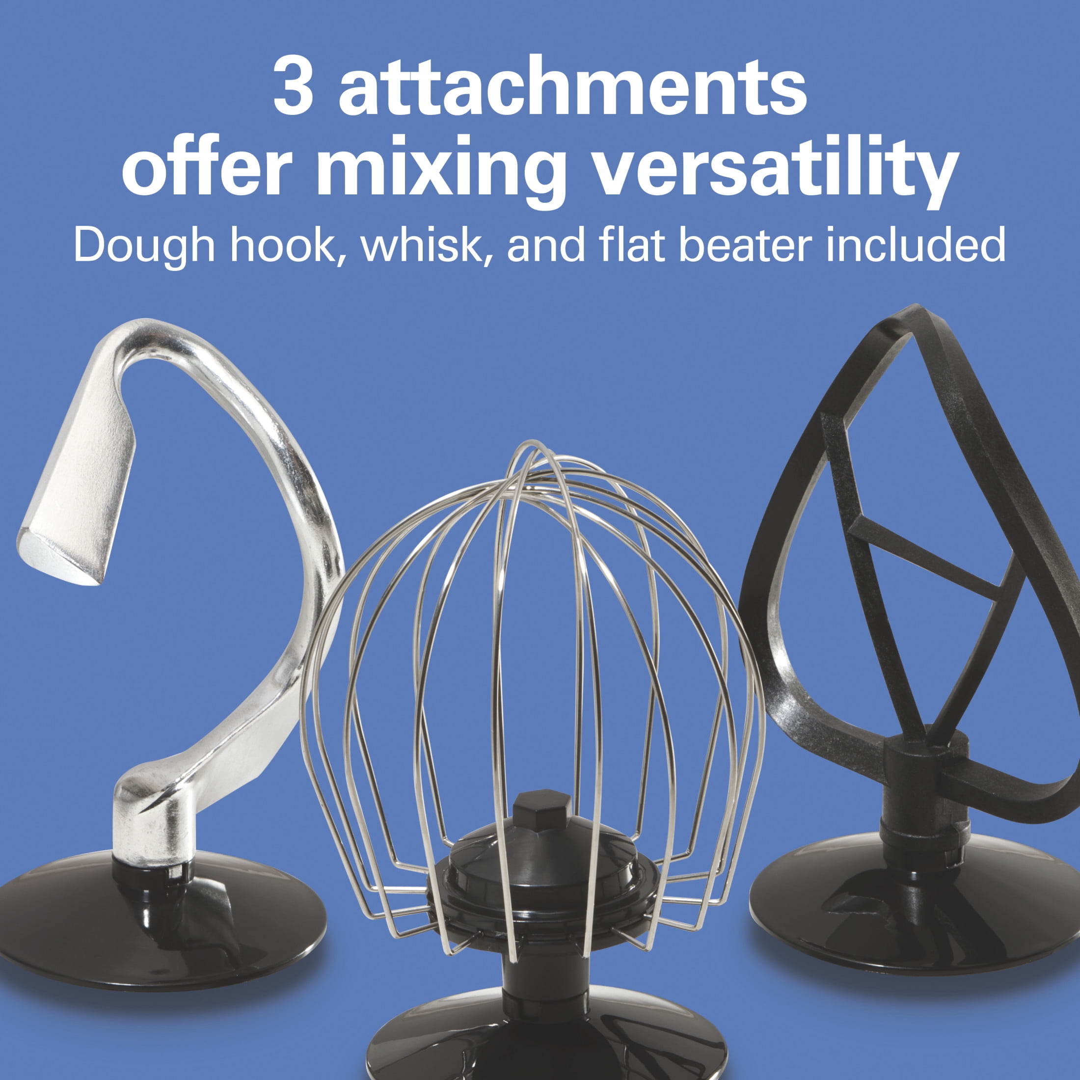 With a powerful 300 watt motor and planetary mixing action for complete bowl coverage, the Hamilton Beach Stand Mixer is designed for hands-free mixing. Six speeds and 3 mixing attachments give you maximum versatility and precise control. Hamilton Beach Planetary Stand Mixers save you time and energy while providing outstanding results. All Hamilton Beach Stand Mixers are designed for tough mixing and can handle even the thickest cookie or bread dough. • Same mixing action as KitchenAid stand mixers* • Mixing action gives complete bowl coverage • Powerful 300 Watt motor • Better mixing than 2-beater stand mixers • 3 attachments offer mixing versatility • 6 speeds and special fold setting • Stainless steel 3.5 quart bowl • Flat beater, dough hook & whisk are dishwasher safe • Mixing head spins as it rotates completely inside the bowl • Tilt-up head lifts out of the way for easy bowl access • Nonslip feet *Same mixing action as KitchenAid stand mixers—mixing action gives complete bowl coverage; mixing head spins as it rotates completely inside the bowl; better mixing than 2-beater stand mixers . KitchenAid is the registered trademark of Whirlpool Properties Inc. Use of the KitchenAid trademark does not imply any affiliation with or endorsement by KitchenAid or Whirlpool Properties Inc.