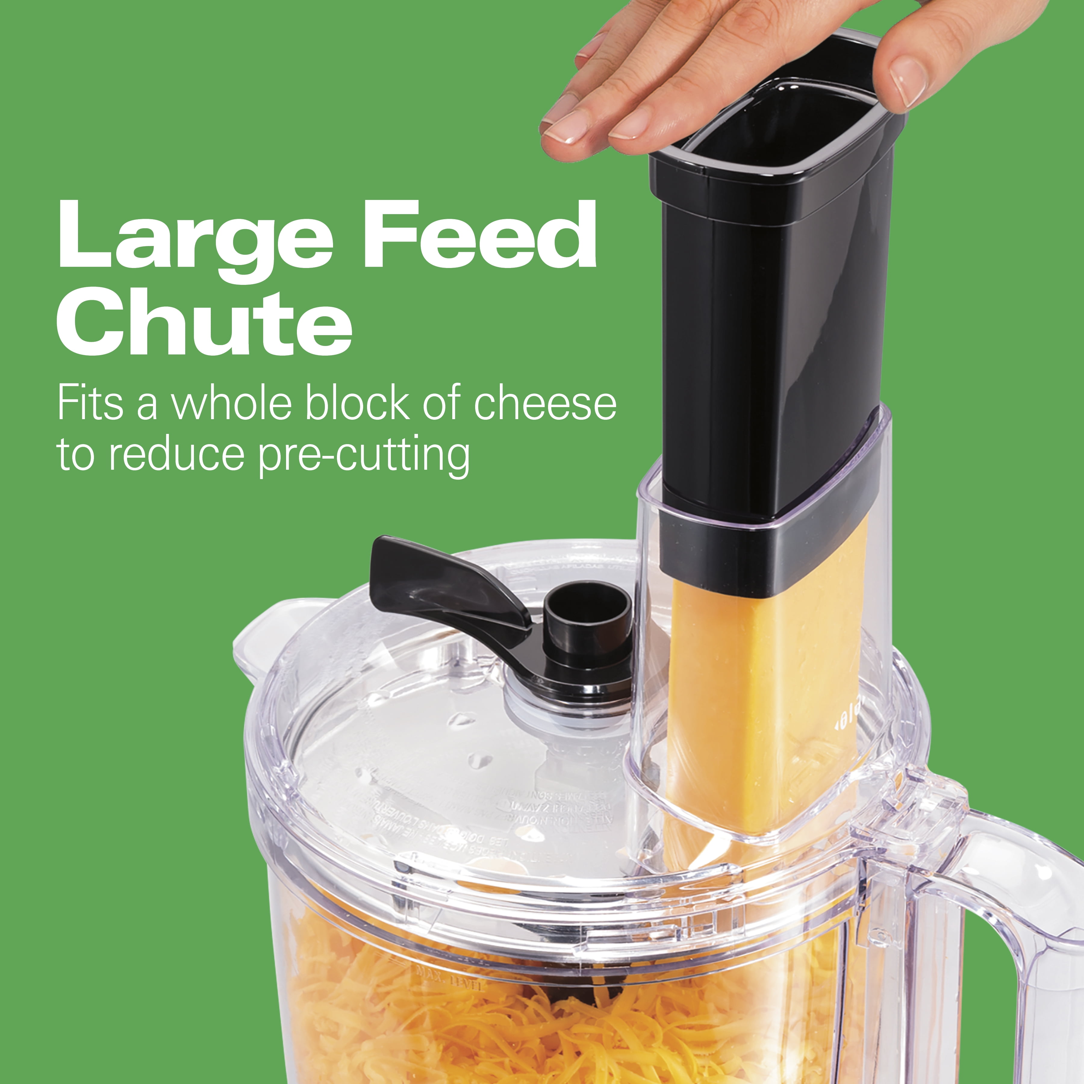 Spend less time pre-cutting fruits, veggies and more thanks to the large feed chute. It can even fit a whole block of cheese.