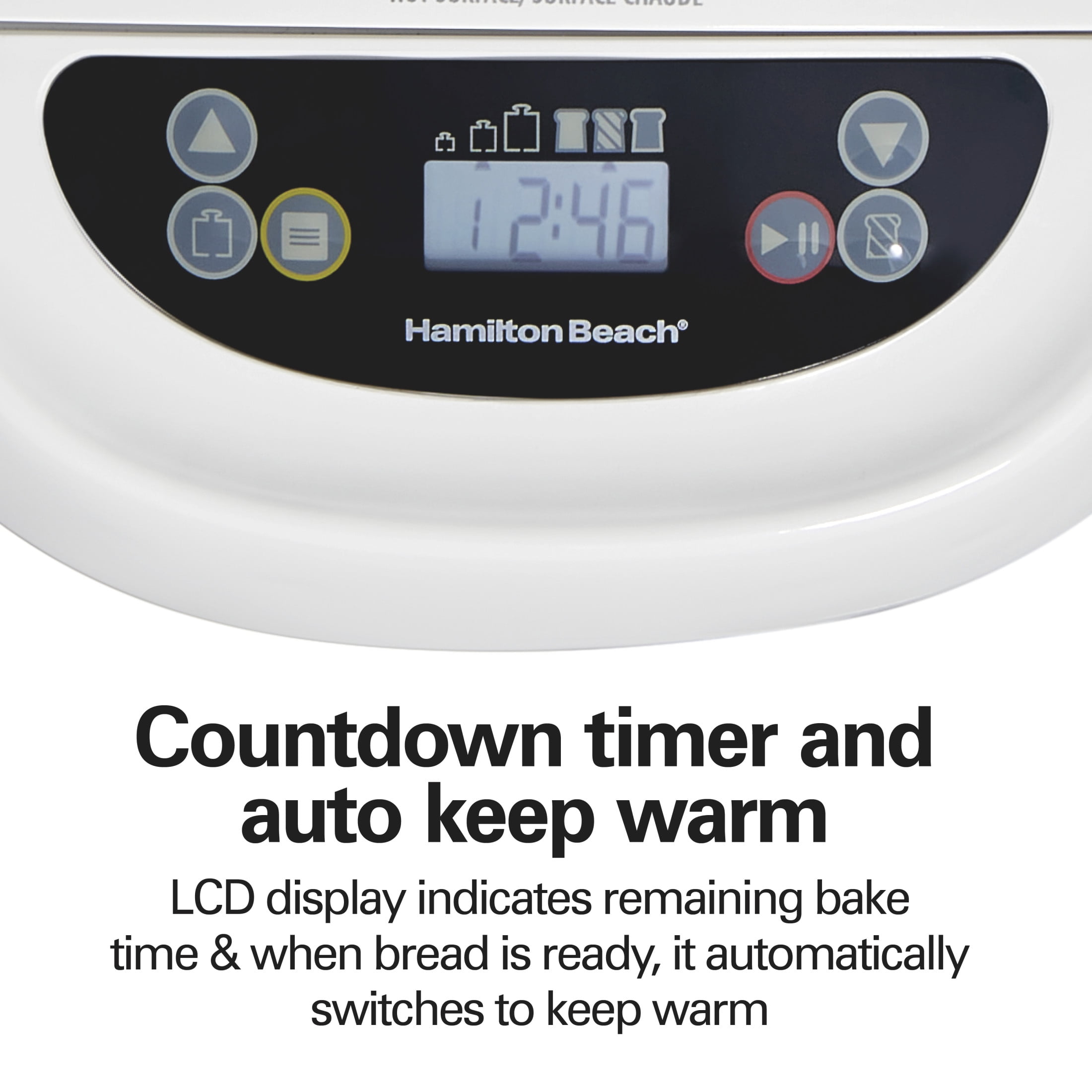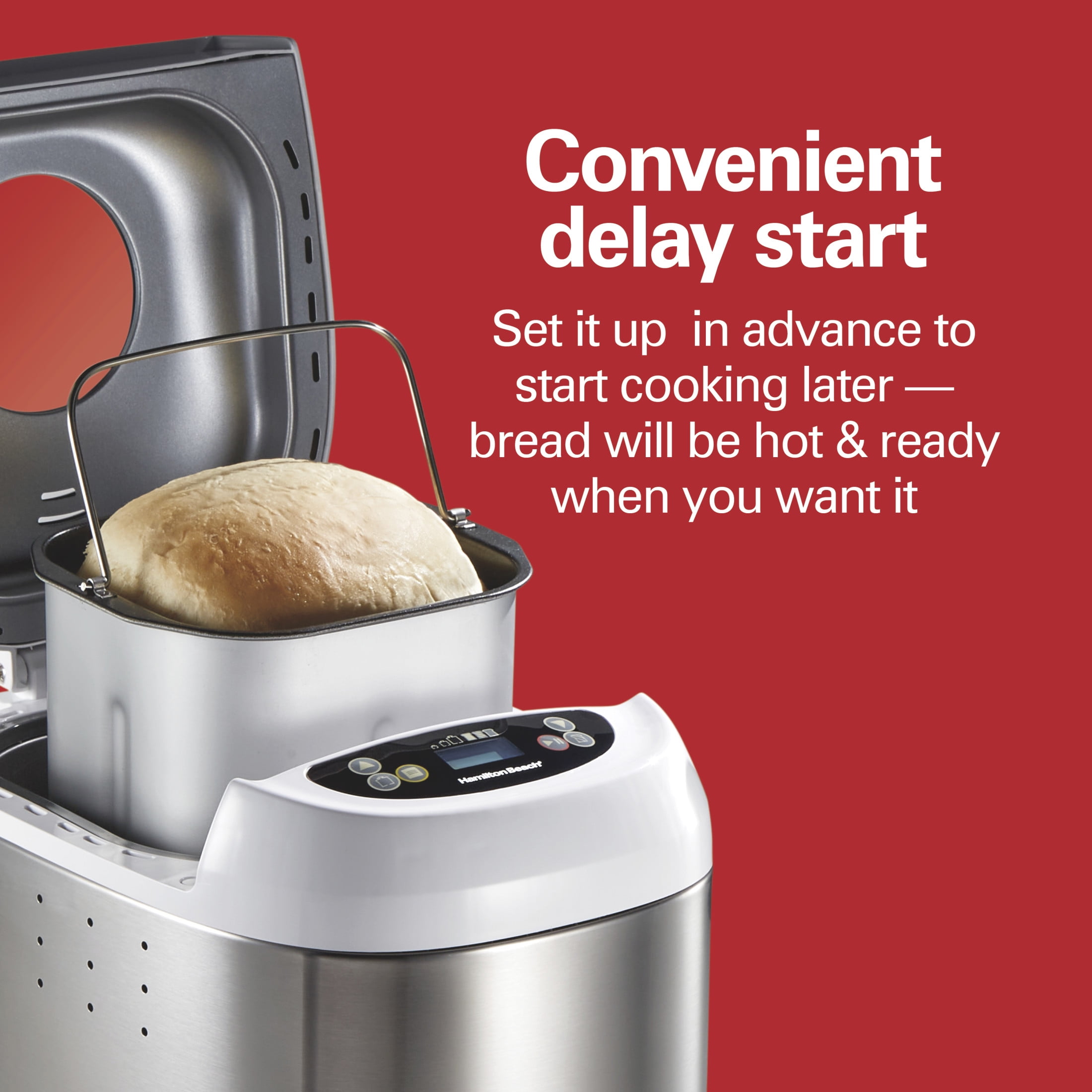 With the Hamilton Beach® Artisan Dough & Bread Maker, you can create homemade breads, doughs and more with minimal effort. Just add ingredients, select the cycle and press start — it’s that easy. The Hamilton Beach Artisan Dough & Bread Maker has 14 settings for making everything from basic and whole grain to gluten-free and French bread. The dough settings are perfect for creating artisan and classic dough, and there are even settings for making cake and homemade jam. Before baking bread, you can easily customize it to the perfect size and shade with 3 loaf sizes and 3 crust shades. As bread cooks, the countdown timer with LCD display shows the remaining time for each cycle and beeps when bread is ready. Includes removable nonstick bread pan and kneading paddle that are dishwasher safe for easy cleanup.