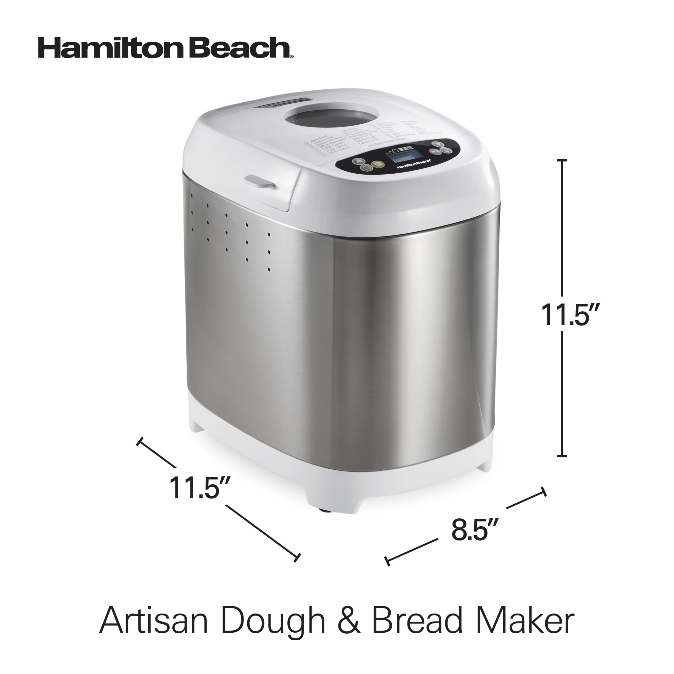 Hamilton Beach 2 lb Bread Maker Machine, Artisan Dough Bread Maker with 14 Settings, White & Stainless Steel
