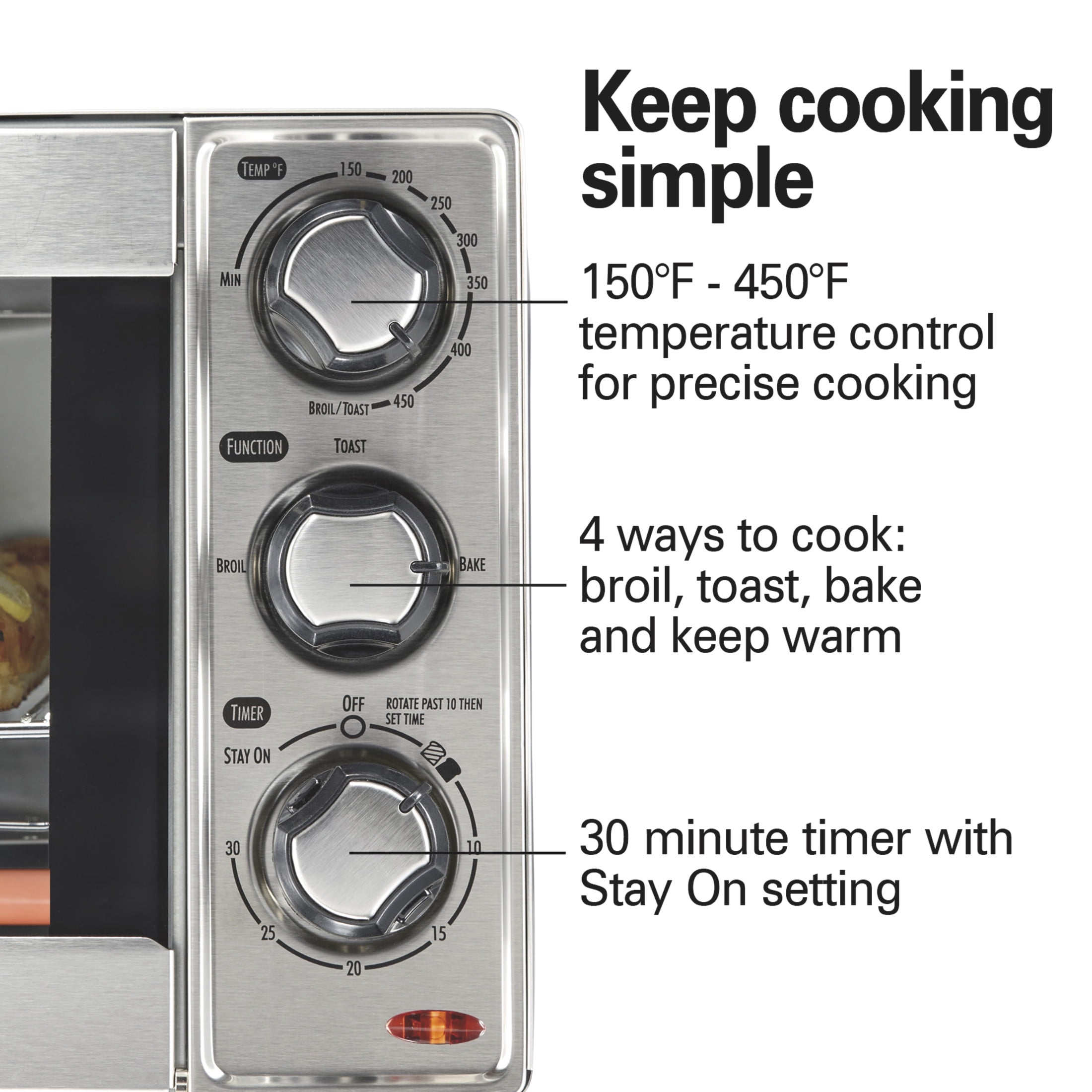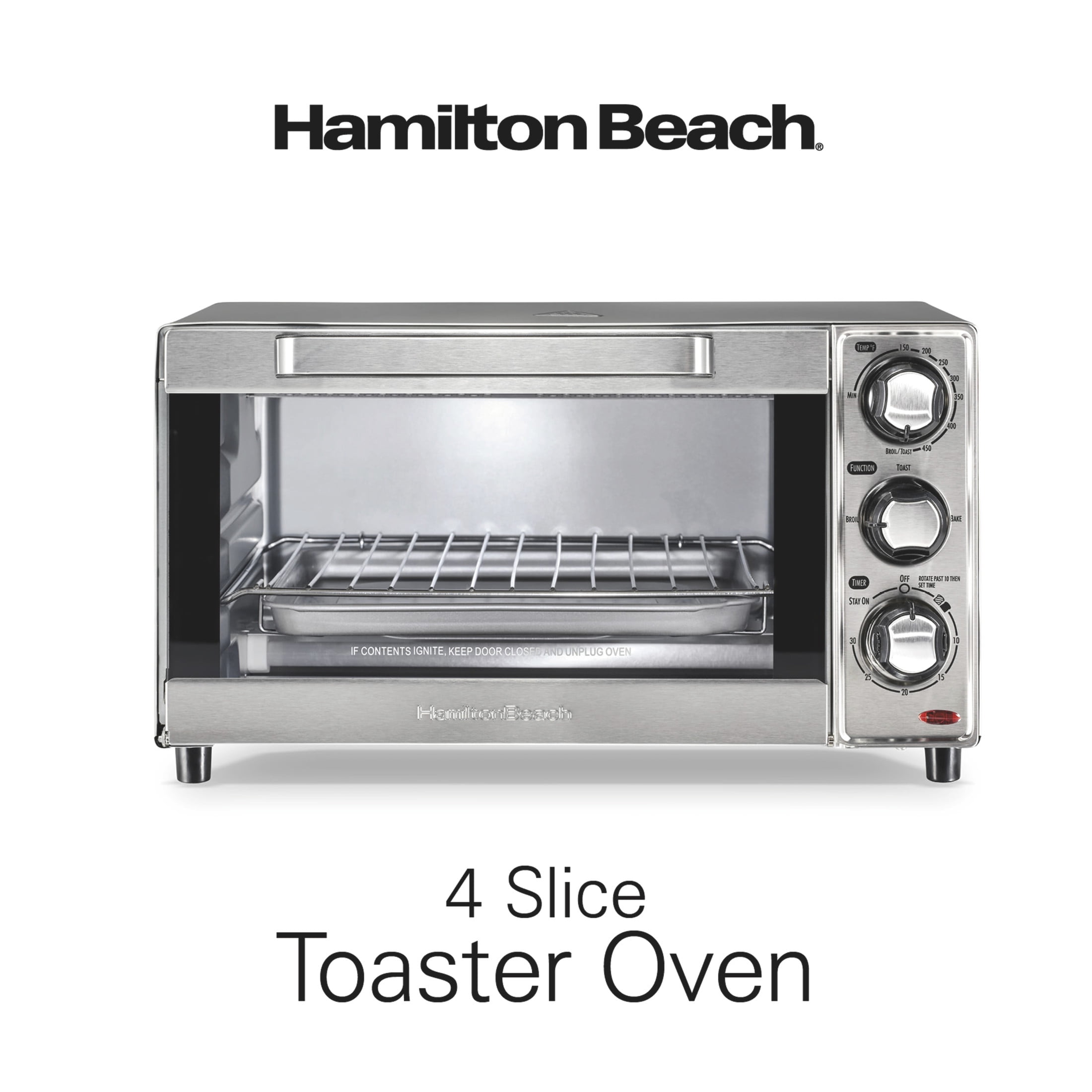 Hamilton Beach 4 Slice Countertop Toaster Oven, with Toast, Bake, and Broil Modes, Stainless Steel