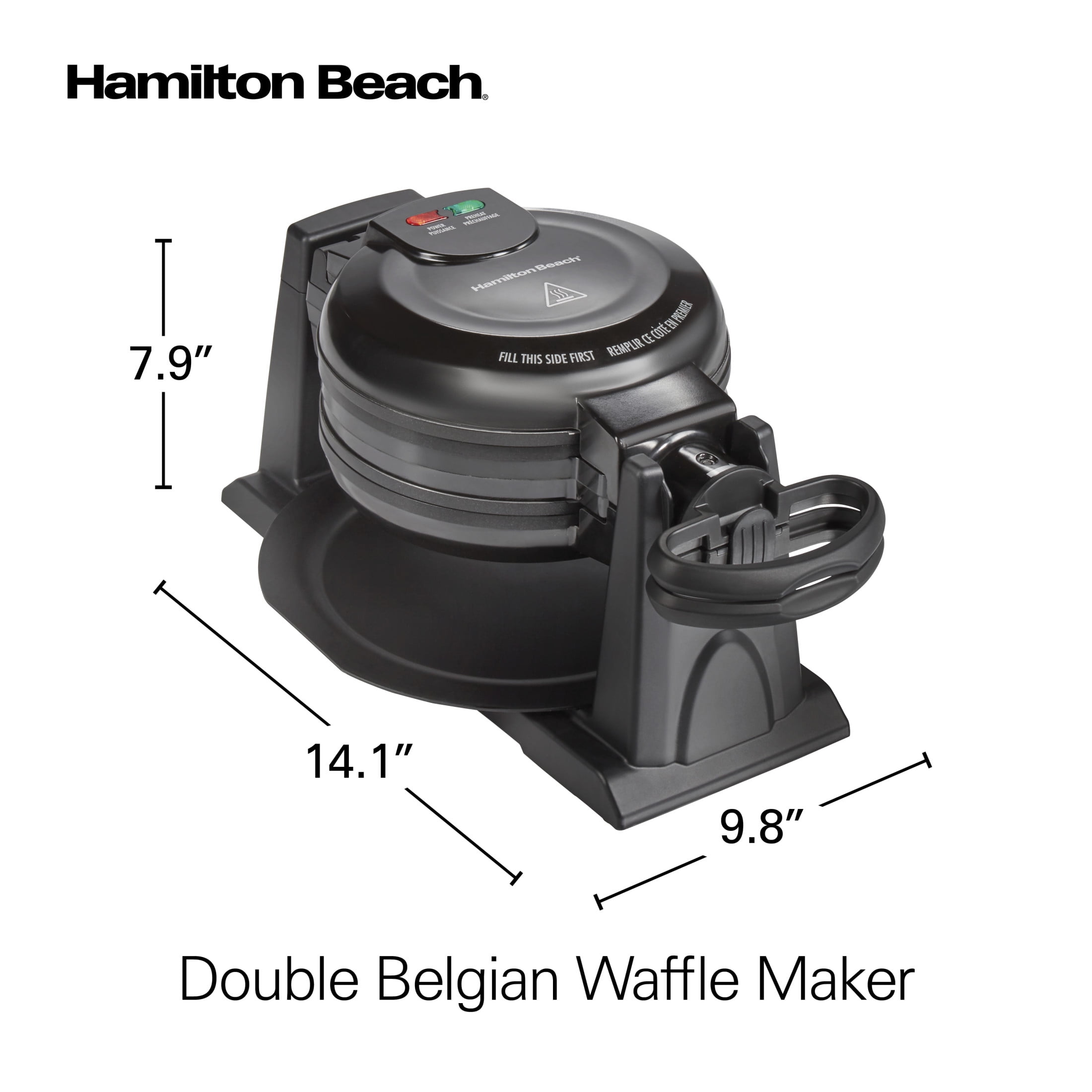 Hamilton Beach Double Belgian Waffle Maker with Removable Nonstick Grids, Rotating Waffle Iron, Black
