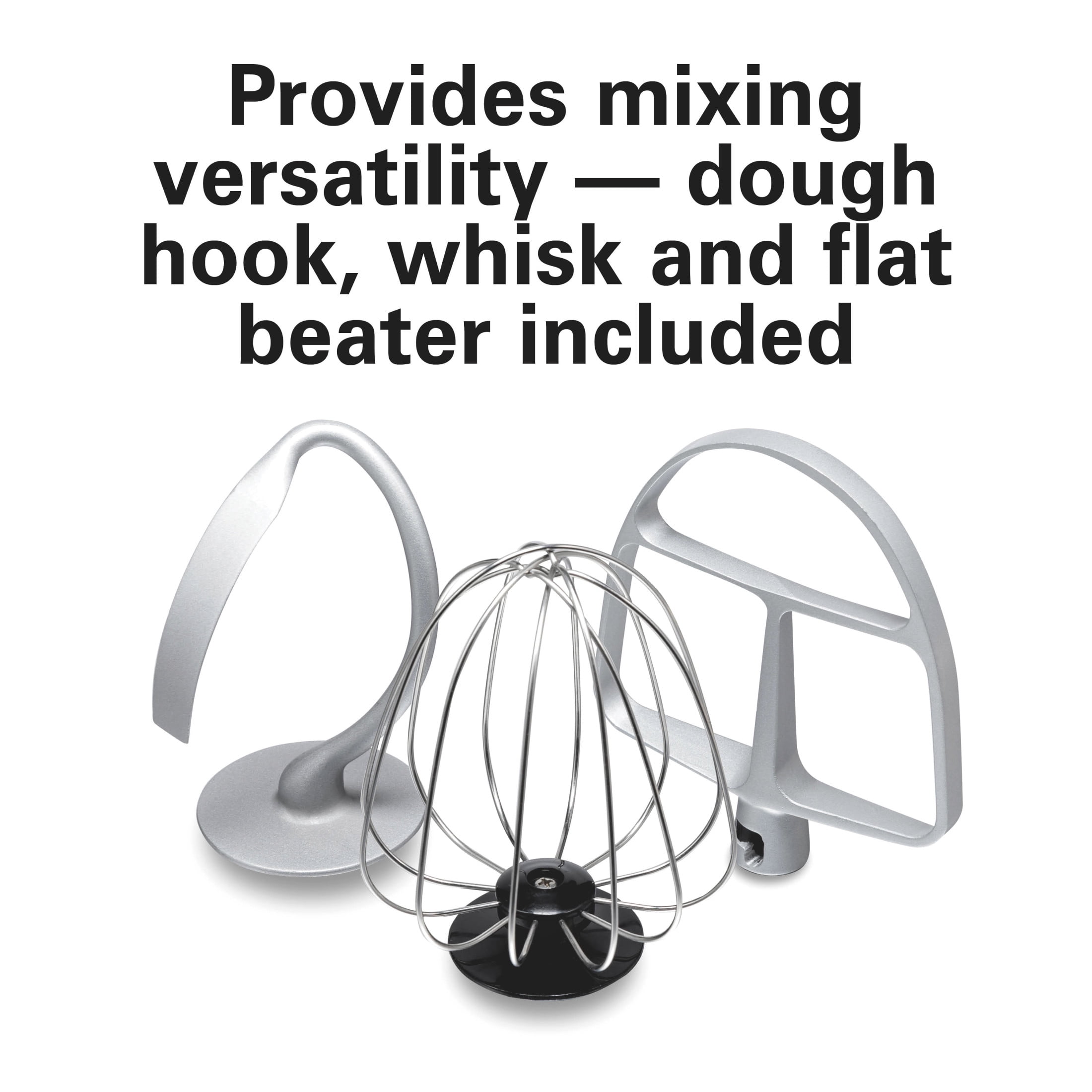 THOROUGH MIXING AND COMPLETE BOWL COVERAGE: As you mix, each stand mixer attachment rotates around the entire bowl as it spins at your selected speed. This planetary mixing action ensures that ingredients are mixed thoroughly and provides complete bowl coverage. POWERS THROUGH THE THICKEST DOUGH AND MAINTAINS CONSTANT SPEED: No matter how thick or heavy your ingredients are, the powerful 300 watt motor of this kitchen stand mixer maintains constant speed. PROVIDES MIXING VERSATILITY — DOUGH HOOK, WHISK AND FLAT BEATER INCLUDED: Three versatile attachments let you do everything from kneading pizza dough to mixing cookie dough and whipping cream. DURABLE STAINLESS STEEL BOWL WITH REMOVABLE SPLATTER SHIELD: The stainless steel bowl is designed to withstand year after year of mixing and includes a removable splatter shield that fits on top when needed. Dishwasher safe for easy cleanup. 7 SPEEDS HANDLE EVERY MIXING TASK: Go from slowly folding and combining ingredients on the first speed all the way up to beating ingredients or whipping cream at top speed. The stand mixer’s wide range of 7 speeds will cover every mixing task.