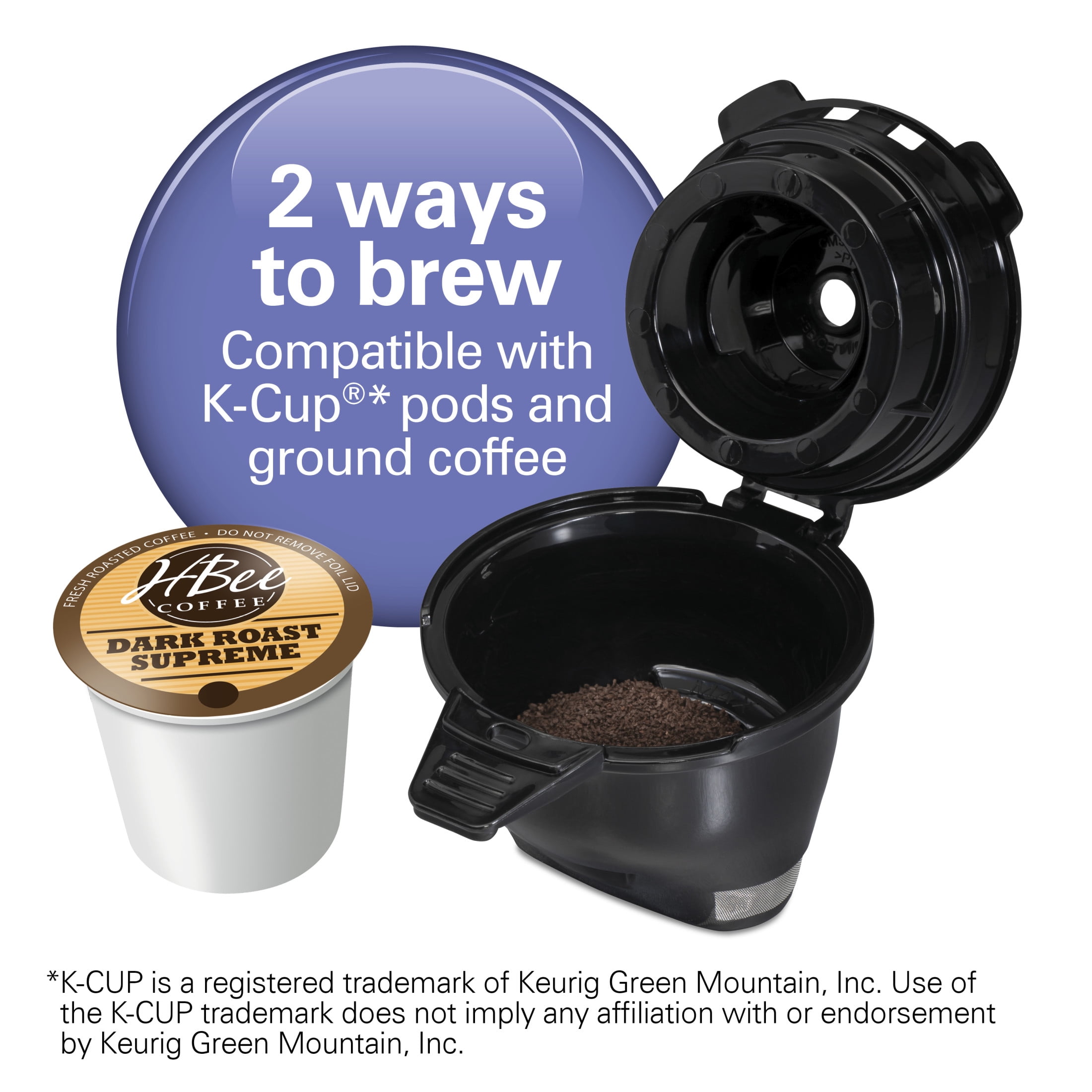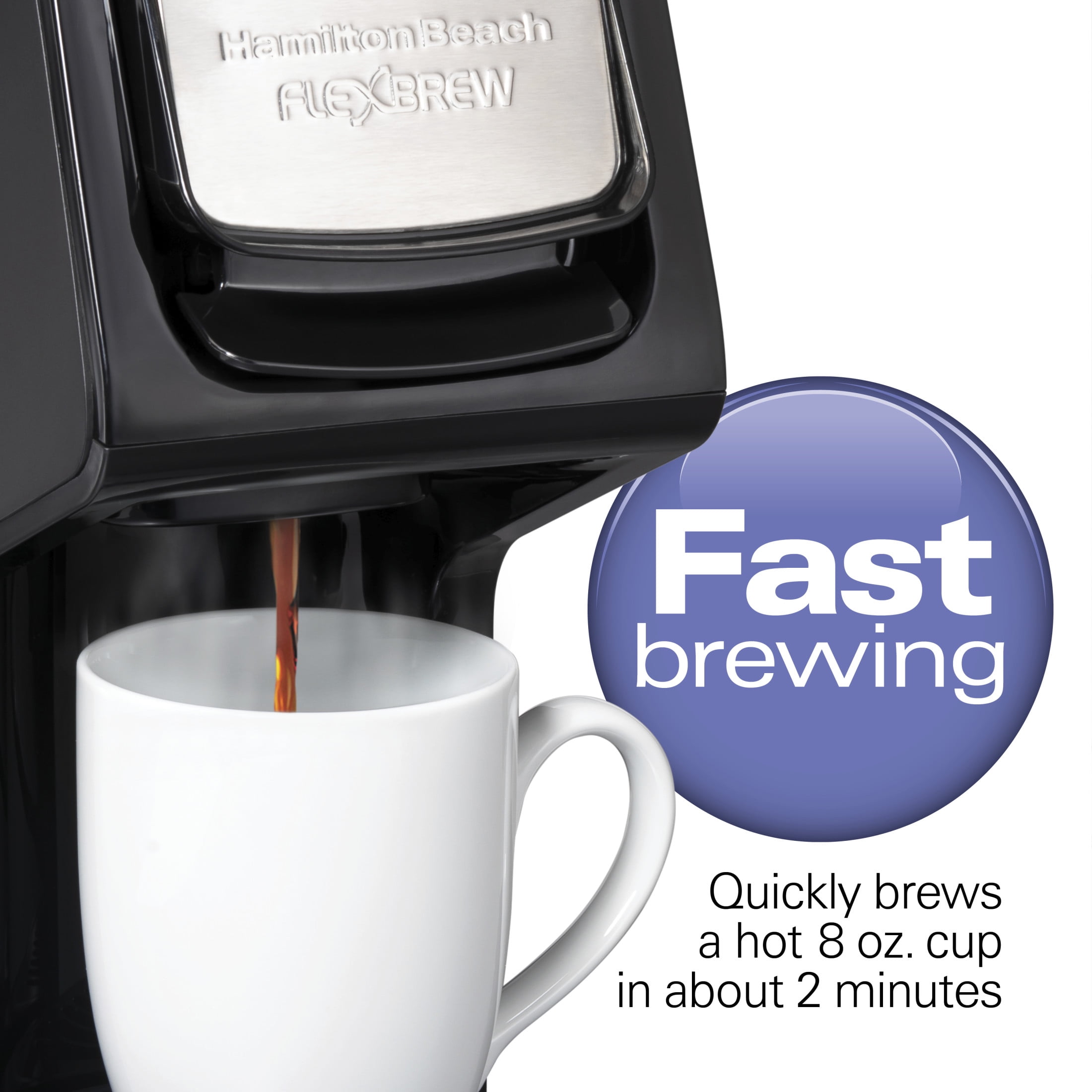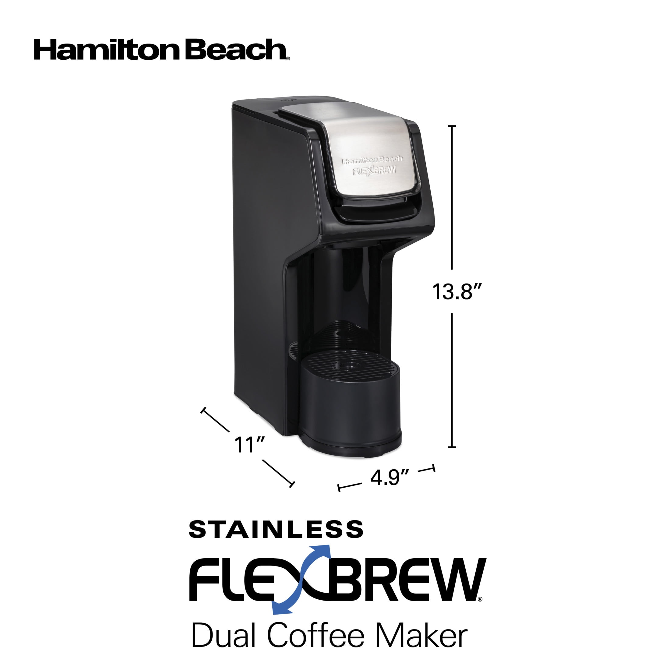 Hamilton Beach FlexBrew Sinlge Serve Coffee Maker, K Cup Pod Compatible & Grounds, 14 oz. Reservoir, Black & Stainless