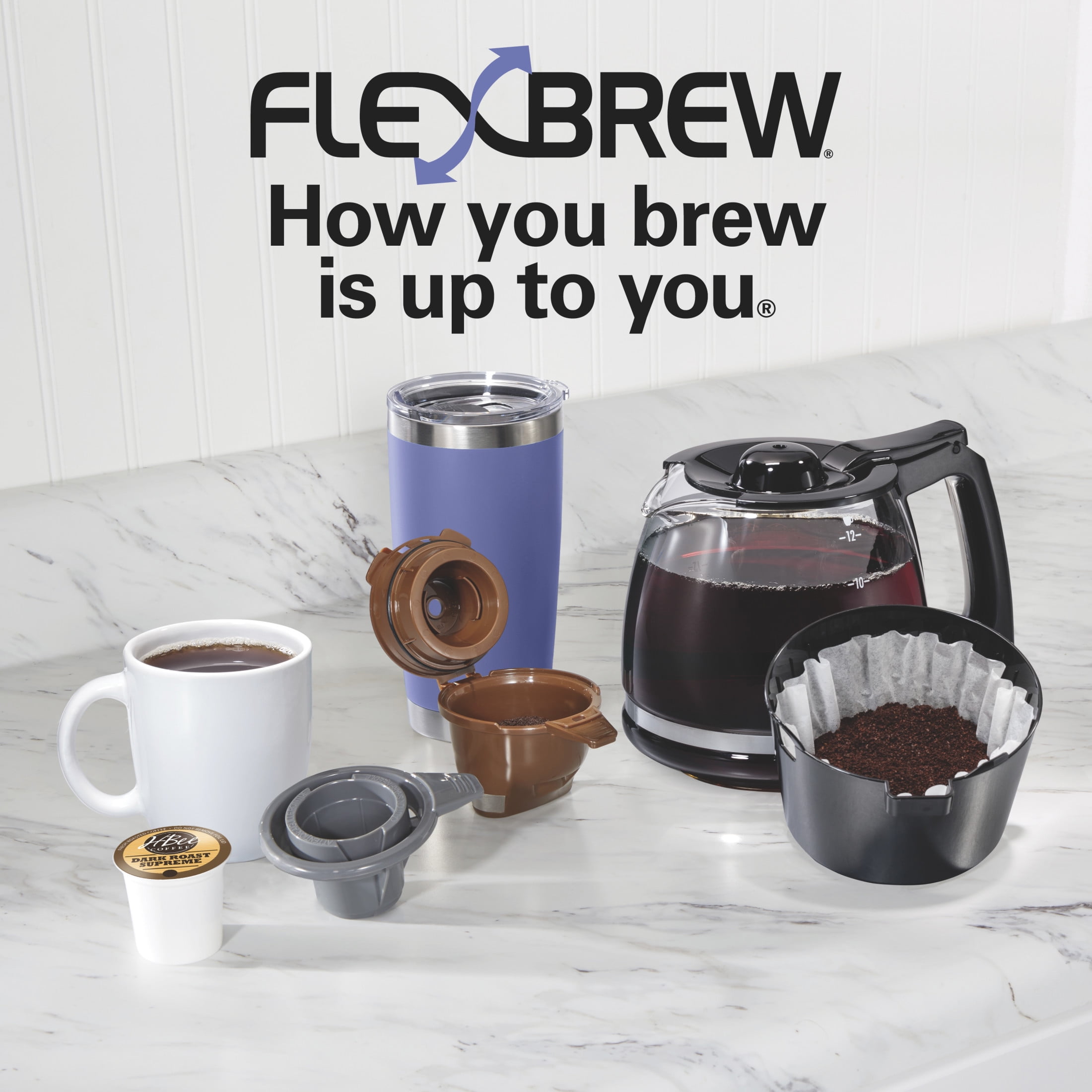 Hamilton Beach FlexBrew Coffee Maker, K Cup Pod Compatible Single Serve Coffee Maker & 12-Cup Coffee Pot, Black