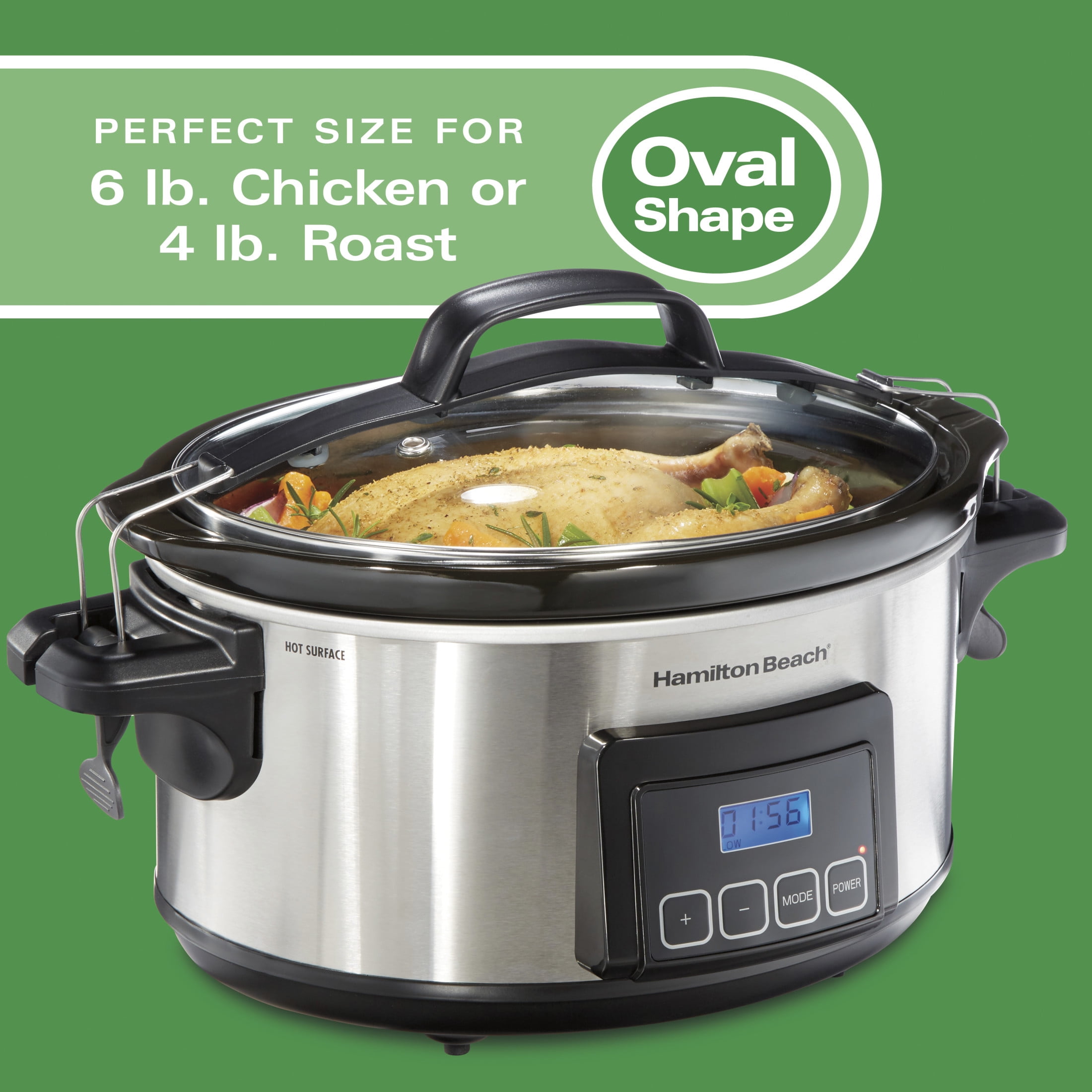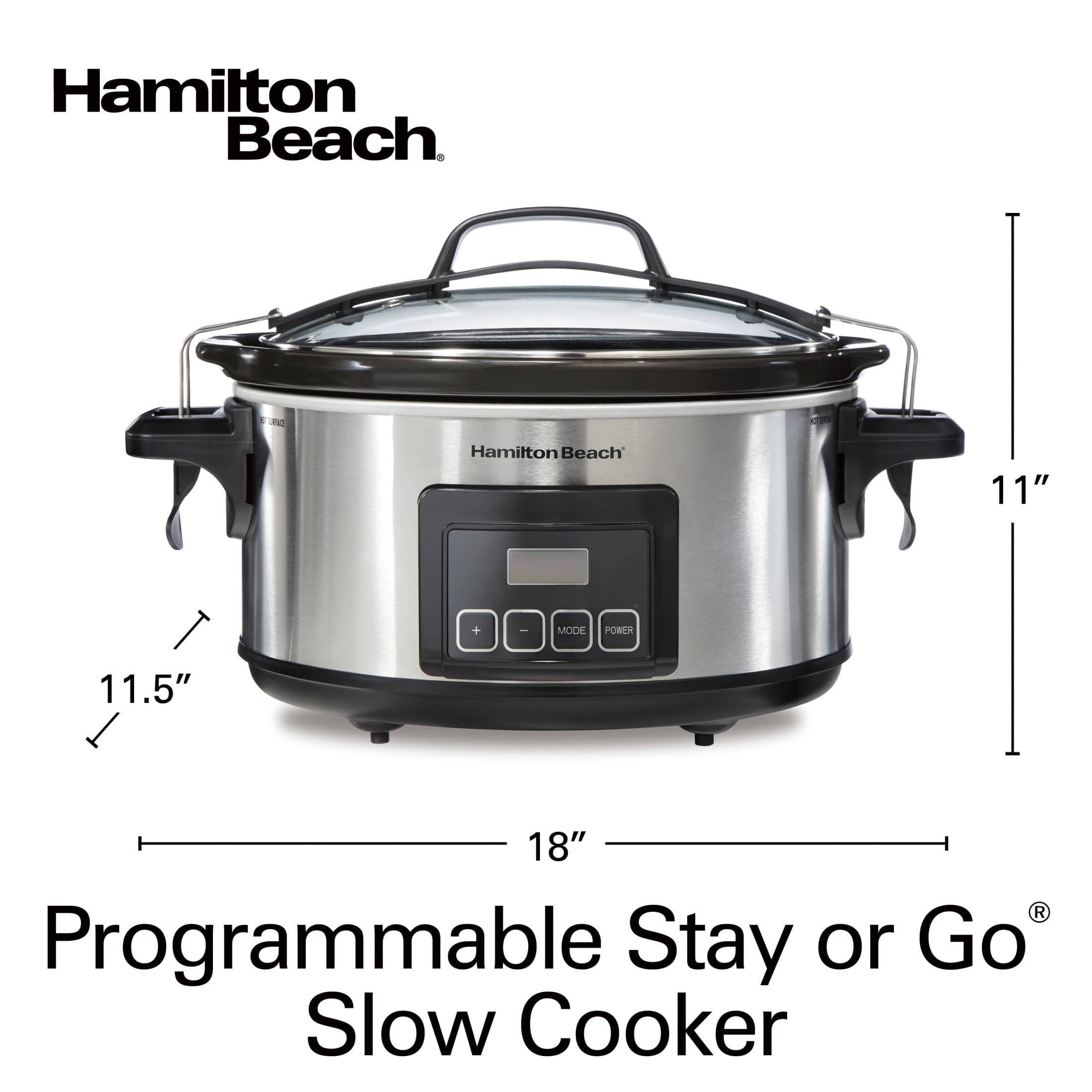 The Hamilton Beach Stay or Go Programmable 6 Quart Slow Cooker offers features that make traveling with your food a breeze, including a clip-locked lid and full-grip handles. Choose from three heat settings and pre-program a cook time between 30 minutes and 20 hours. Worry-Free Travel Keep your food in the crock, and not on your car floor, thanks to the locking lid. The full-grip handles make carrying the slow cooker to and from the car a simple, stress-free matter. Flexible Time and Temperature Settings Select whether to cook on Low or High, then choose a cooking time between 30 minutes and 20 hours. When your meal is done cooking, the slow cooker will automatically switch to Warm. Large Capacity The crock’s 6 quart capacity is perfect for one-pot dishes, family meals or crowd-pleasing appetizers. Dishwasher Safe Crock and Lid Removable stoneware crock and glass lid go in the dishwasher for easy cleanup. Hamilton Beach products are thoughtfully designed to make your life easier. We use consumer insights, in-depth research and rigorous testing to deliver the best solution to your everyday needs. Whether it’s preparing delicious meals and beverages effortlessly, or making your clothes look their best, you can count on the brand that has spent over 100 years creating products with you in mind.