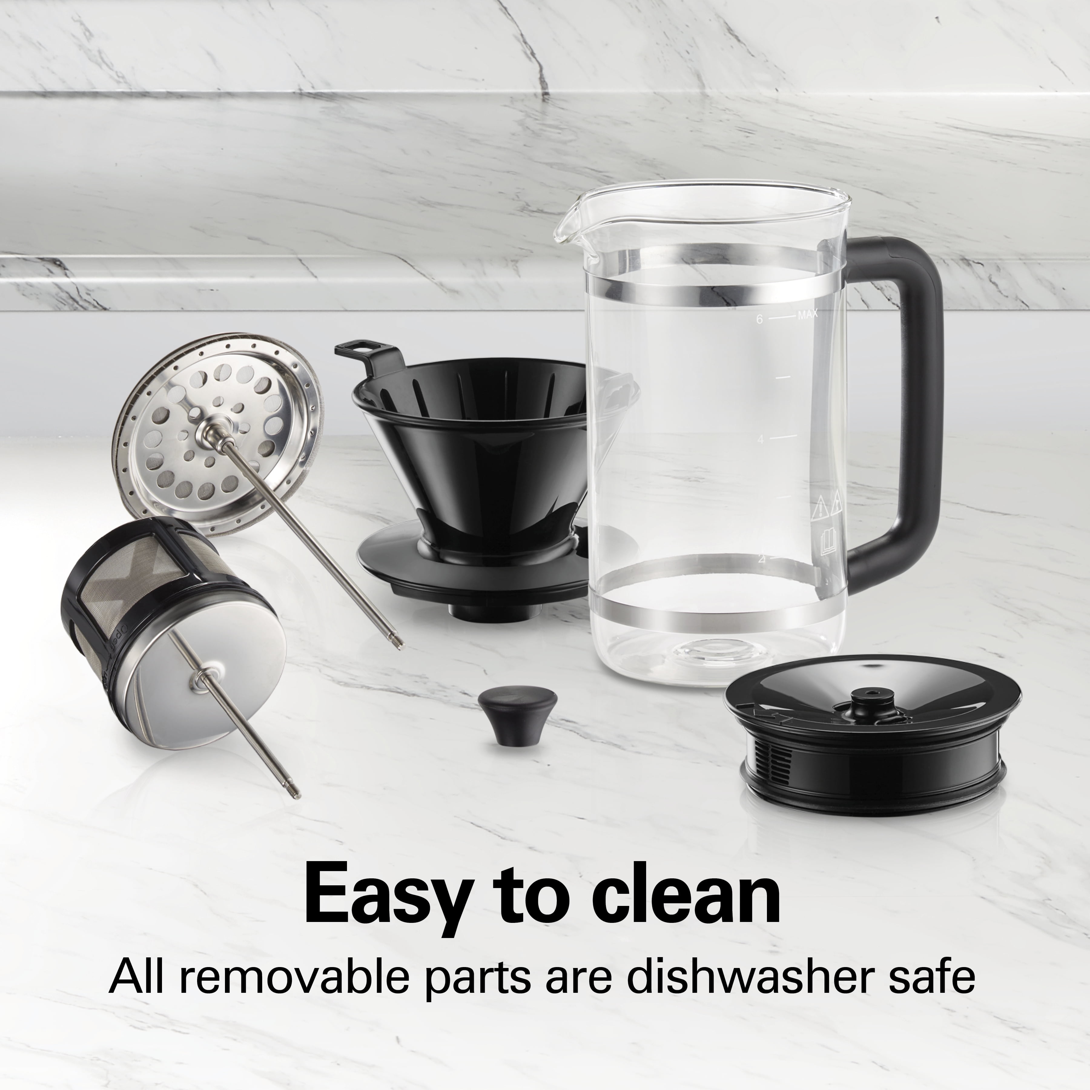 7 WAYS TO BREW: Why waste money on multiple brewers when one machine does it all? The Home Barista 7-in-1 Coffee Maker does the work of many brewers so you’ll save up to 40%* vs. buying separate appliances. BREW COFFEE YOUR WAY: Prepare hot or iced coffee as a single serving or brew up to 6 cups in the carafe. COMPACT DESIGN FITS EVERY KITCHEN: The slim, 5″ wide design of this compact coffee maker takes up minimal counter space and looks great in every kitchen. CHOOSE YOUR SIZE — BREW INTO A CUP OR TRAVEL MUG: The adjustable cup stand flips up or down to fit your cup. You can brew a standard 8 oz. cup of coffee or up to 14 oz. into a 7” travel mug (cup and mug not included). EASY TO CLEAN: All removable parts of this 6 cup coffee maker are dishwasher safe for easy cleanup. *Savings based on cost of purchasing separate appliances for all brewing methods