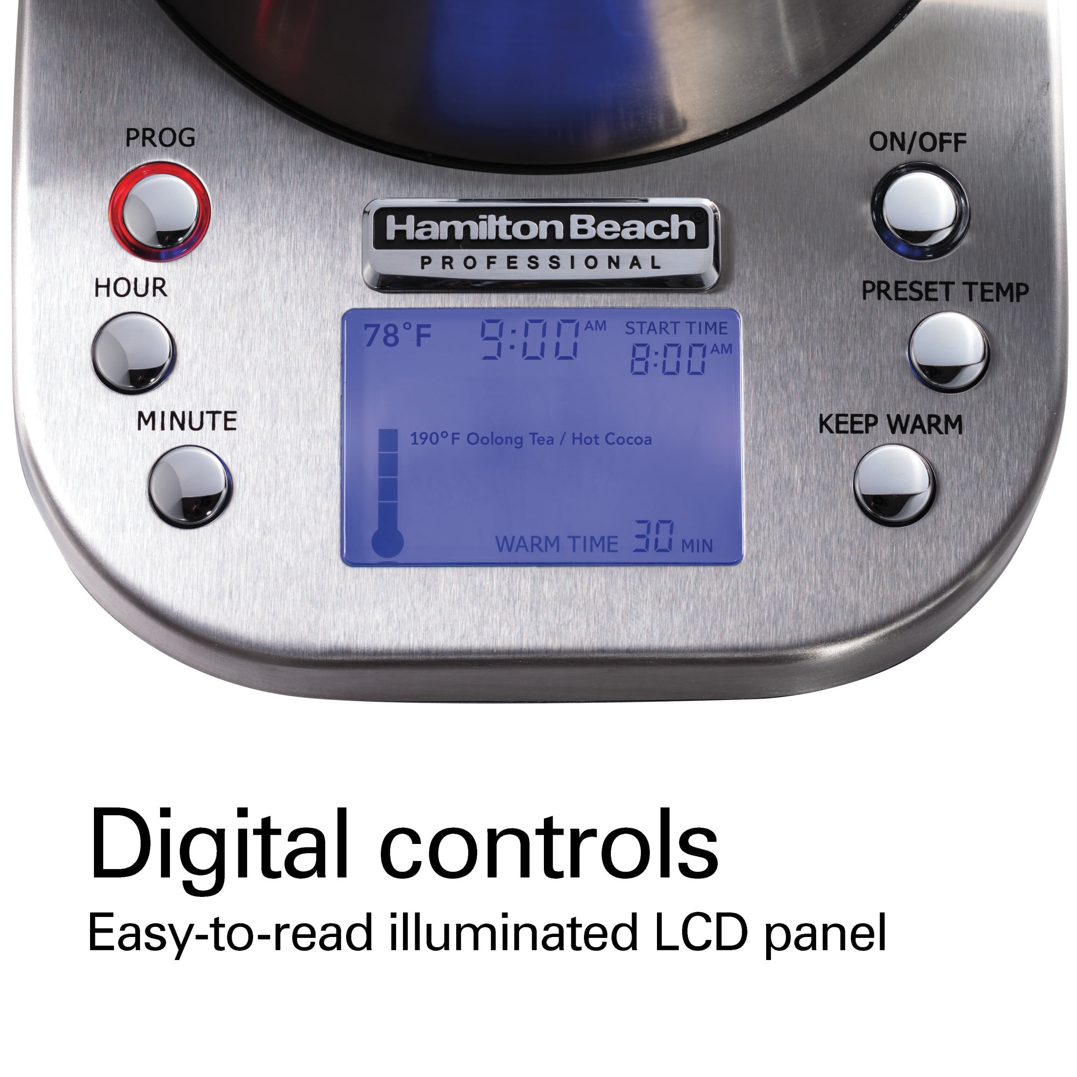 Hamilton Beach Professional Electric Kettle, 1.7 Liter, Stainless Steel, Digital, # 41028