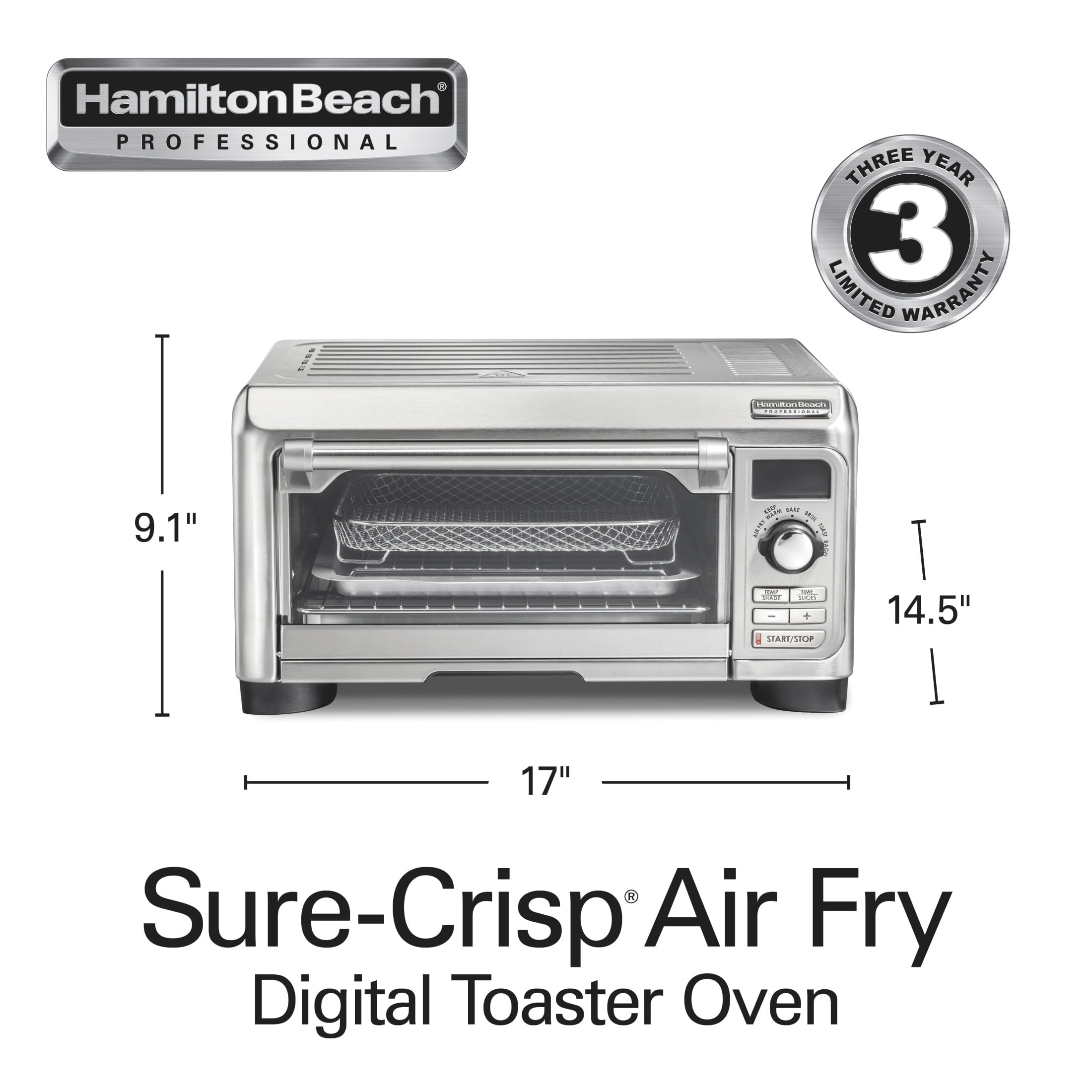 Hamilton Beach Professional Sure-Crisp Air Fryer Toaster Oven Combo with 6-in-1 Functionality, Stainless Steel