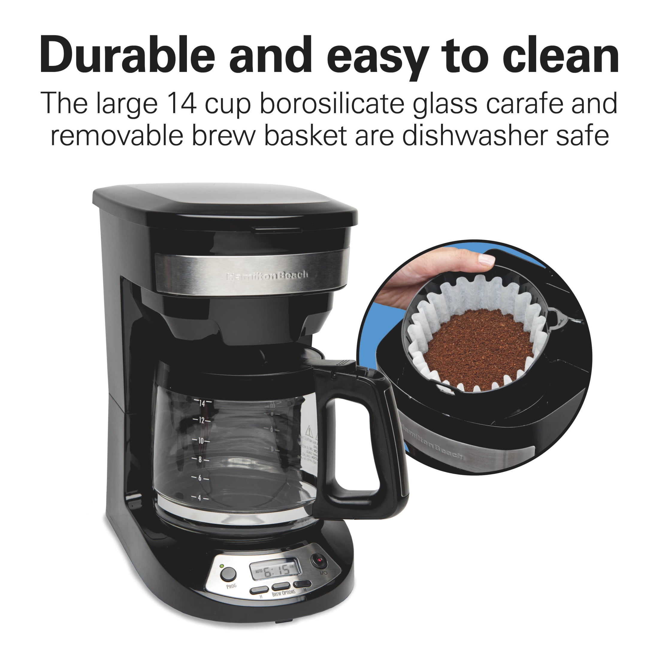 Hamilton Beach 14-Cup Programmable Drip Coffee Maker Machine with Glass Coffee Pot, Black