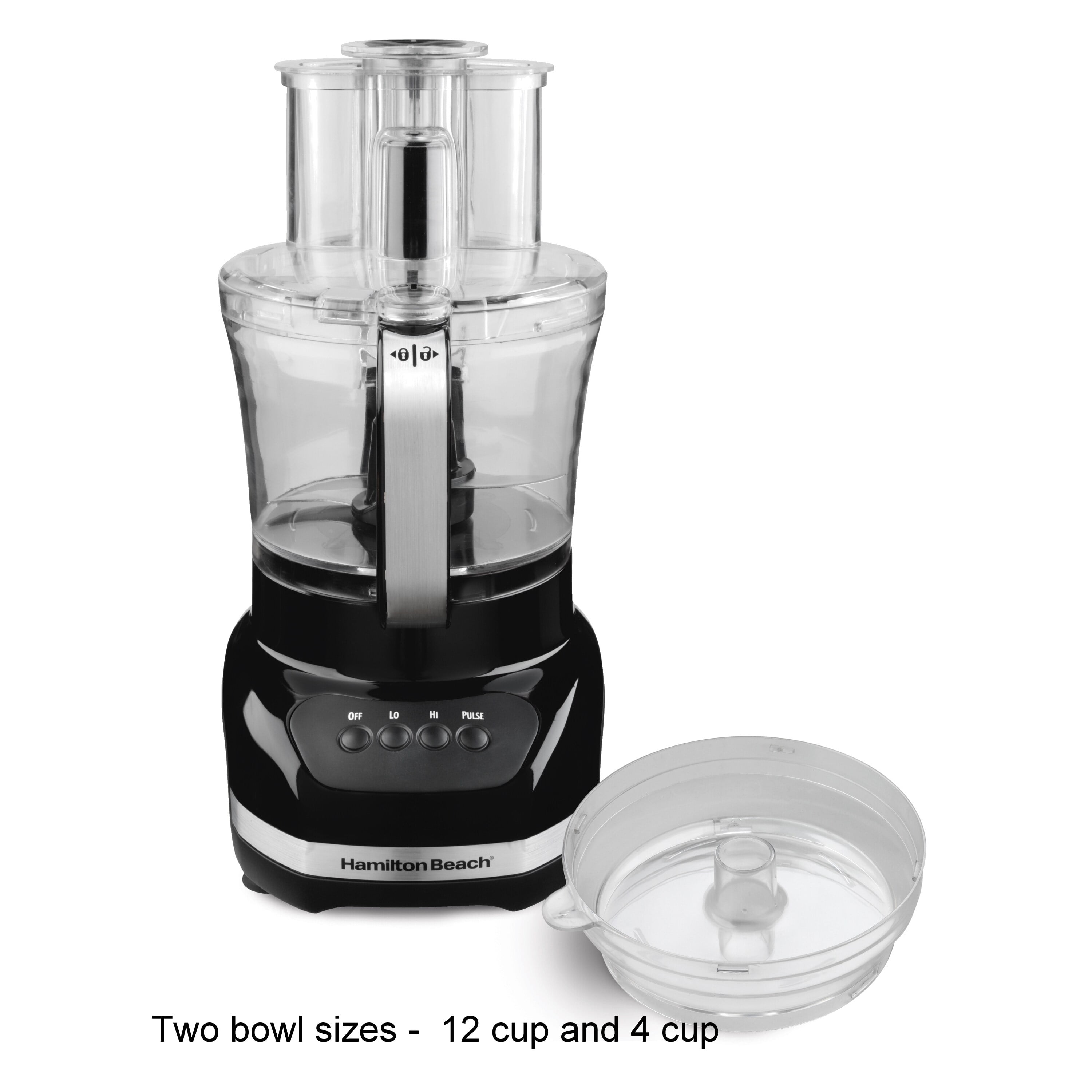 With an extra-large feed tube, in-bowl blade storage, a powerful motor with 3 speed plus pulse, and dishwasher-safe parts, the Hamilton Beach Big Mouth Duo Plus Food Processor is the ultimate kitchen appliance. Hamilton Beach Touch Pad Duo Food Processor: Includes 2 processing bowls 12 cup and a 4 cup bowl for smaller jobs Fits Whole Foods Big Mouth Feed Tube 12 and 4-Cup Bowls Slices, Shreds, Chops, Purees & Mixes Reversible Slice/Shredding Disc Chopping S-Blade Easy to Clean Touchpad Controls Dishwasher Safe Bowls, Lid and Blades 500 Watts