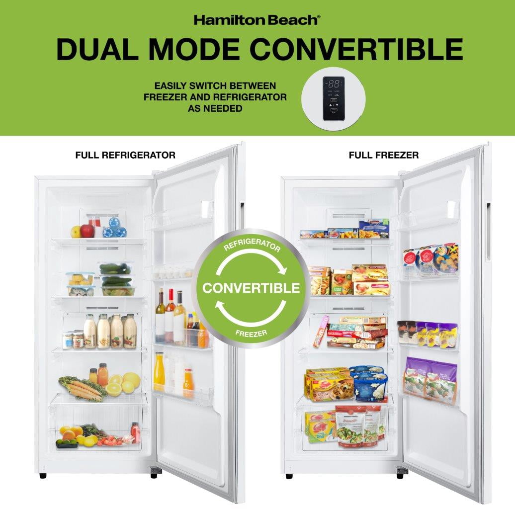 Are you tired of constantly running out of space for your family’s groceries? The Hamilton Beach 14 cu. ft. refrigerator and freezer combo is the solution you’ve been searching for! With its spacious capacity, you can easily store enough food for even the largest families. And thanks to its 2-in-1 design, you can switch between freezer and refrigerator modes with just a single click to match your storage needs. The electronic controls make it easy to adjust the temperature to your exact preferences, while the frost-free feature eliminates the need for manual defrosting. And with 4 removable tempered glass shelves and 4 in-door shelves, you can keep your food organized and easy to find. But that’s not all – the bottom slide-out transparent drawer/bin provides even more storage convenience, while the 2 roller and 2 adjustable front leveling legs ensure that your fridge is level even if your floor isn’t. And with its recessed handle and sleek, modern design, this fridge will complement any kitchen decor. Plus, its free-standing design lets you position it wherever you want, while the LED interior light makes it easy to view your frozen goods. Best of all, this fridge is Energy Star certified for energy efficiency, which means you’ll save money on your electricity bill while enjoying all the benefits of this top-of-the-line fridge and freezer combo. Upgrade your kitchen and make grocery shopping a breeze with the Hamilton Beach 17 cu. ft. refrigerator and freezer!