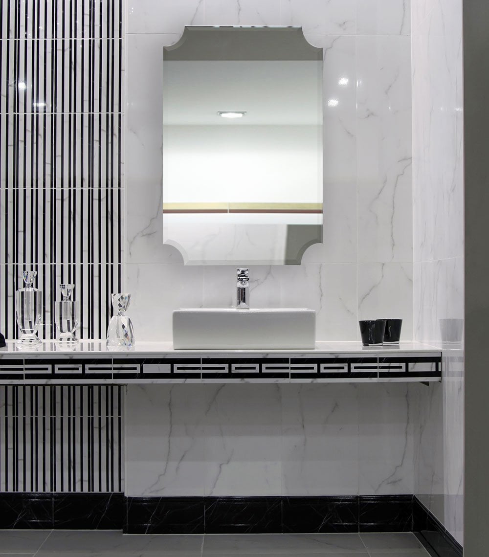 Hamilton Hills Beveled Scalloped Edge Rectangular Wall Mirror 1 Inch Bevel