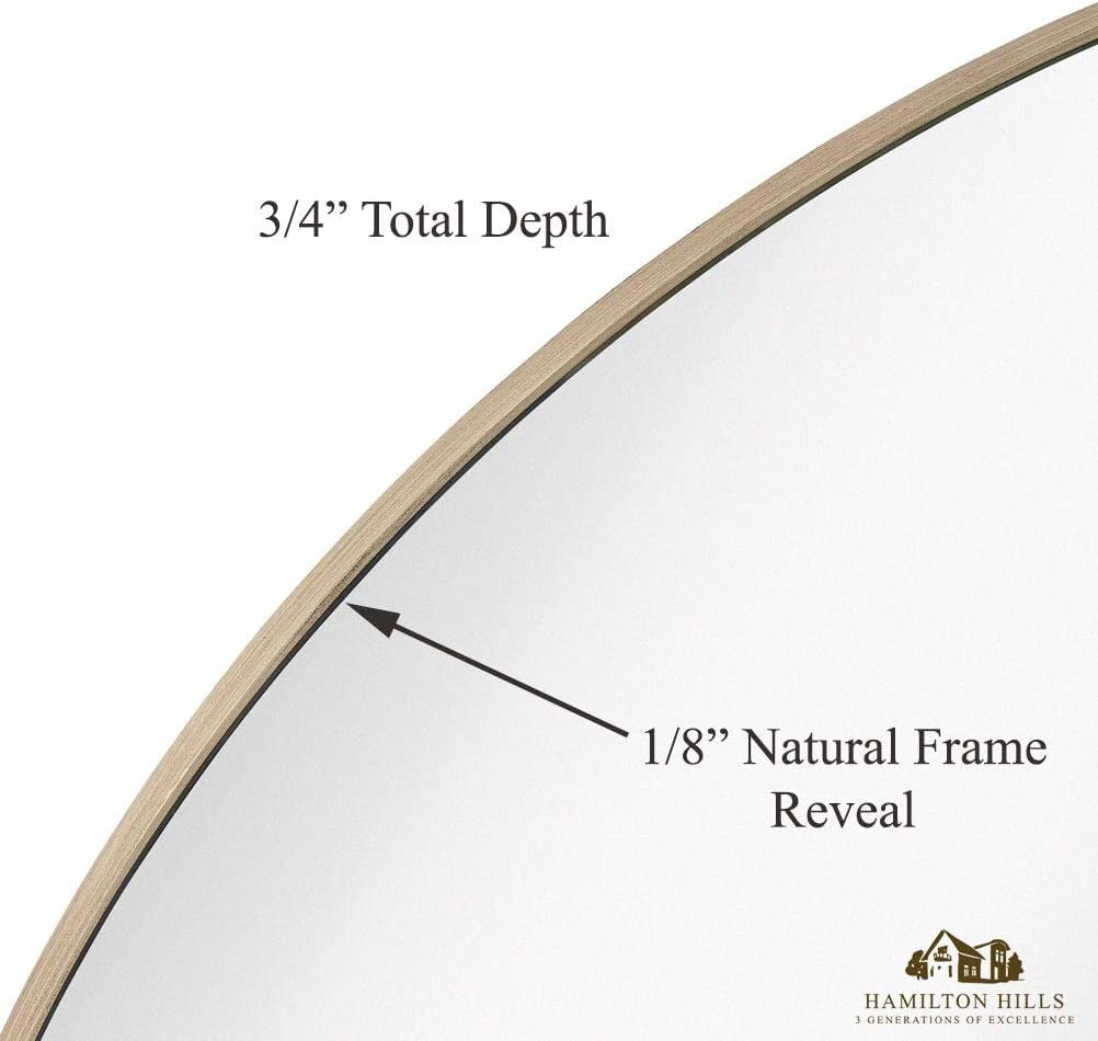 SOPHISTICATED DESIGN: Bring simple sophistication to any room with our slim simplistic 24″ circle glass natural framed mirror. Our premium silver-backed mirror plate is surrounded by a simple 1/8″ understated light natural wood rim perfect for various styles and designs. The total depth of 3/4″ with hanging hardware. SAFE AND EASY TO INSTALL: Our glass is safely set back 1/8″ from the surrounding natural wood-colored backplate. Edges are smoothed and polished to avoid injuries. The mirror comes with reinforced D-ring hanging clips as well as wall hardware to hang it easily in any bathroom, powder room, waiting room, or entranceway. 3 GENERATIONS OF EXCELLENCE: Our family has been manufacturing and producing mirrors for over 3 generations. We stand by the quality of our product and your experience. A family-owned business with simple principles. Affordable quality from an American company. EXCEPTIONAL QUALITY: We use premium materials not found in other lesser-quality imitation mirrors you will see. Our mirrors are made to strict trade-secret standards and pass a rigorous 8-point inspection. Every mirror comes with our certification of authenticity. This mirror will be the perfect fit for any room with its elegant and simple design. The contemporary style of this mirror will bring a touch of class to your home. The frame is made out of wood and glass so it is very durable and long-lasting. It features a guileless timber frame with an elegant walnut finish that gives it a stylish look.