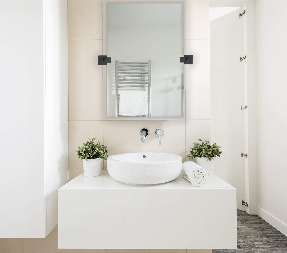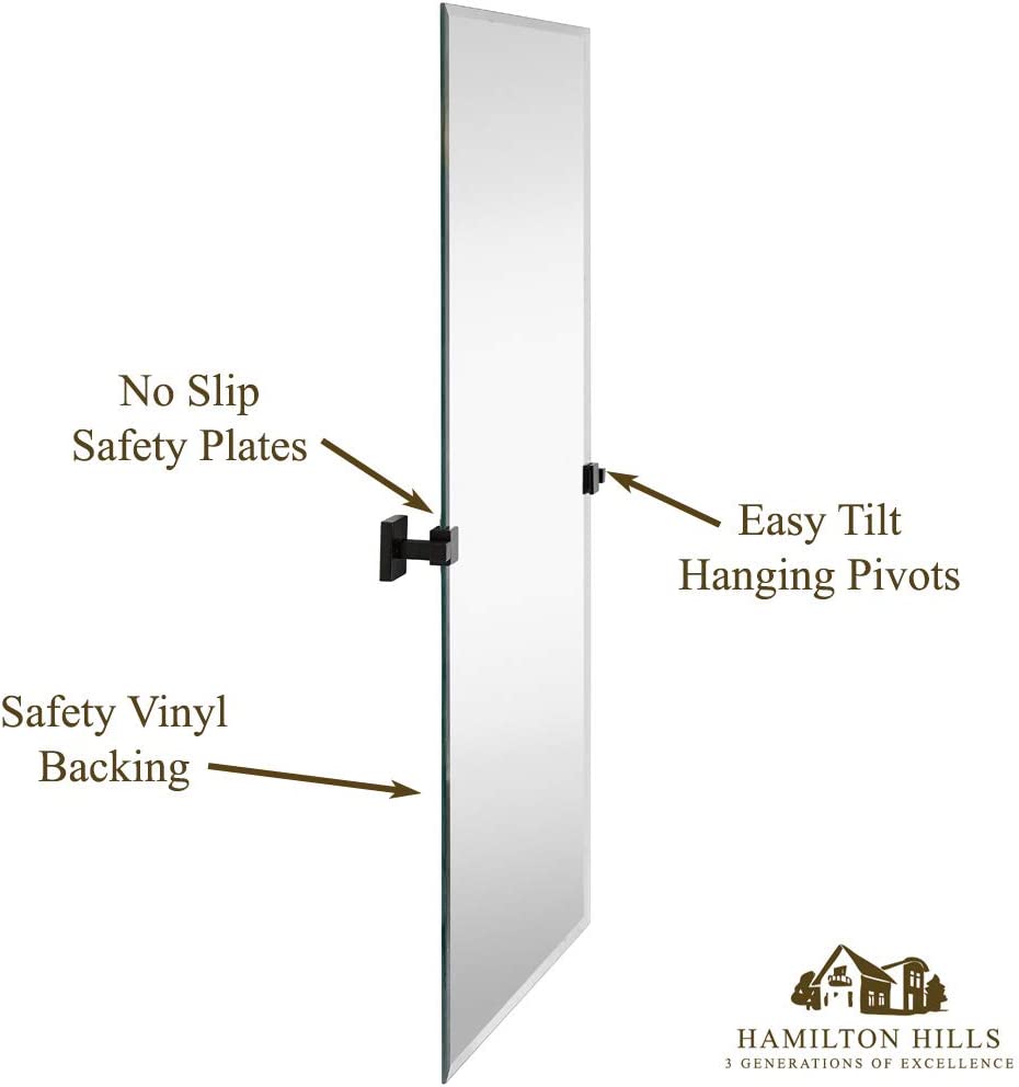SOPHISTICATED DESIGN: One of our Best Sellers, this simple 20 inch by 30 inch elegant beveled rectangle is now available with our squared modern pivot adjustable wall brackets. A sleek, modern, clean, beveled edge. A floating, frameless design with our safety vinyl backing suspended by our adjustable rotating brushed glass clamps. Avoid slipping and loosening found in cheaper brands. SAFE AND EASY TO INSTALL: Our authentic silver backed glass comes with safety polished edges for protection and a finished appearance. Glass is backed with our security vinyl to add stability and protect in the event of breaks. All mirrors come with our metal brackets and the slide tracks on the mirror as wall hardware and screws to hang both horizontally or vertically. 3 GENERATIONS OF EXCELLENCE: Our family has been manufacturing and producing mirrors for over 3 generations. We stand by the quality of our product and your experience. A family owned business with simple principles. Affordable quality in America. EXCEPTIONAL QUALITY: We use premium materials not found in other lesser quality imitation mirrors you will see. Our mirrors are made to strict trade-secret standards and pass a rigorous 8 point inspection. Every mirror comes with our certification of authenticity.