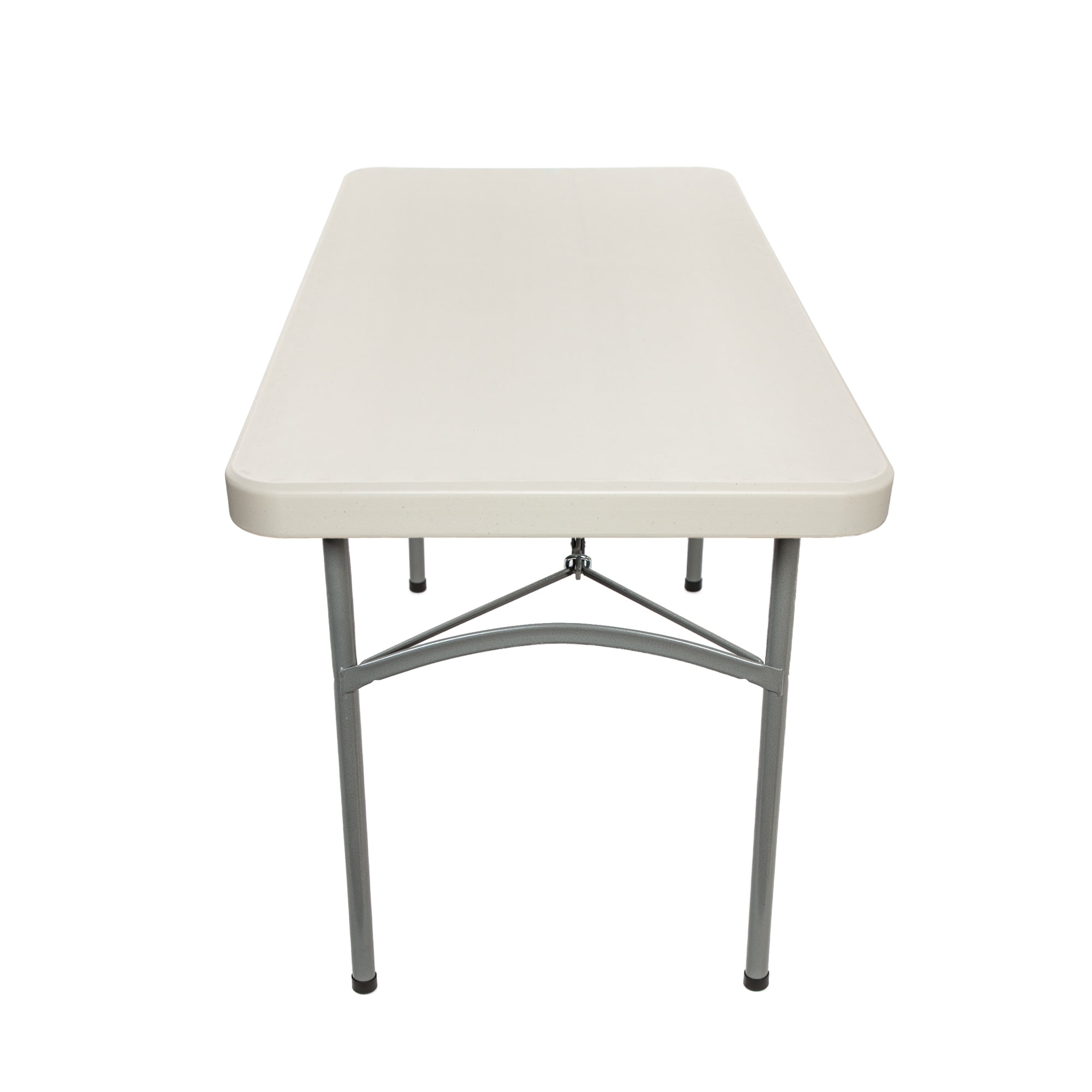 Sturdily constructed with 17 gauge steel, 1.75 inch thick blow molded plastic with a 400 lb weight capacity Unique non-bowing eggshell structured frame ensures maximum functionality for a table of its size Scratch-resistant top