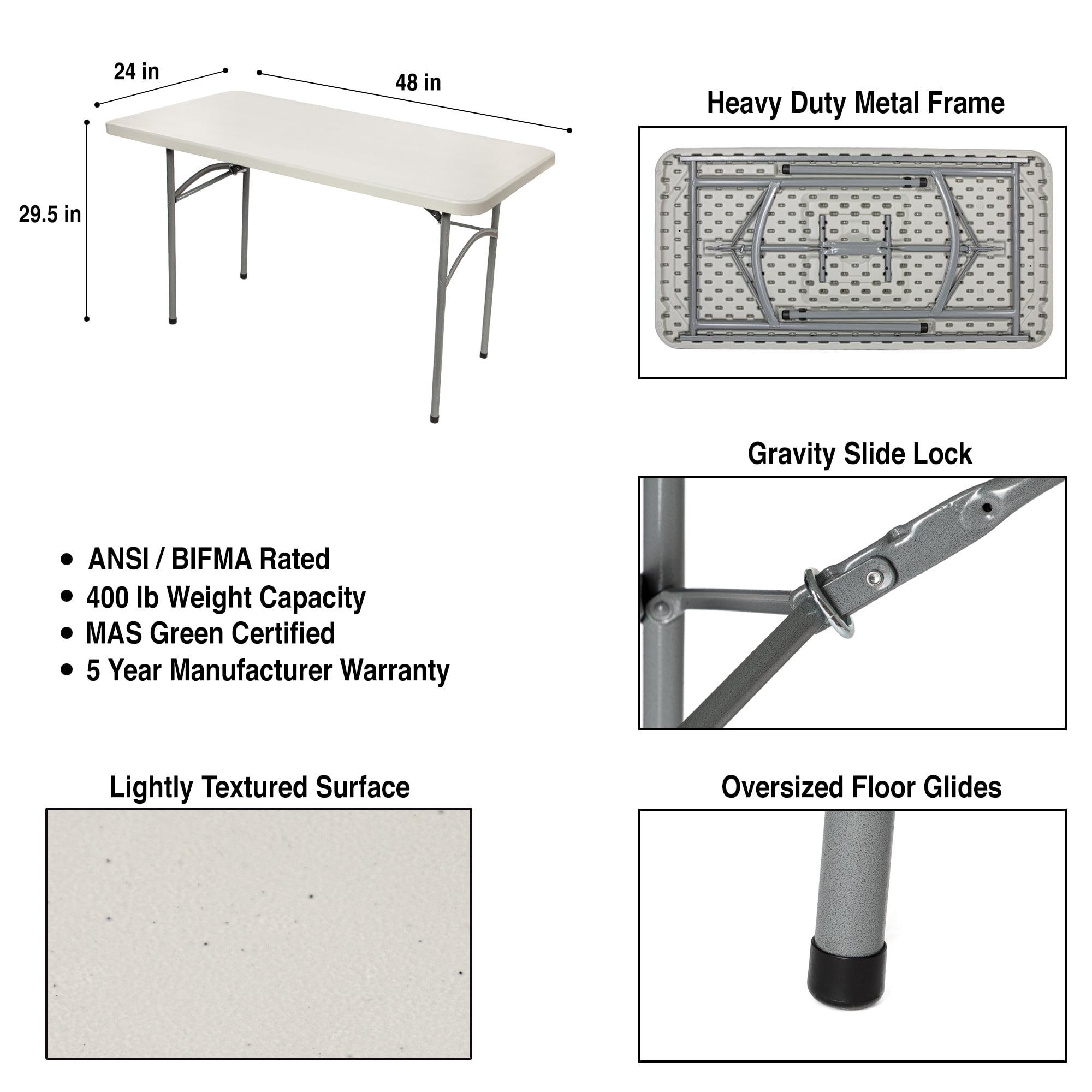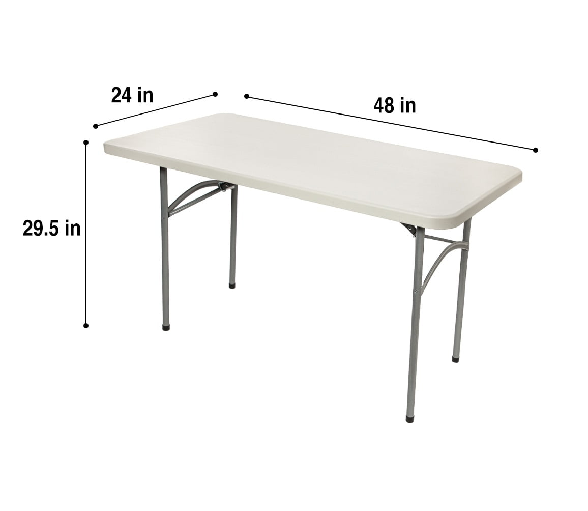 The Baldwin 24” x 48” Folding Table is the perfect combination of durability and versatility! Whether you’re using it indoor or outdoor, this table can handle just about any application. Use it in your home for everything from family dinners to game nights Bring it to your small business or coworking space for a convenient and comfortable workspace Set it up at your next outdoor event for a sturdy and weather-resistant surface Some other great features of the Baldwin 24 x 48 Folding Table include: A scratch-resistant, heat-resistant tabletop that can hold up to 400 lbs A sturdy and stable steel frame with a textured powder-coated finish A rectangular shape that provides plenty of space for all your needs A lightly textured surface that’s smooth enough for writing A 1 year warranty for peace of mind Don’t wait any longer, add the Baldwin 24 x 48 Folding Table to your space today and start enjoying all the benefits it has to offer!