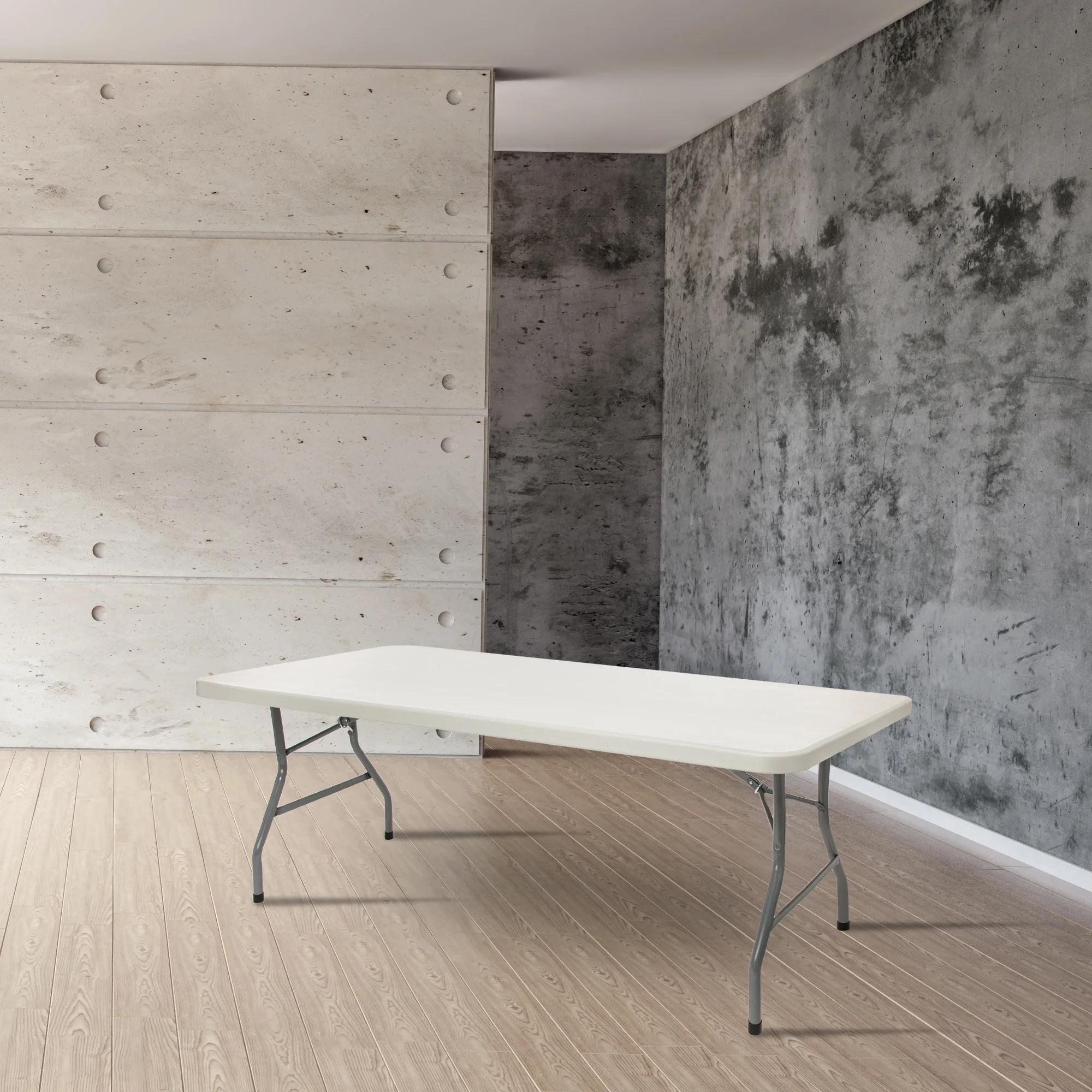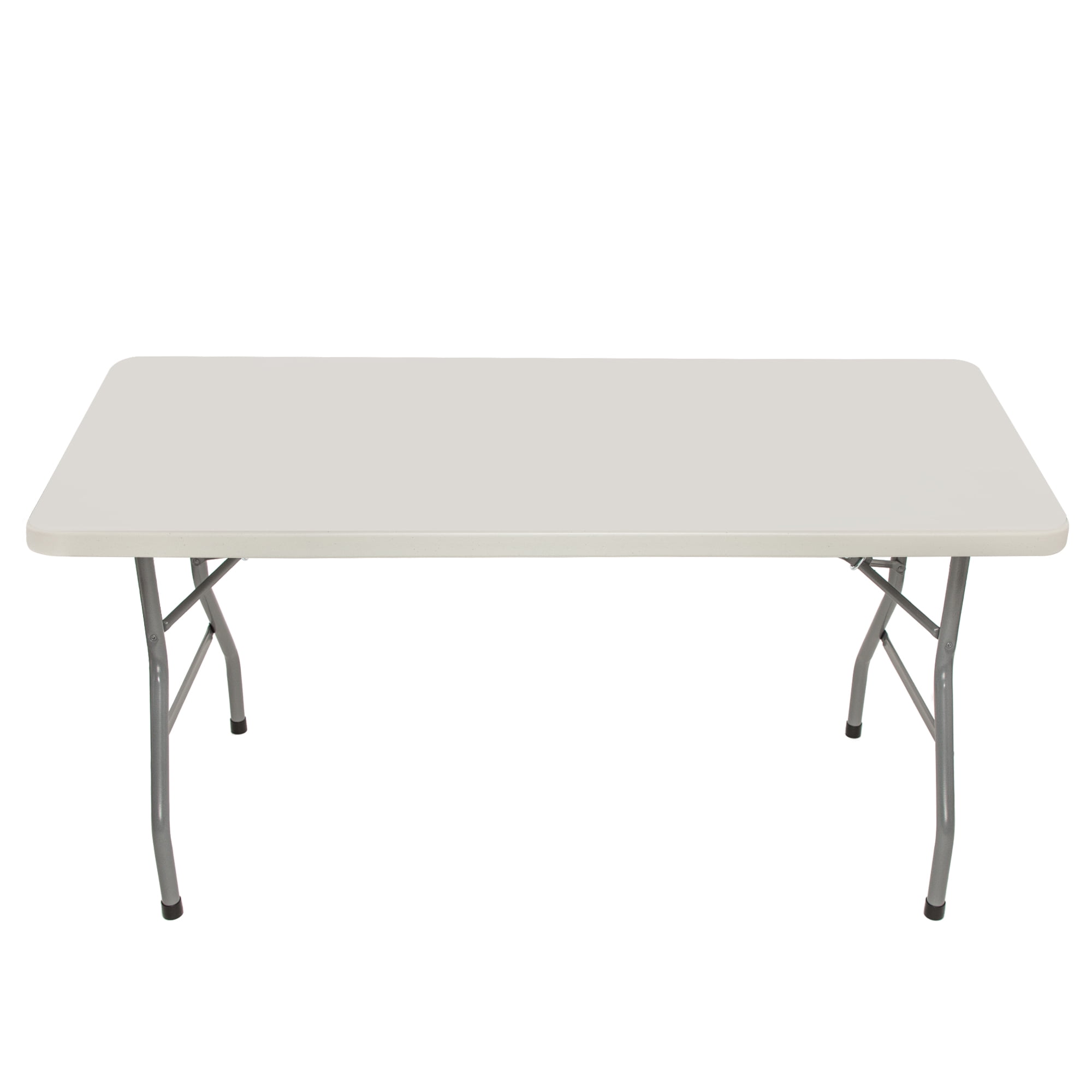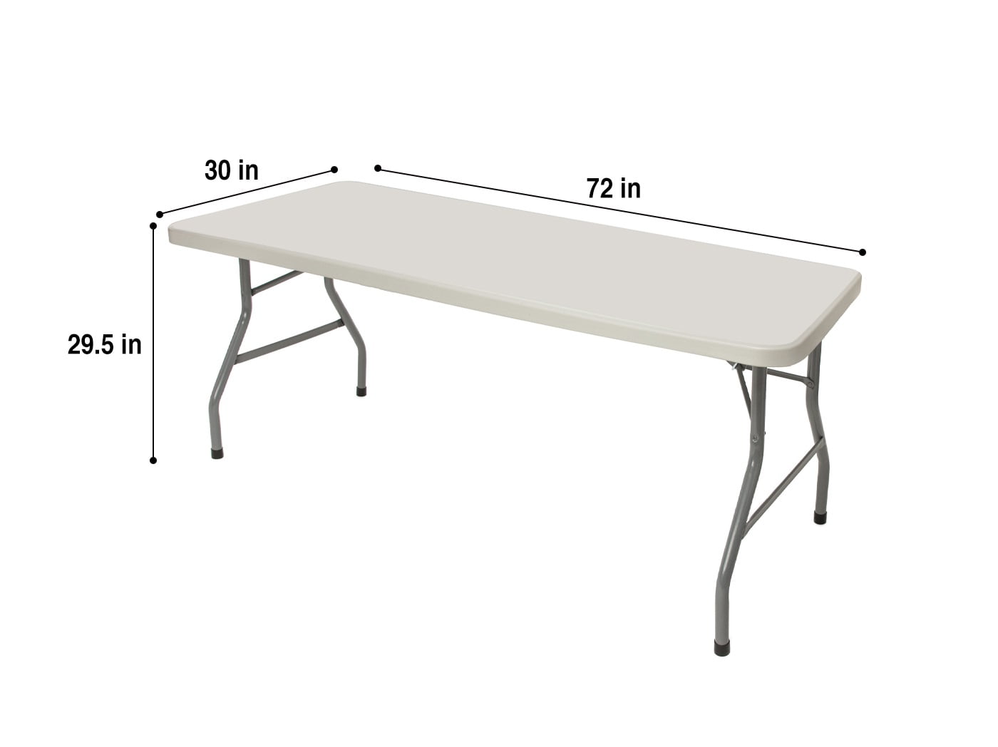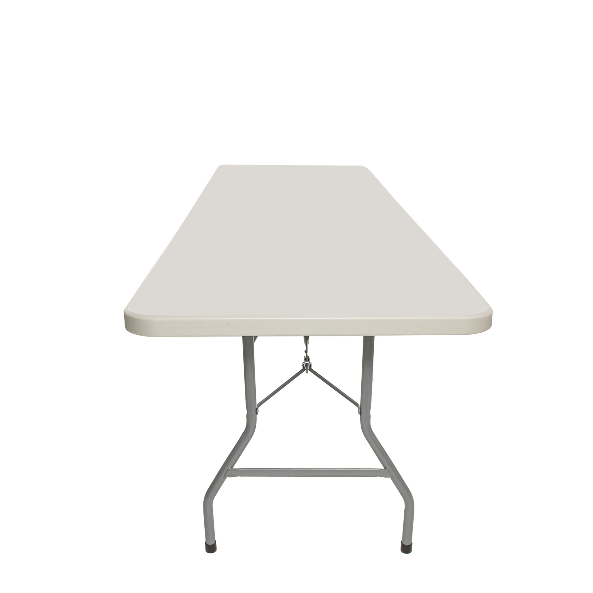 Sturdily constructed with 17 gauge steel, 1.75 inch thick blow molded plastic with a 1000 lb weight capacity Lightweight, wishbone-style legs and gravity slide locks to maintain overall strength and support Scratch-resistant top