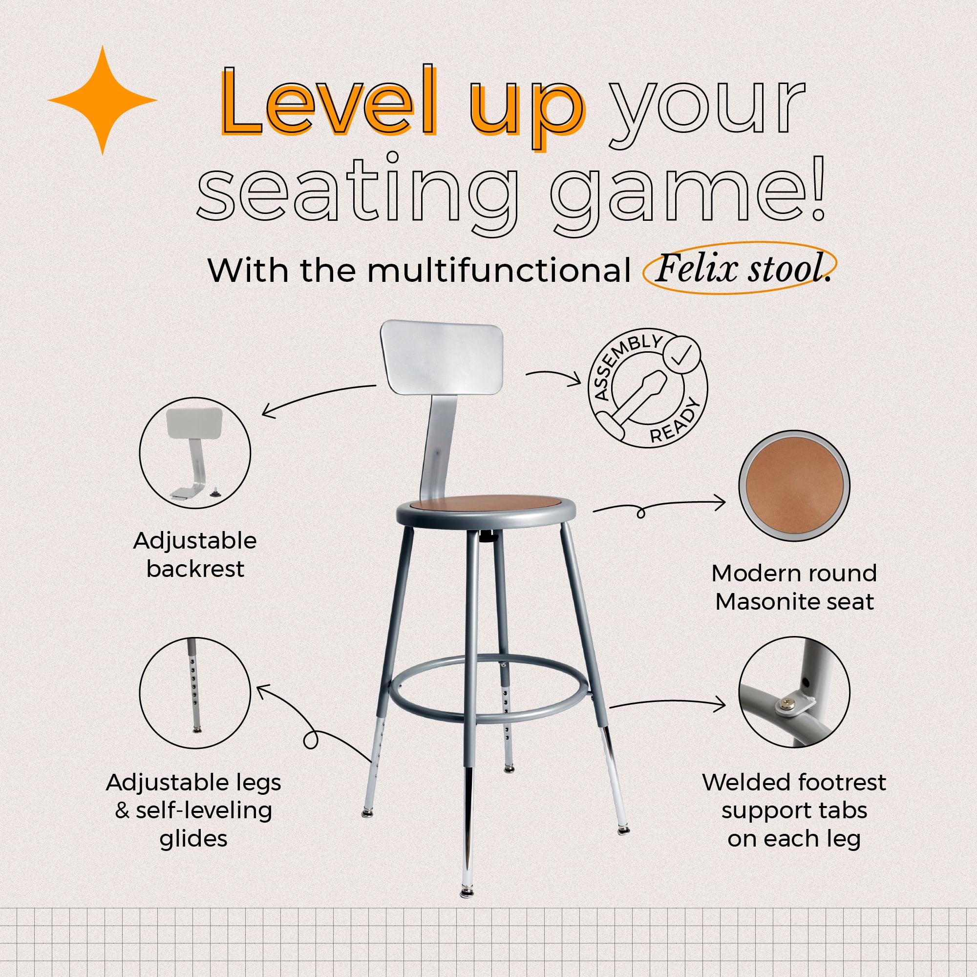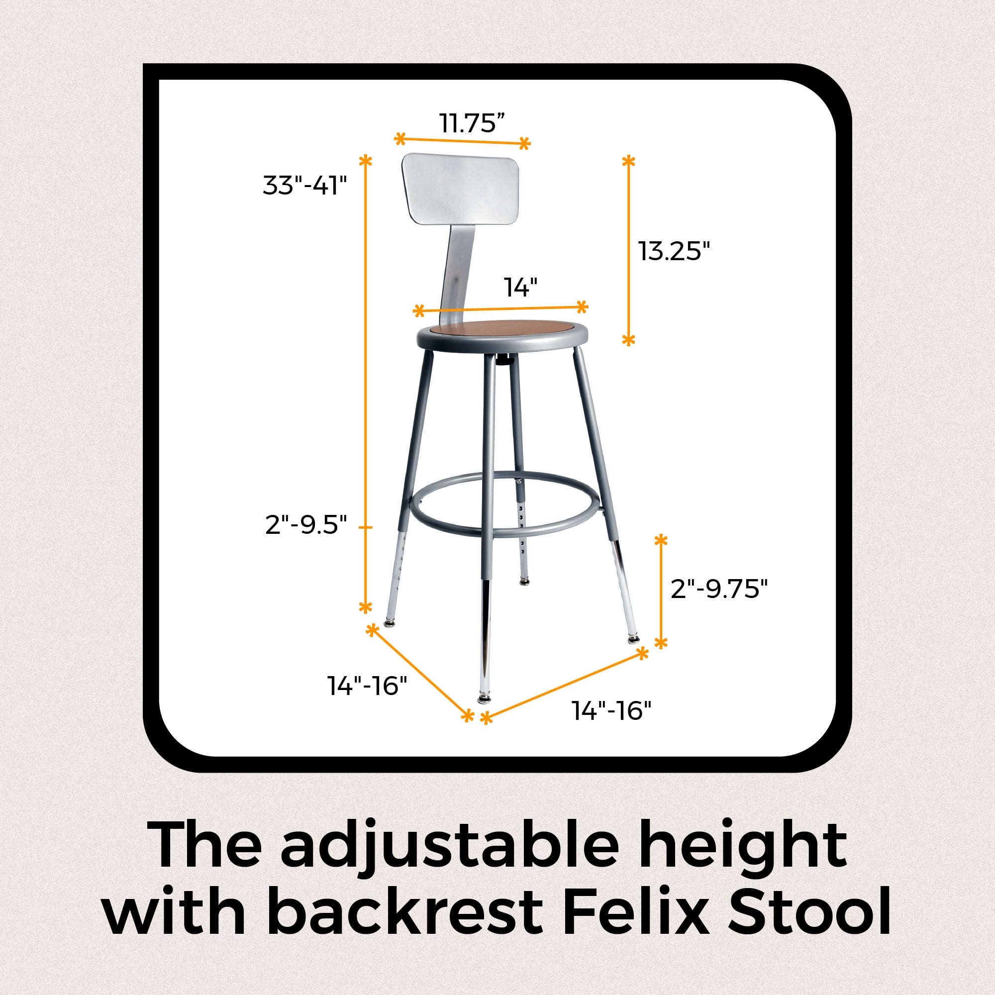 Hampden Furnishings Felix Collection Height Adjustable 19-27 Inch Steel Stool with Backrest, Grey, AssemblyReady