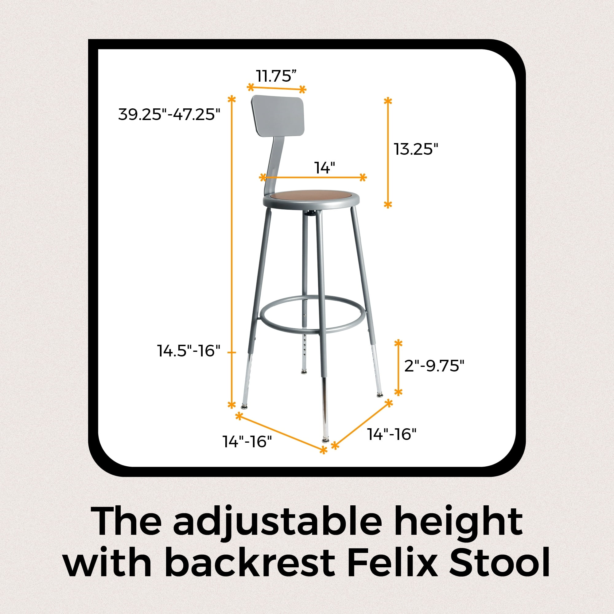 Hampden Furnishings Felix Collection Height Adjustable 25-33 Inch Steel Stool with Backrest, Grey, AssemblyReady