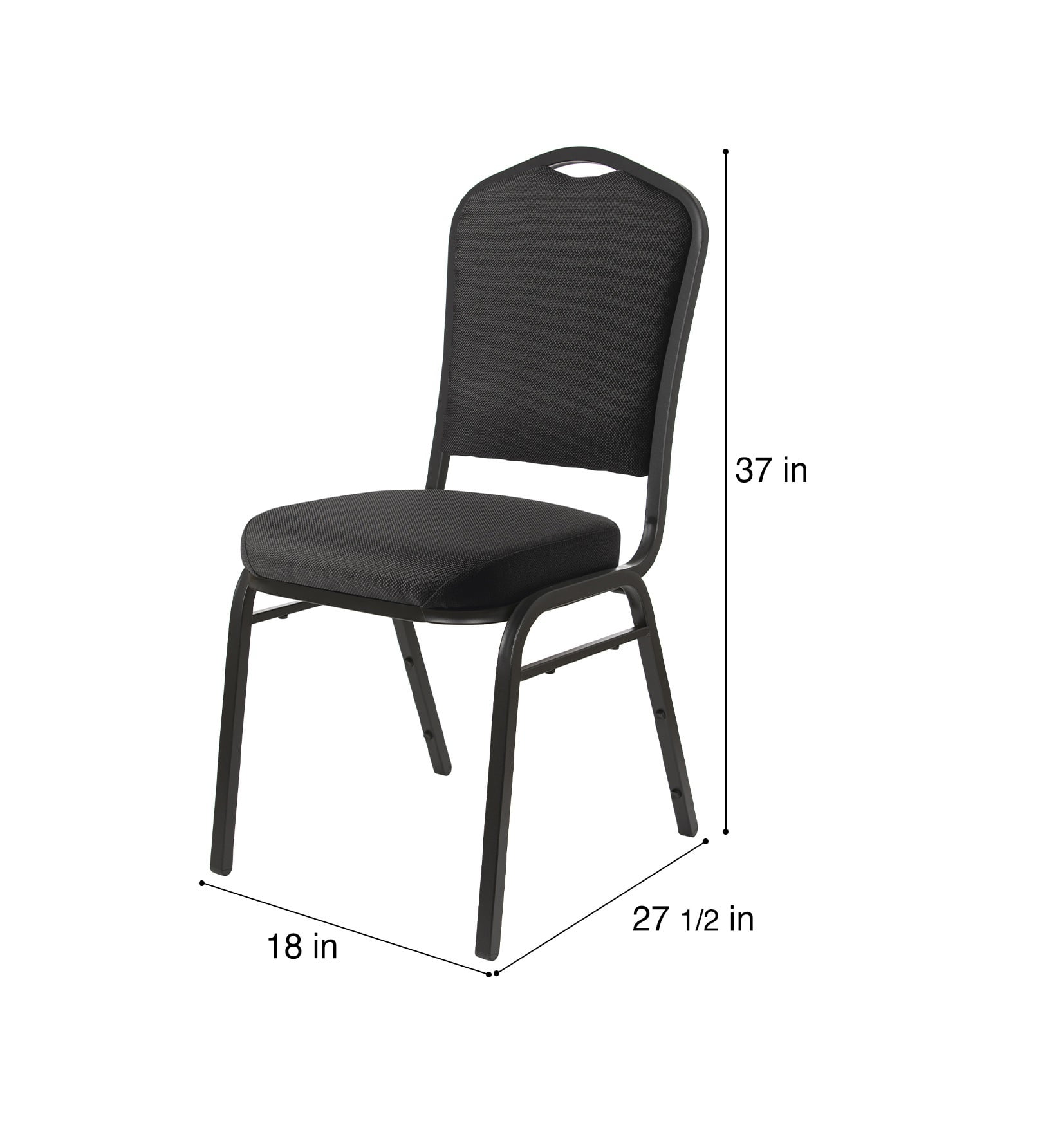Comfortable and durable fabric upholstery Strong steel frame and H-shaped brace for support Convenient built-in handle, MDF core and stacking bars for safe stacking