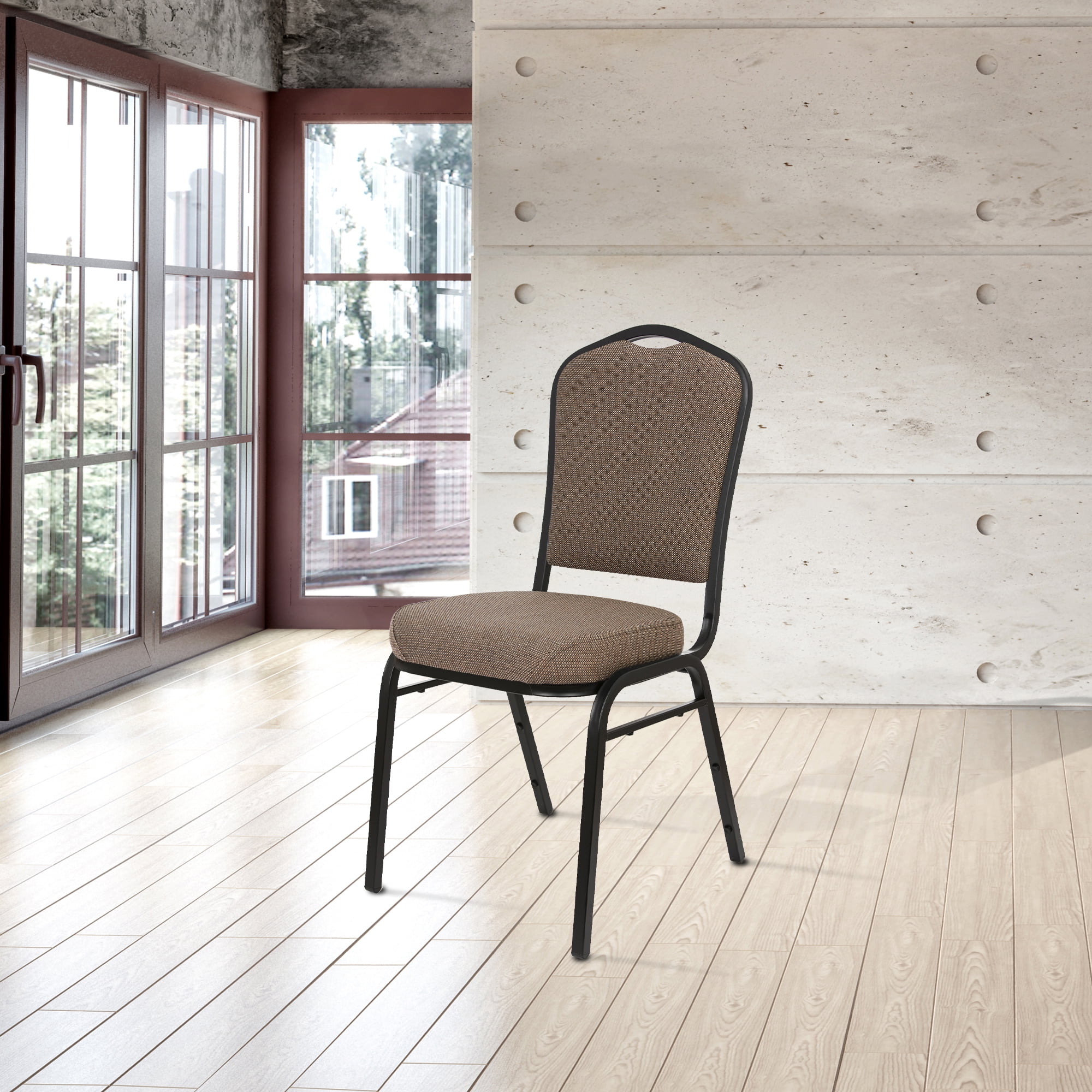 The Lila Fabric Stack Chair is the perfect blend of style and functionality for any home or office space! This chair is built to last, with its sturdy steel frame and H-shaped brace providing extra support. The comfortable, high-density foam padding and soft, institutional grade fabric upholstery make it a joy to sit in, while the waterfall-style edge and MDF core in both the seat and crown-style backrest add durability. The Lila Fabric Stack Chair is also designed with convenience in mind. The built-in handle in the backrest makes it easy to move and stack, and the fortifying stacking bars and plastic bumpers protect the powder-coated paint finish from scratches when the chair is stacked. The chair also comes with rocker glides for added stability and a one year warranty for peace of mind. In summary: Comfortable and durable fabric upholstery Strong steel frame and H-shaped brace for support MDF core and stacking bars for safe stacking Convenient built-in handle and one year warranty Perfect for any home or office space
