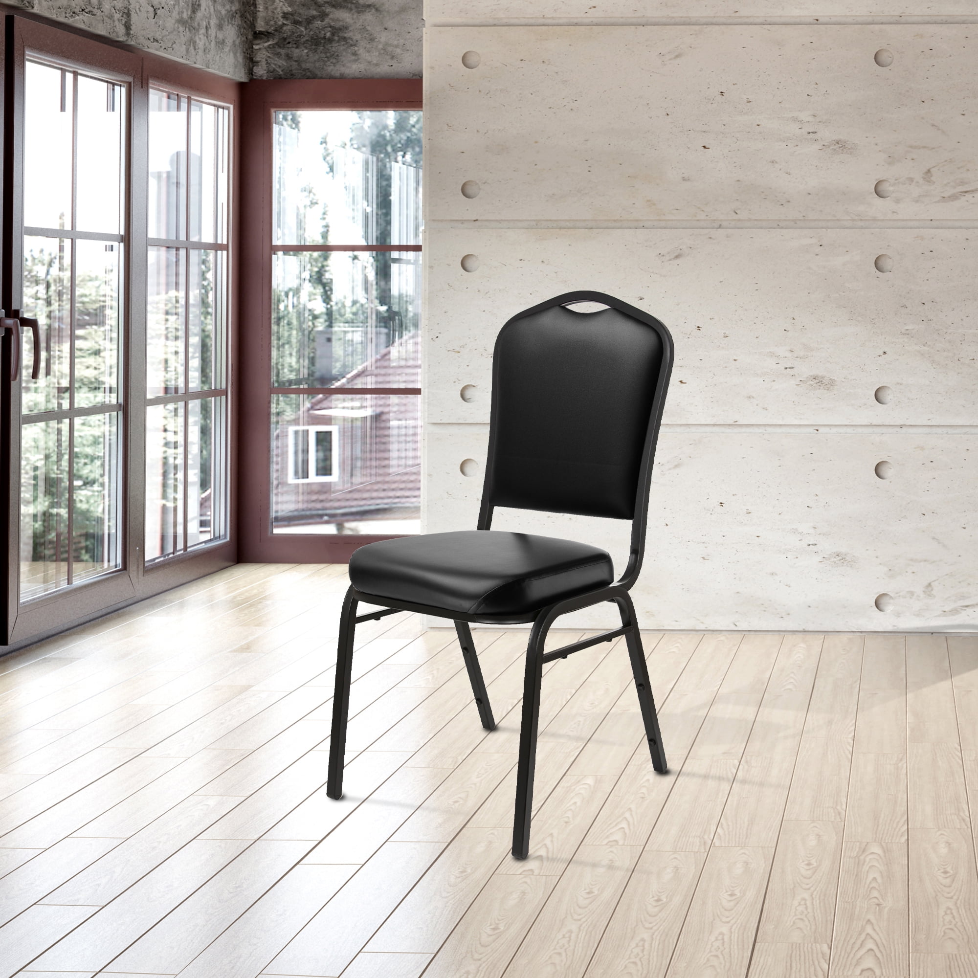 Hampden Furnishings Lila Collection Vinyl Banquet Chair, Black, Pack of 2