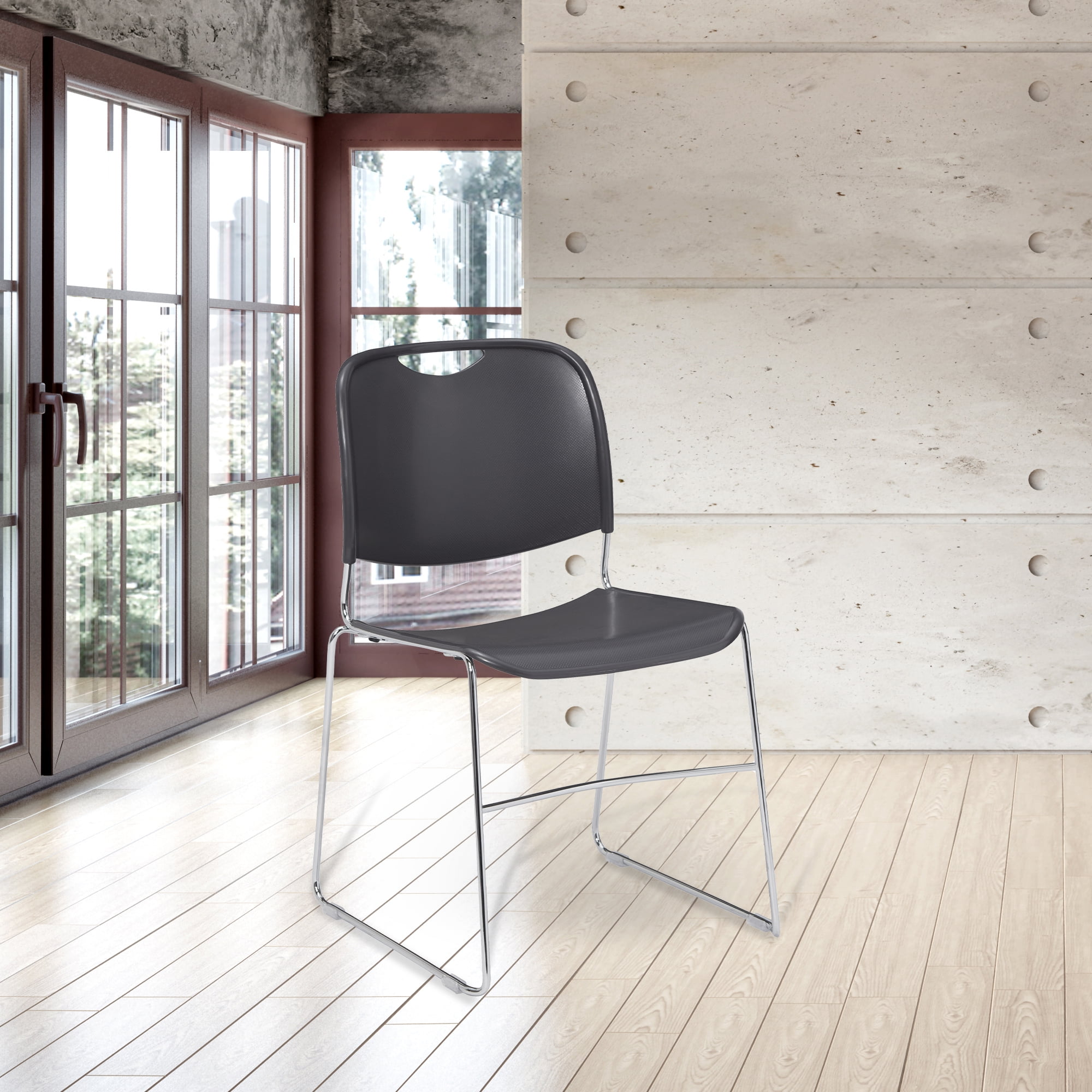 The Naomi Premium Stack Chair the perfect addition to any home or office space. This chair is designed with comfort in mind, featuring a contoured, flexible backrest and a waterfall-style seat. The plastic seat is easy to clean and won’t fade or scratch, making it a durable and long-lasting choice. The chair’s 11mm solid steel-rod frame is chrome-plated for a sleek look, and features under-seat ribbing for reinforced support. The chair is lightweight and easy to move, with a built-in backrest handle for portability. And when it’s time to put the chairs away, the Naomi Premium Stack Chair can be stacked up to 40 units high for quick clean-up and efficient storage.
