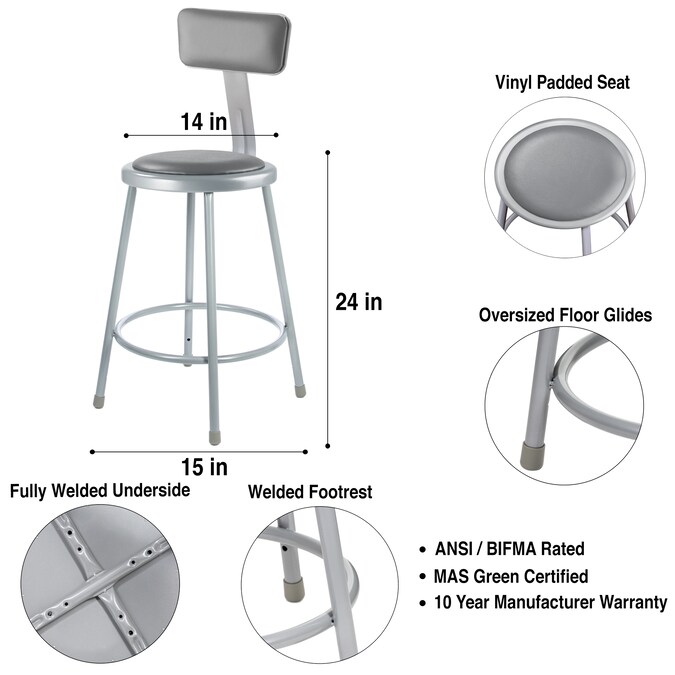 - Comfort: This Otto 24 inch padded stool has a footrest ring that provides added stability and comfort as you sit, as well as a sturdy, easily installed backrest, and with a weight capacity of 300lbs, you can feel secure and supported no matter how long you sit.