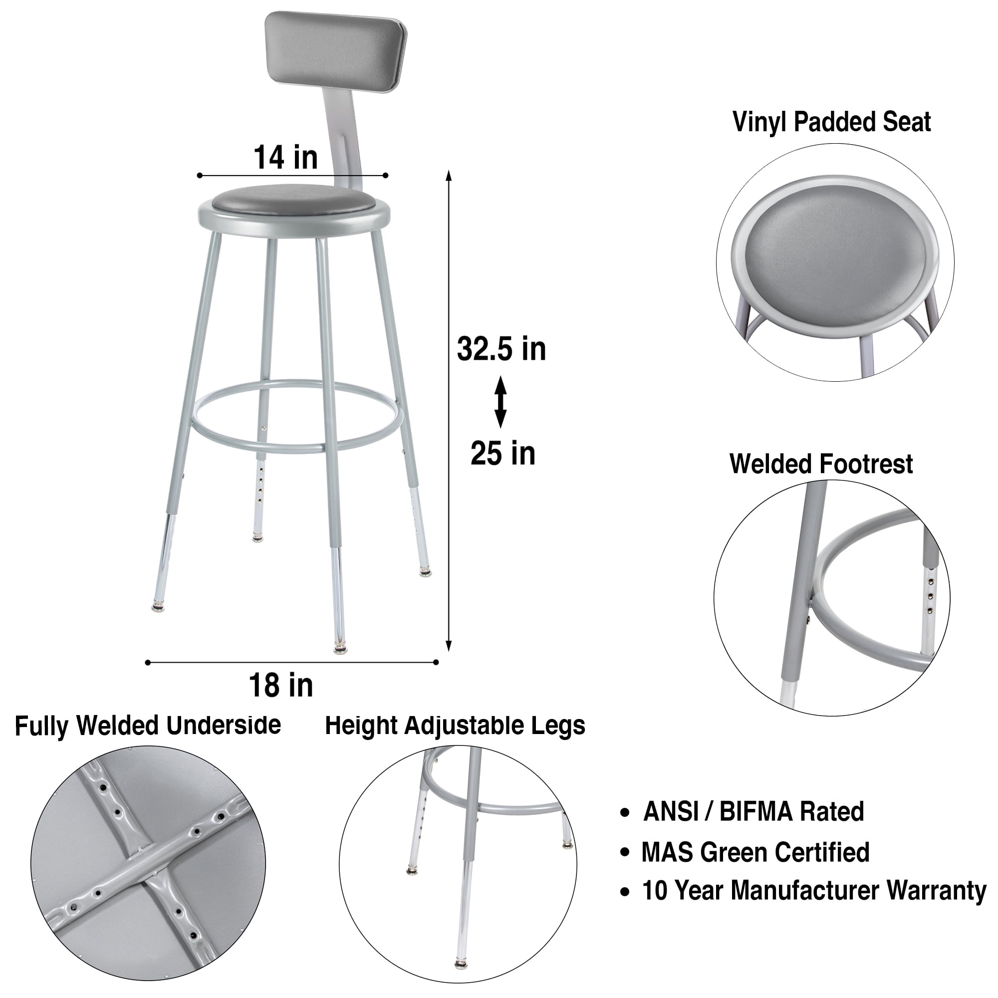 Versatility: The Otto 24 Inch Stool is perfect for any room in your home or office; use it as a seat at your office, study, or even as extra seating for guests, and great for kids to use at the table, counter, art/homework desk, making use of the adjustable legs which extend the stool up to 31 inches tall Durability: Made from sturdy 18-gauge steel and strong thick vinyl, the Otto 24 Inch Stool can withstand the wear and tear of everyday use Comfort: The Otto 24 Inch Stool has a comfortably padded seat and a footrest ring that provides added stability and comfort as you sit and a removable backrest