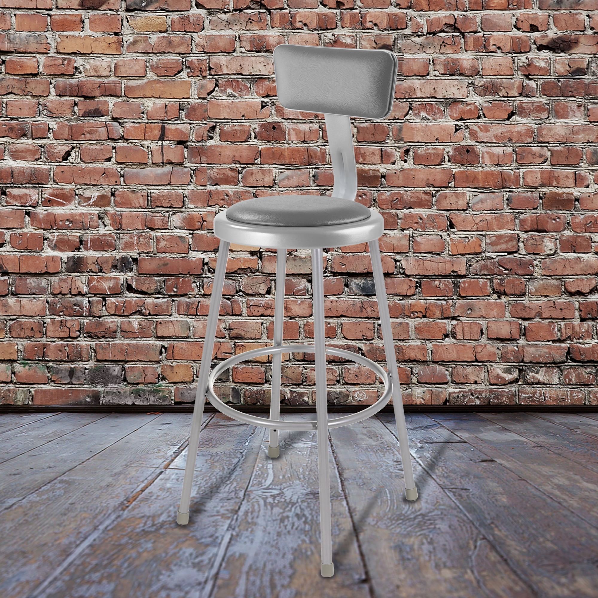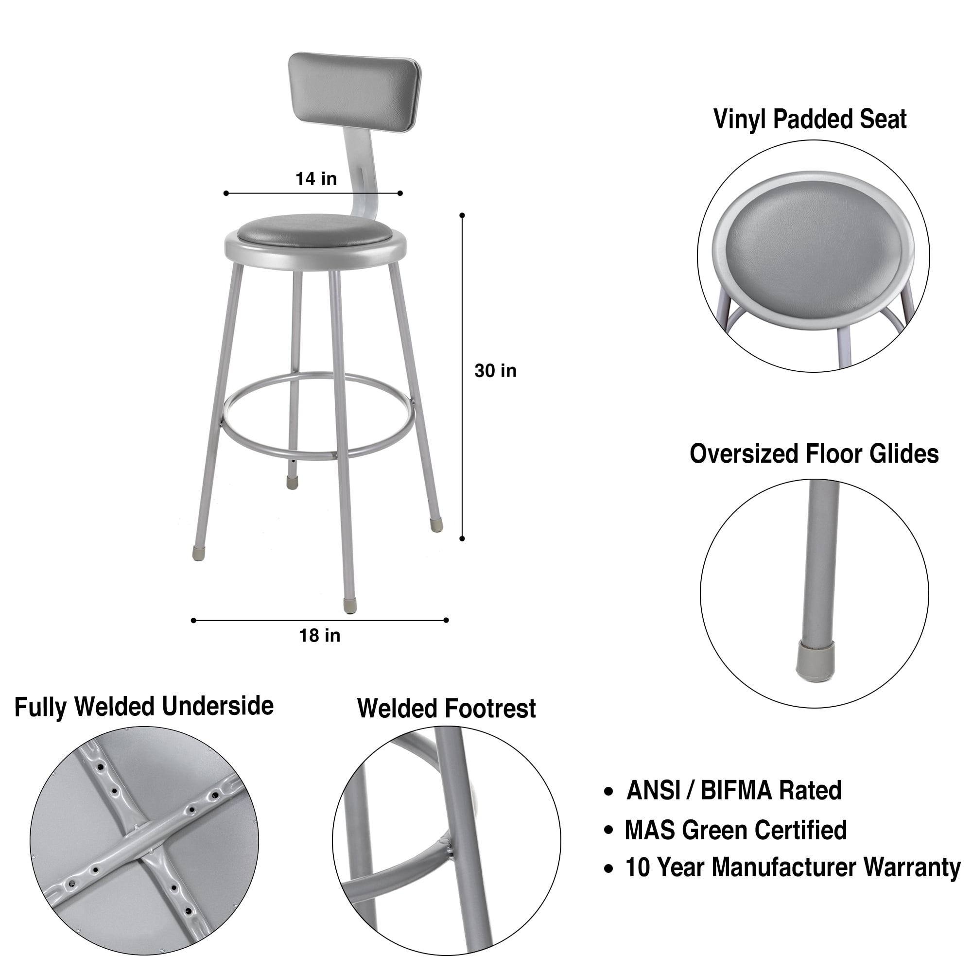 Hampden Furnishings Otto Collection 30″ Vinyl Padded Stool With Backrest, Grey, Pack of 2